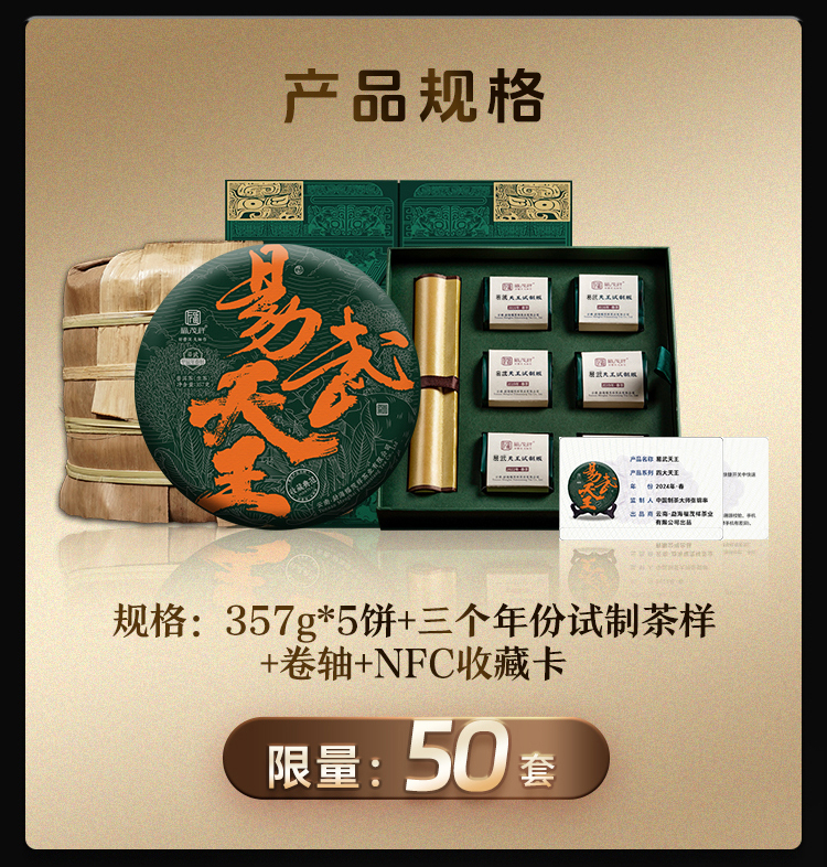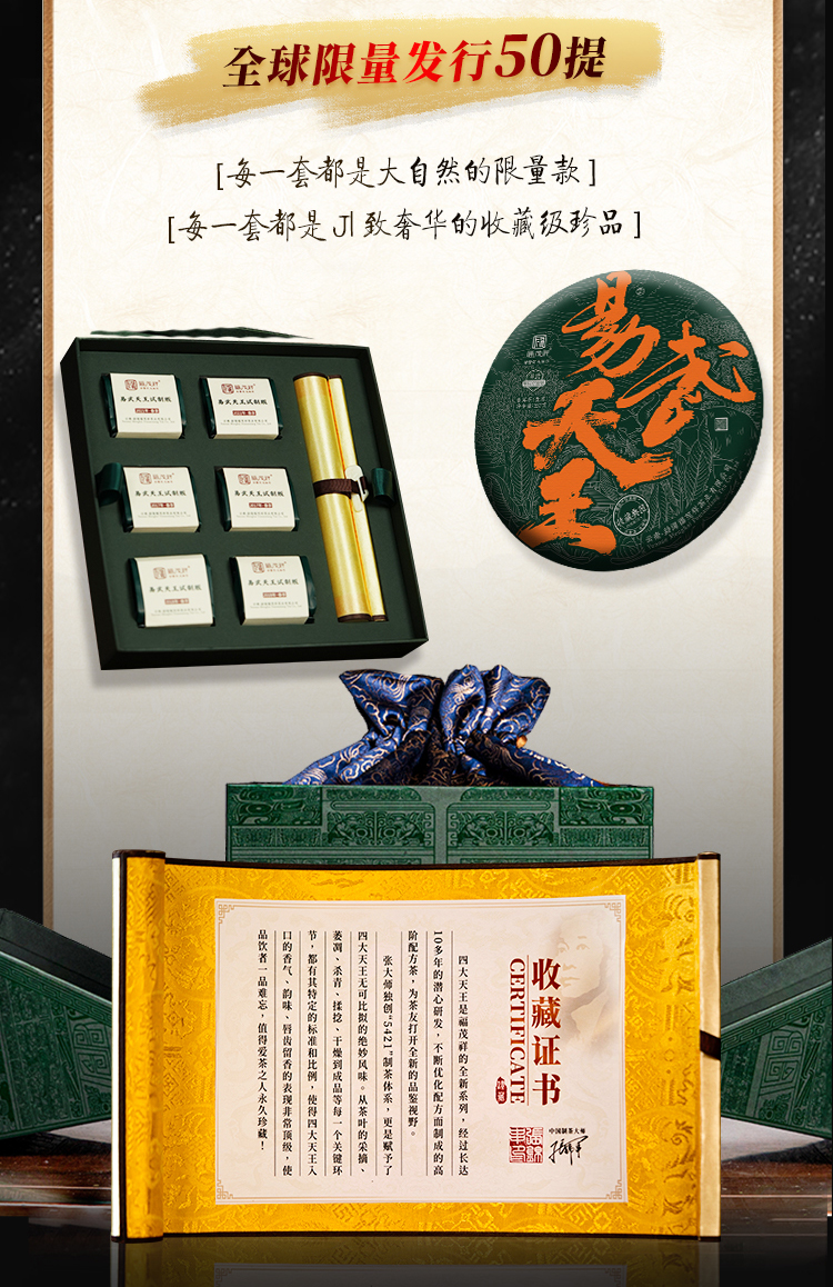 【四大天王】【易武天王】【2024年易武斗茶大会金奖】品牌高端系列 张大师独创5421制茶体系 2024年春茶易武茶区普洱茶生茶古树拼配茶饼357g*5饼 礼盒装