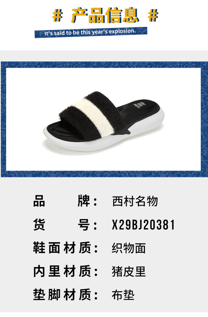西村名物运动风条纹拖鞋厚底X29BJ20381