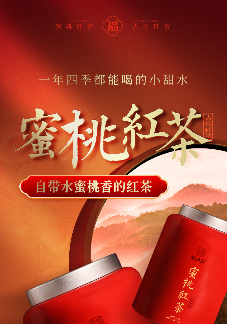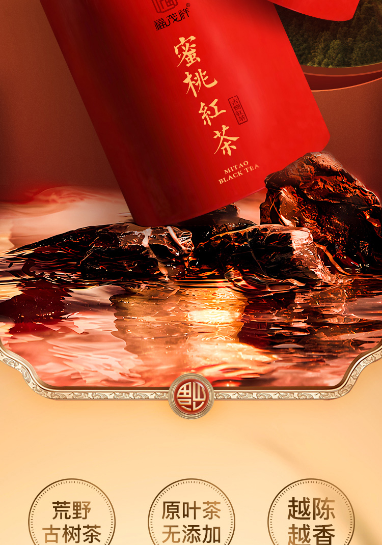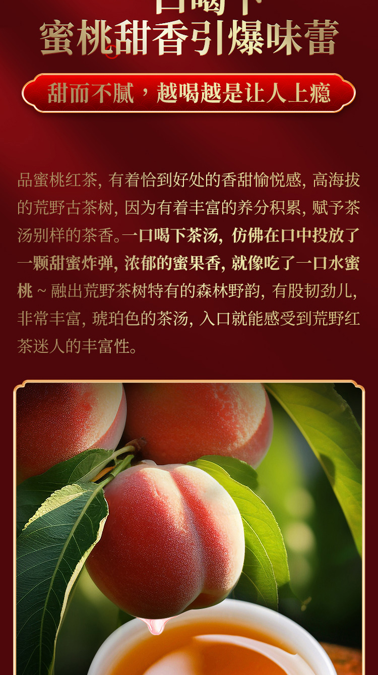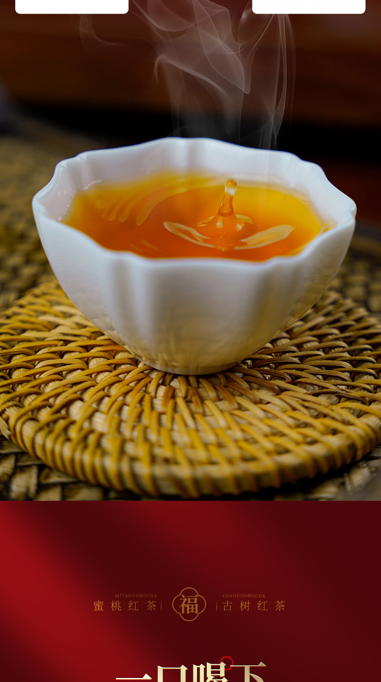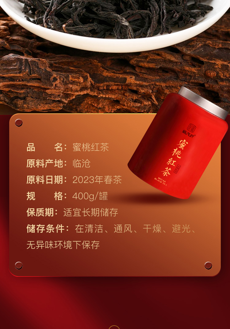 积分兑换【蜜桃红茶】喝得到的自然蜜桃香甜, 2023年云南临沧荒野古树发酵晒红茶 红色罐装400g带手提袋