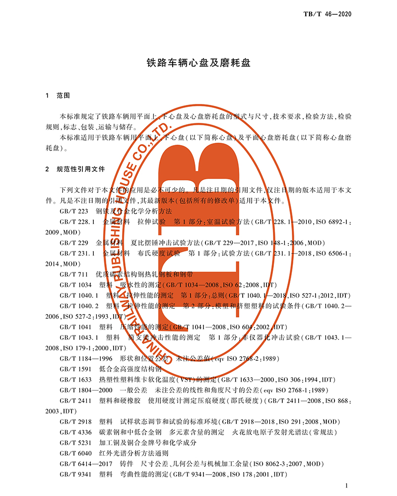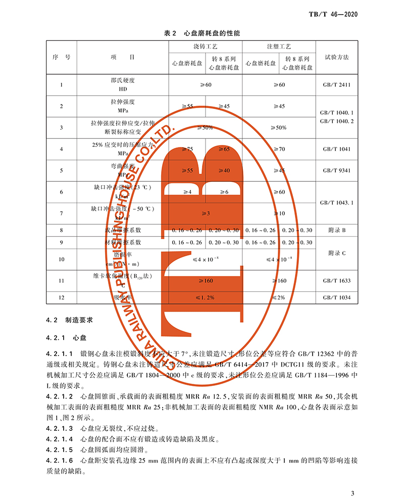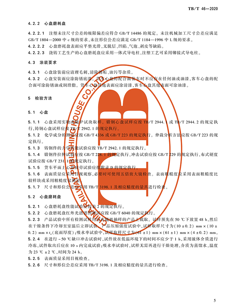 15113.6062 铁路车辆心盘及磨耗盘 TB/T 46-2020
