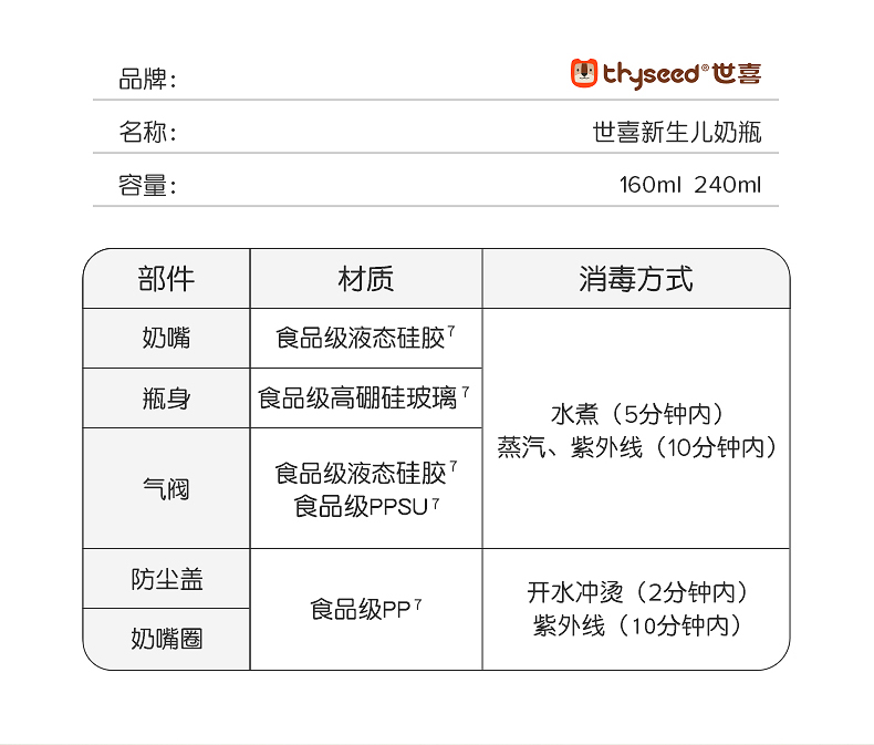 世喜玻璃奶瓶婴儿新生儿防胀气奶瓶0到-3-6个月新生宝宝防呛专用
