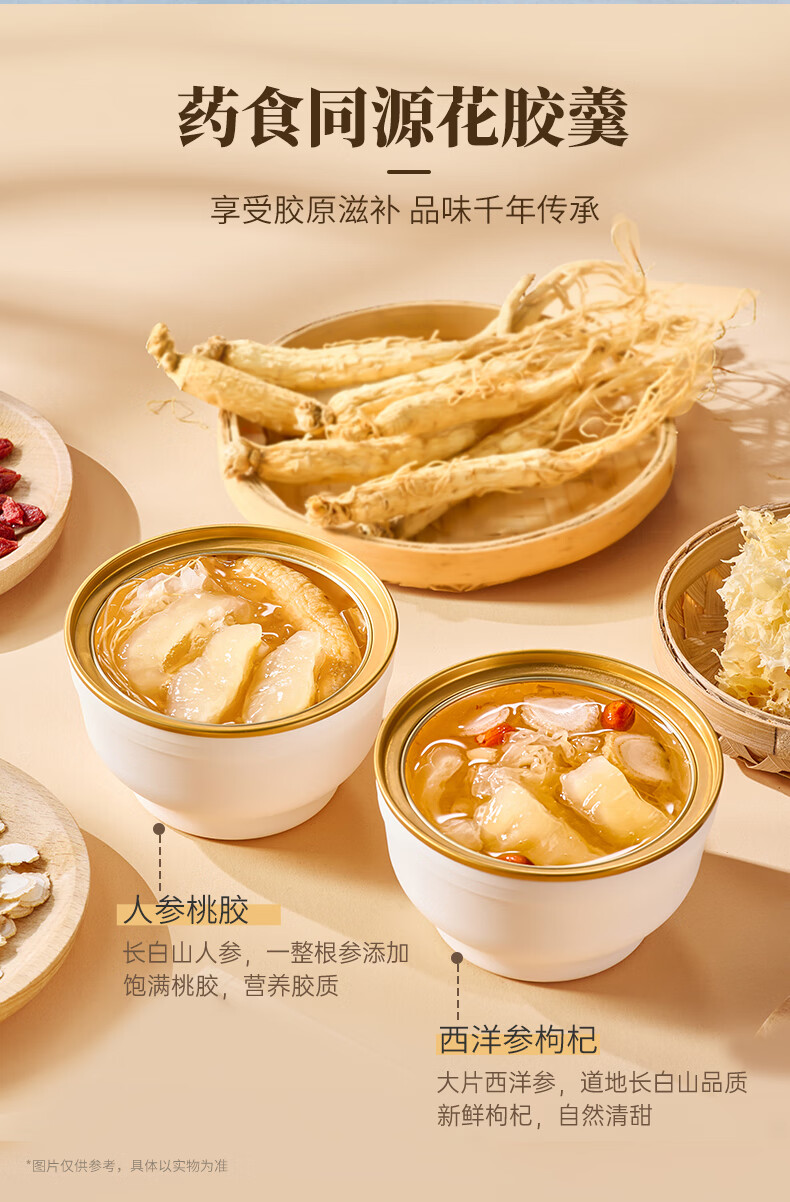 官栈×深度逆转双参花胶羹礼盒168g*8碗即食人参桃胶西洋参鱼胶