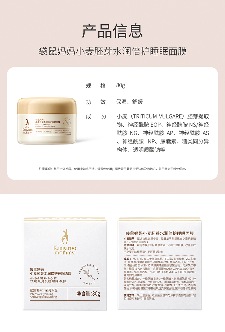 【补水免洗面膜】 干皮必入 小麦专利补水舒缓 免洗配方彻夜润泽 小麦胚芽水润倍护睡眠面膜(80g)