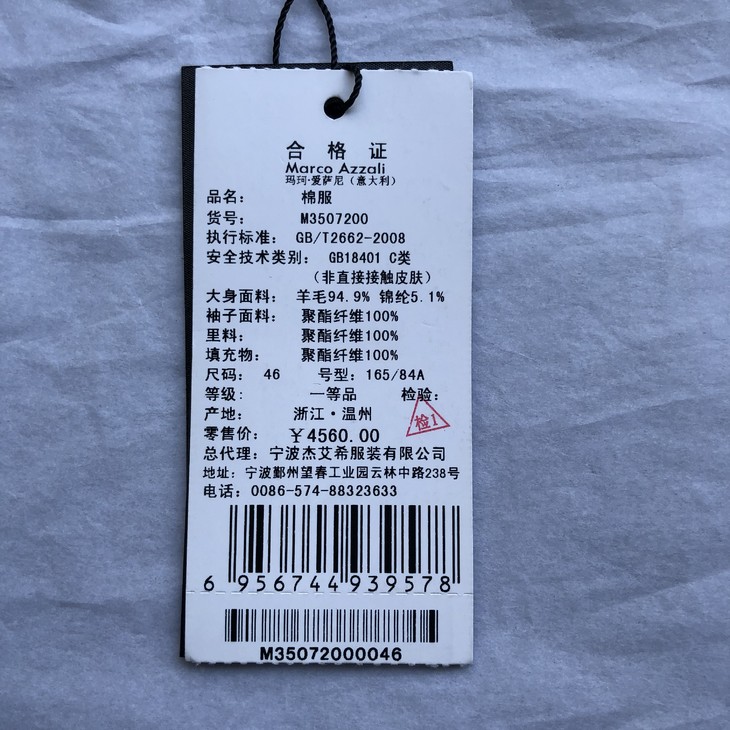 Marco Azzali 藏青羊毛混纺棉服 M3507200