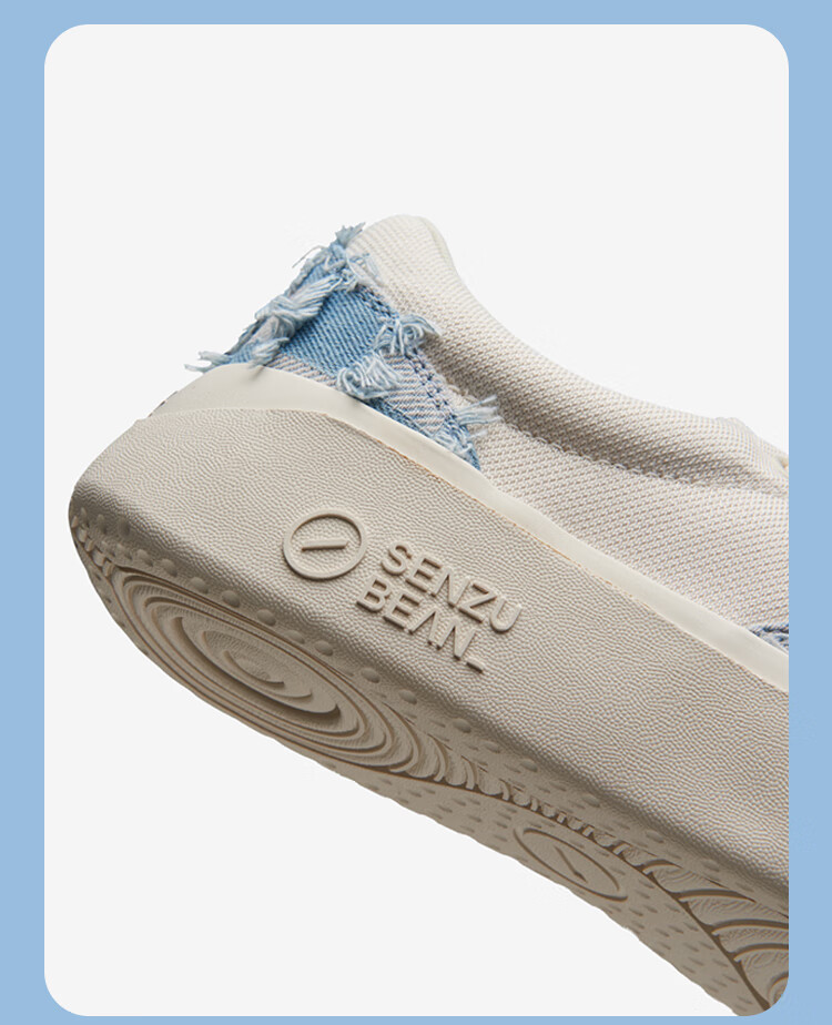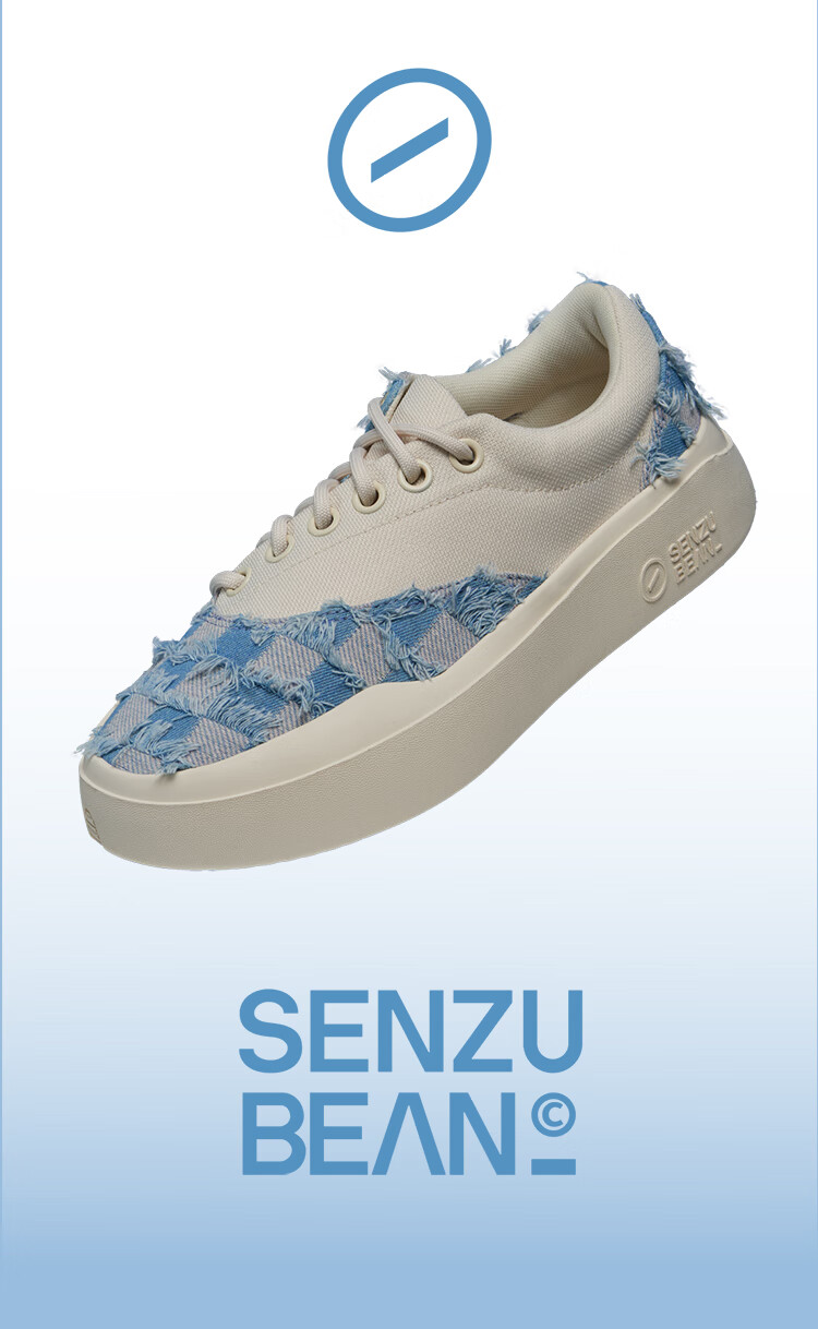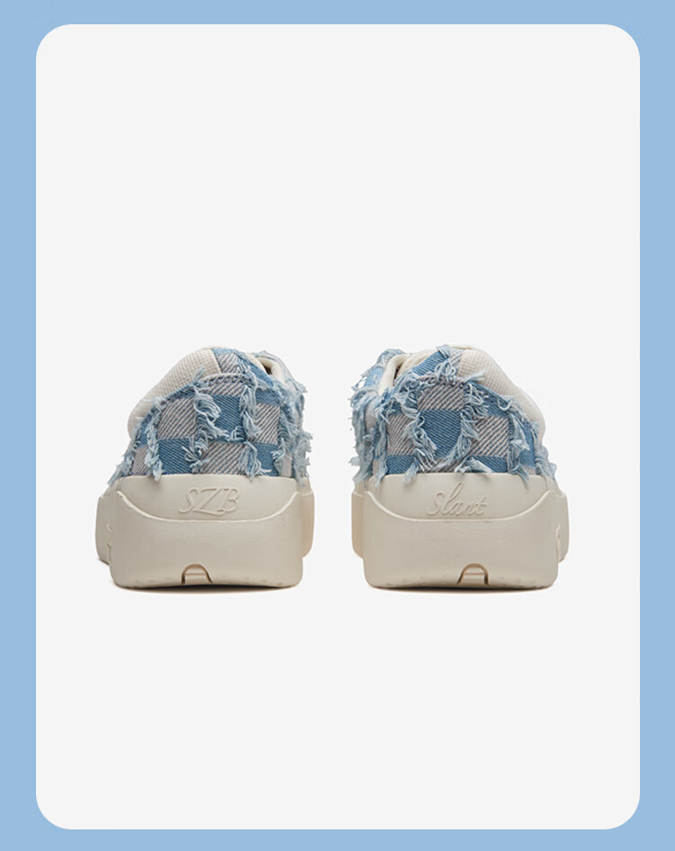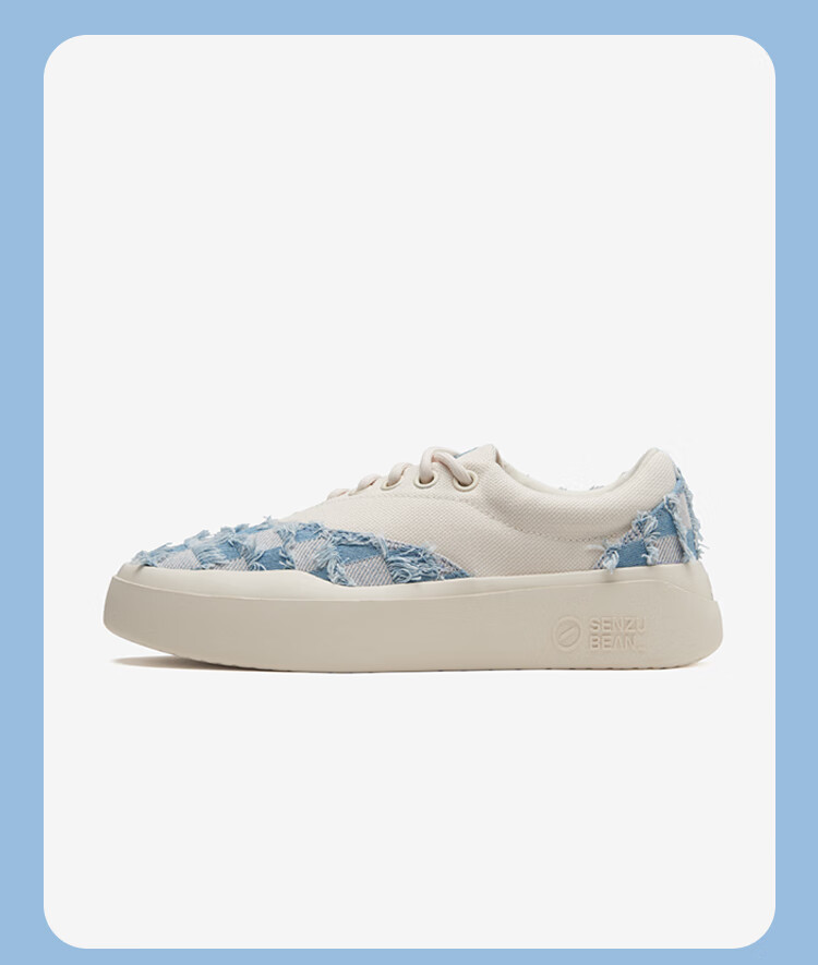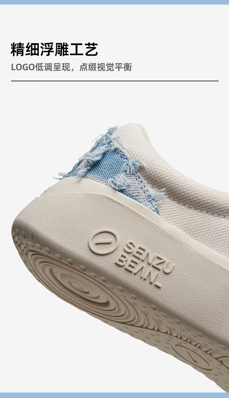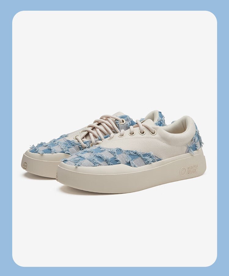 SENZU BEAN男鞋夏季透气SZB休闲鞋流苏牛仔布料防滑低帮平板潮鞋 蓝格流苏-白