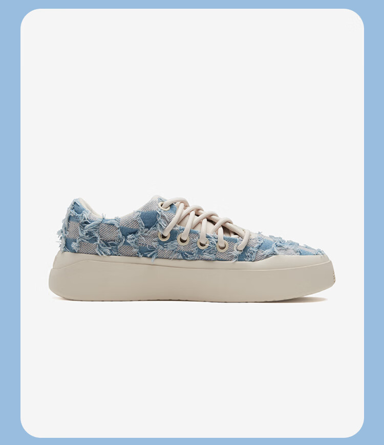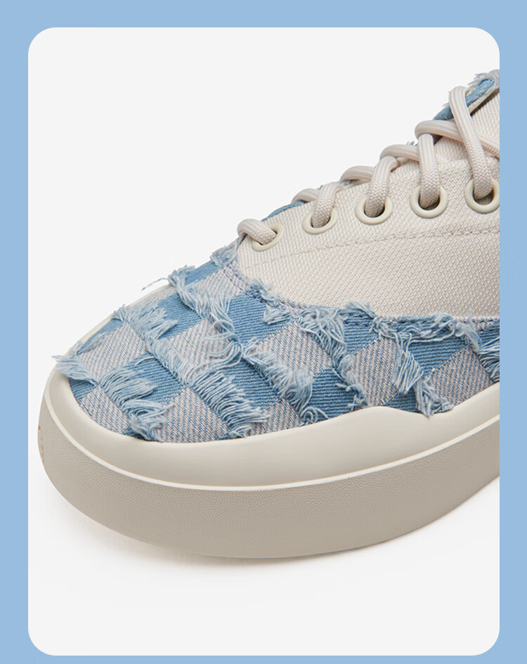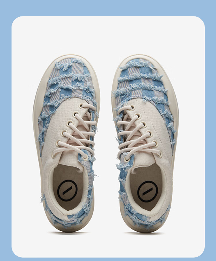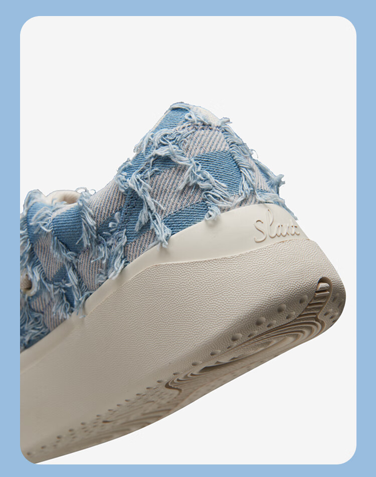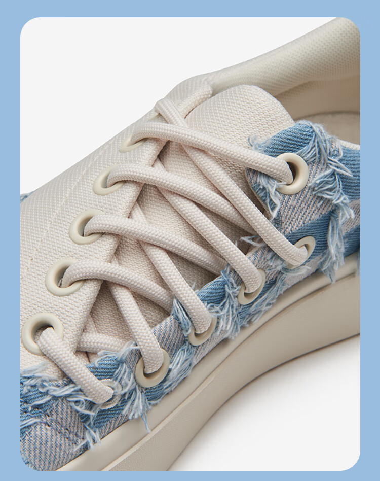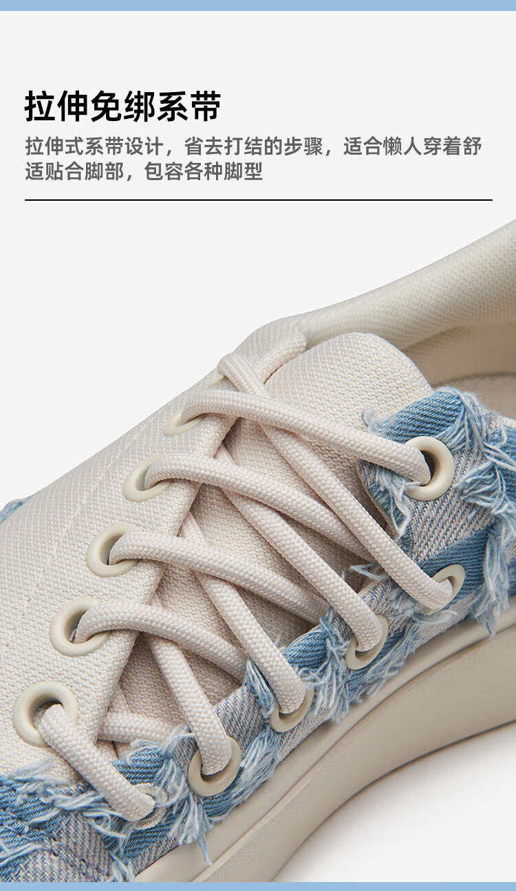 SENZU BEAN男鞋夏季透气SZB休闲鞋流苏牛仔布料防滑低帮平板潮鞋 蓝格流苏-白