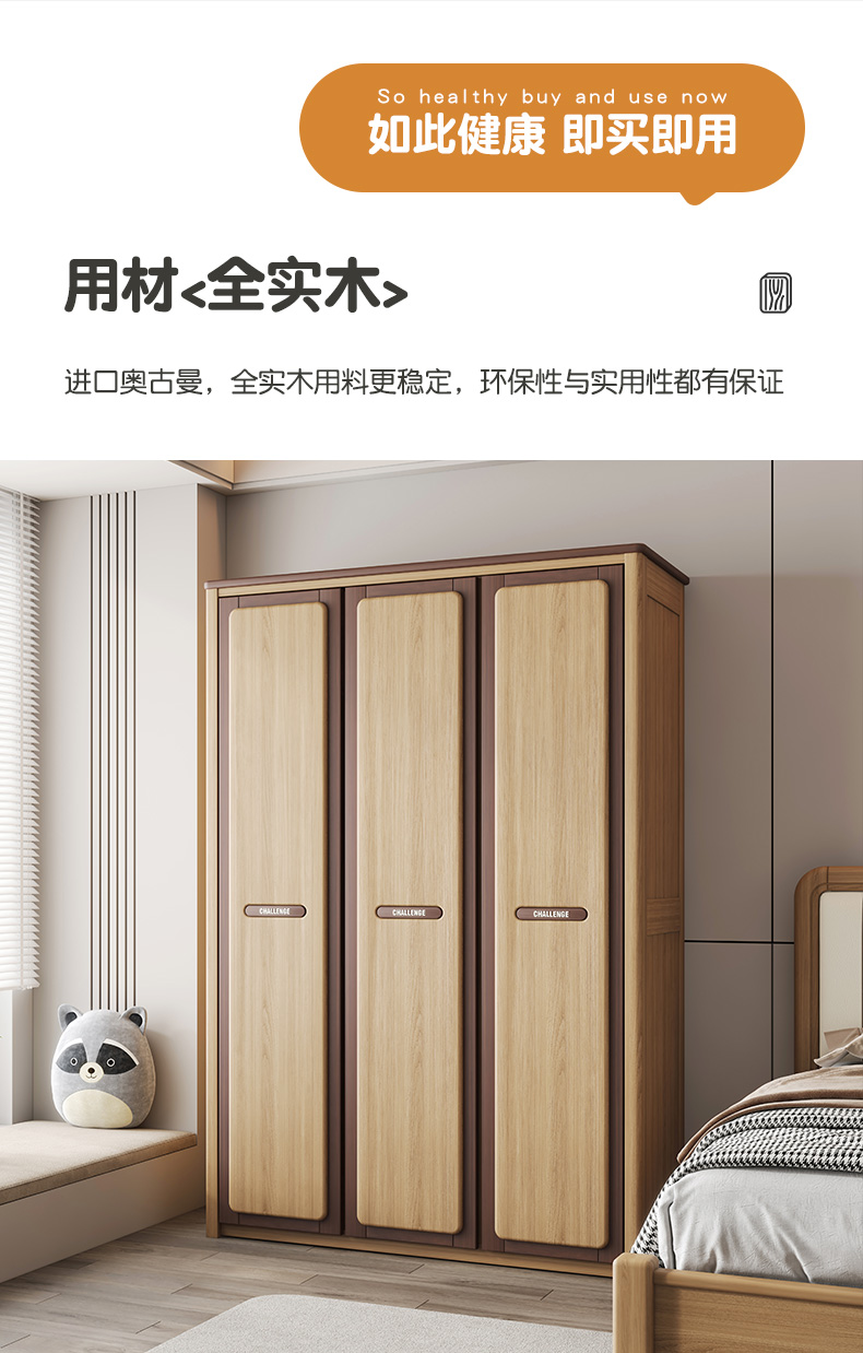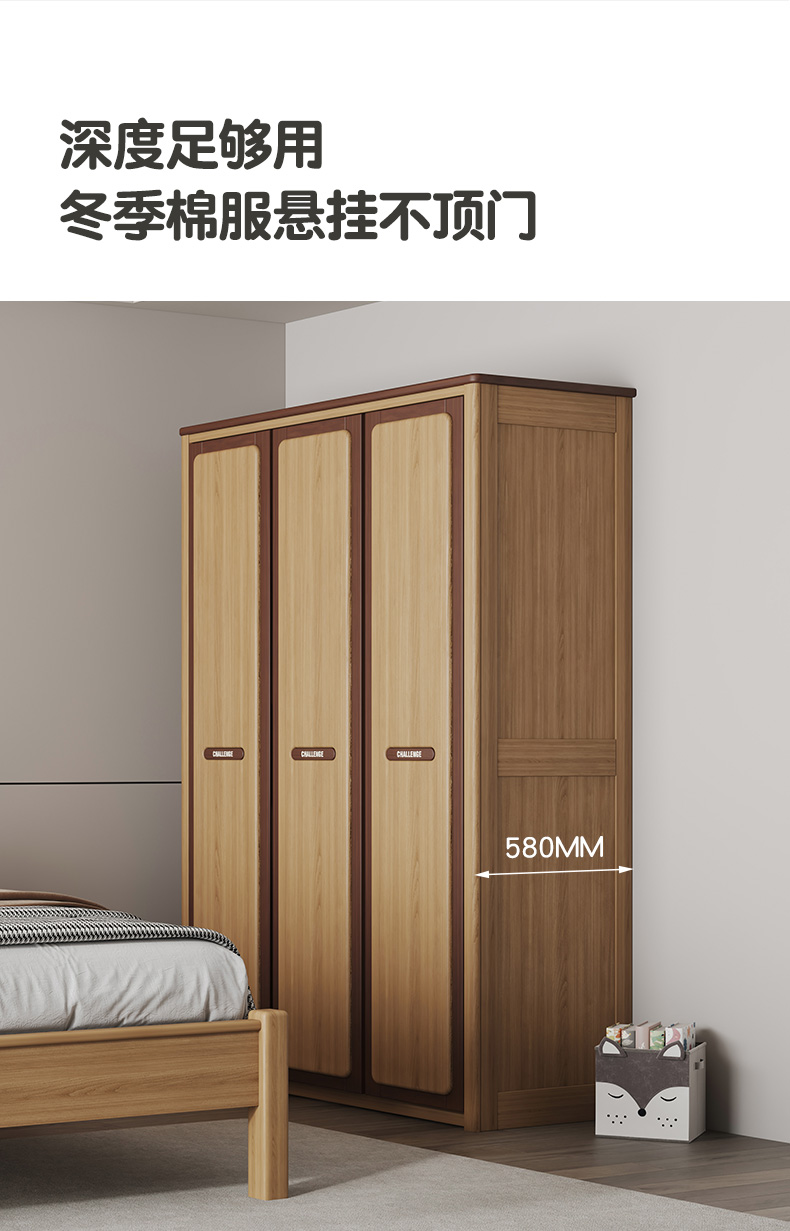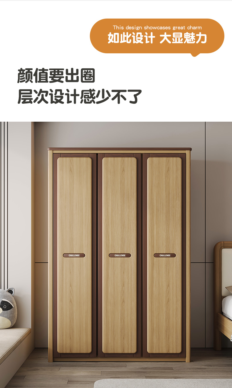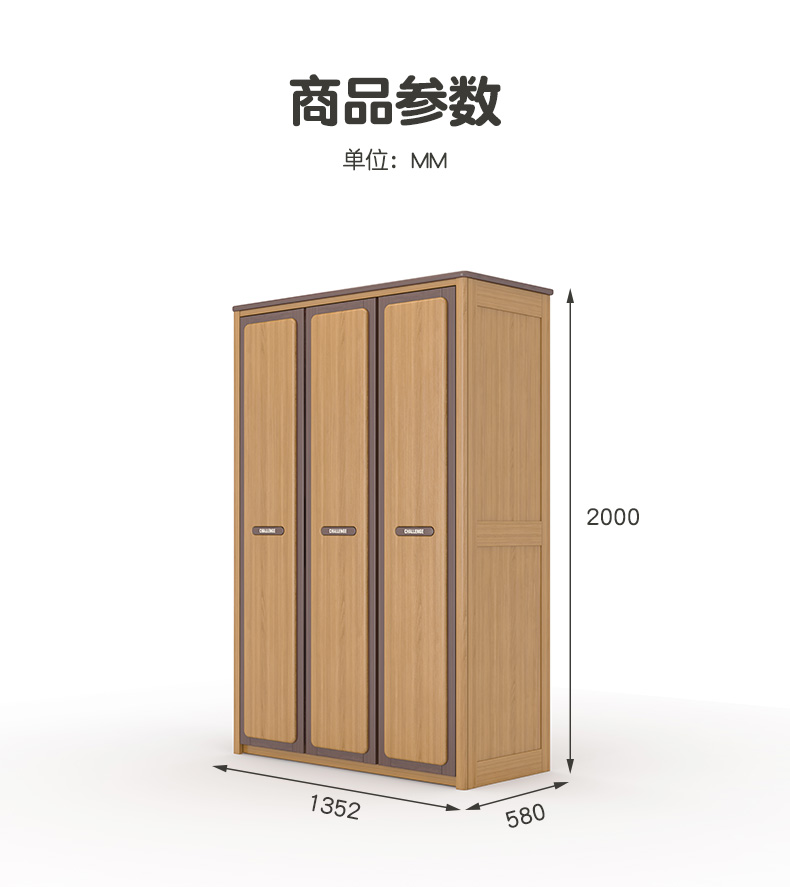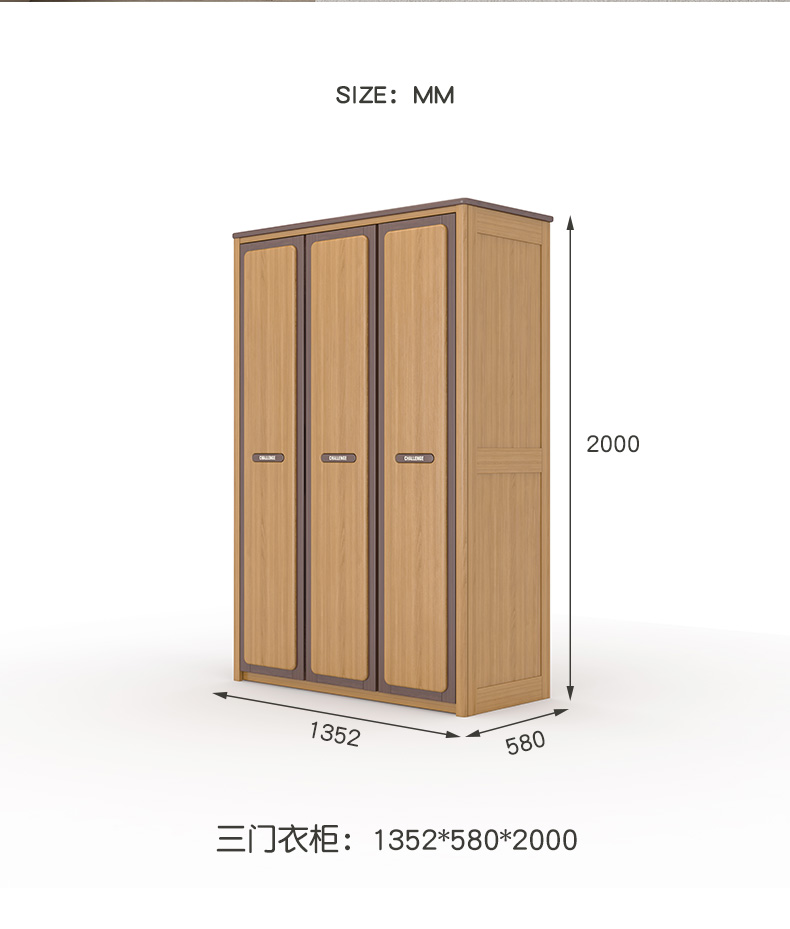 喜梦宝三门衣柜现代简约新中式造型卧室家具红檀系列