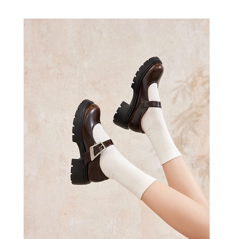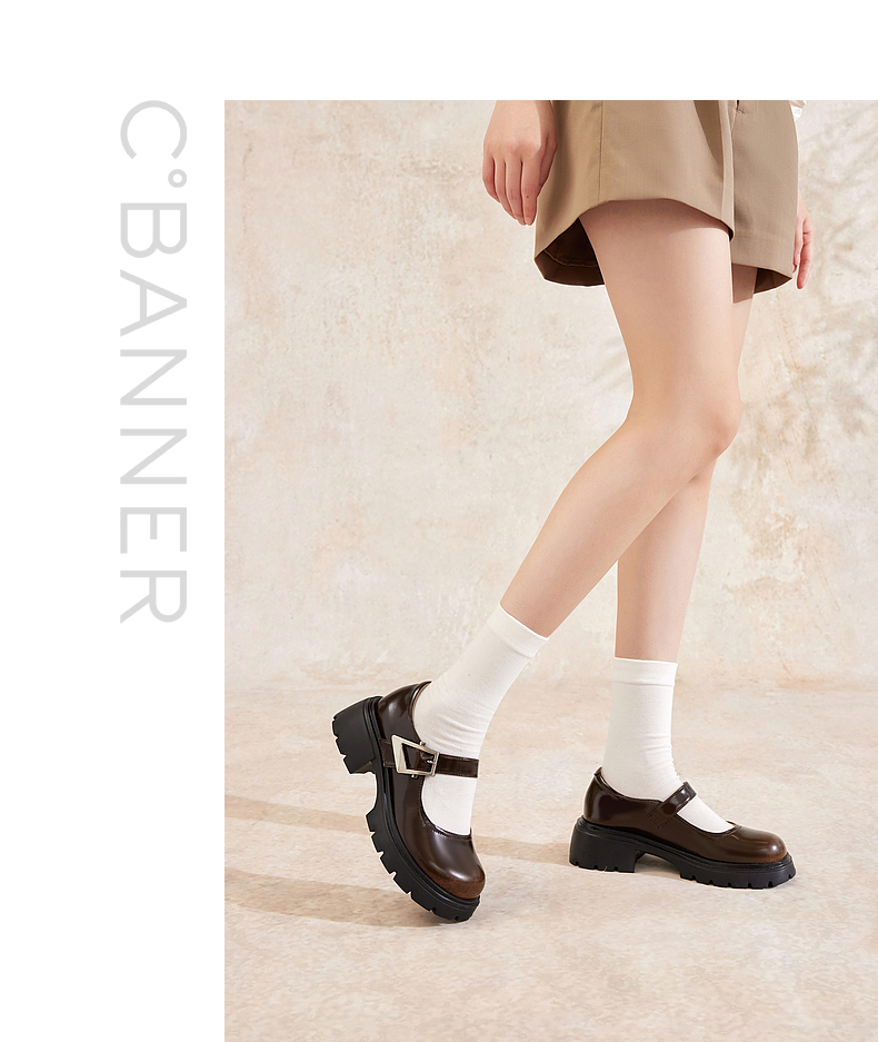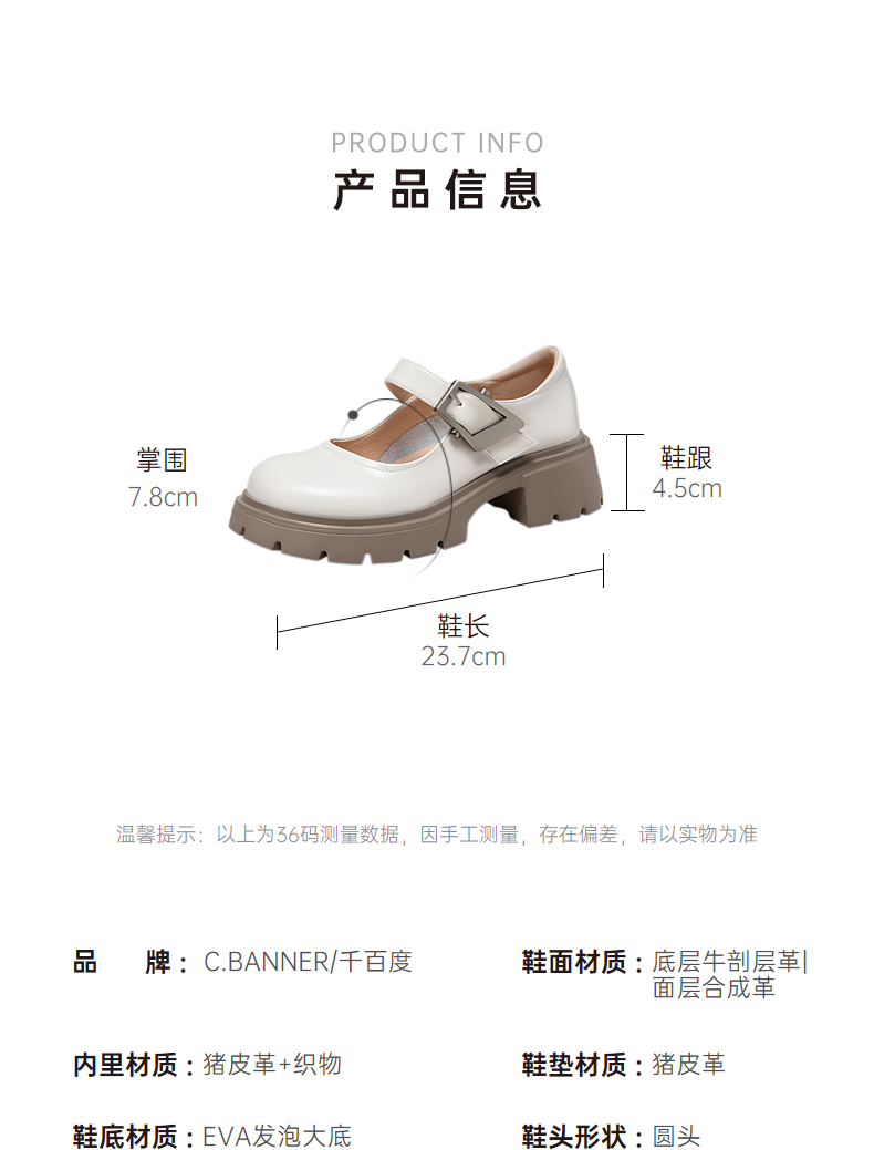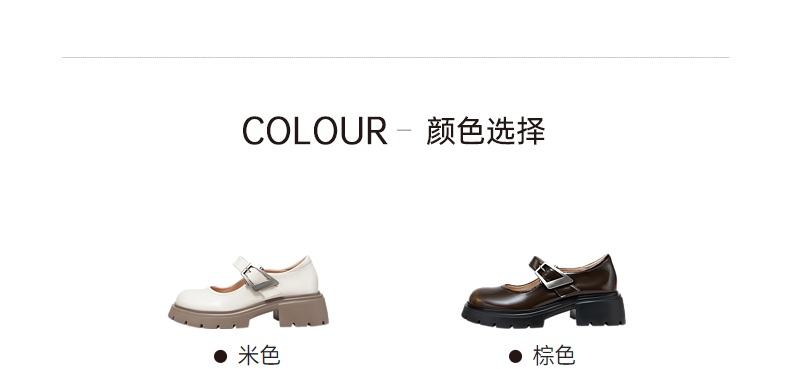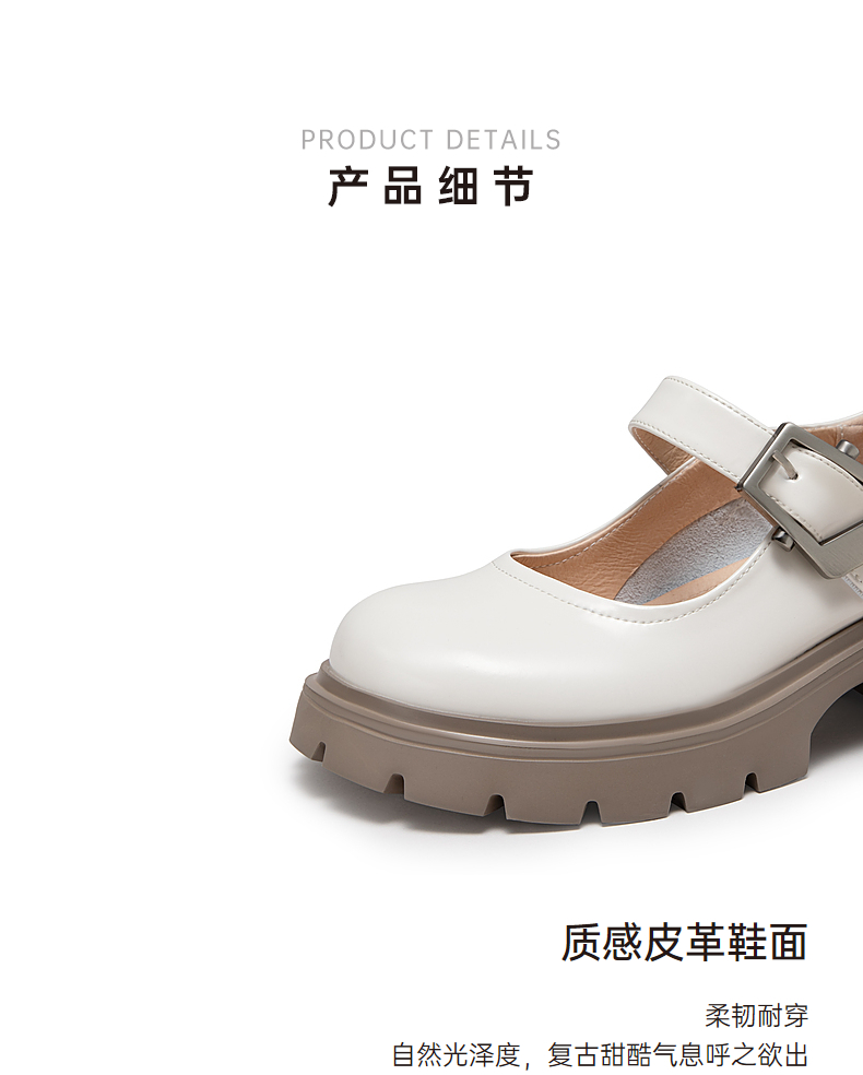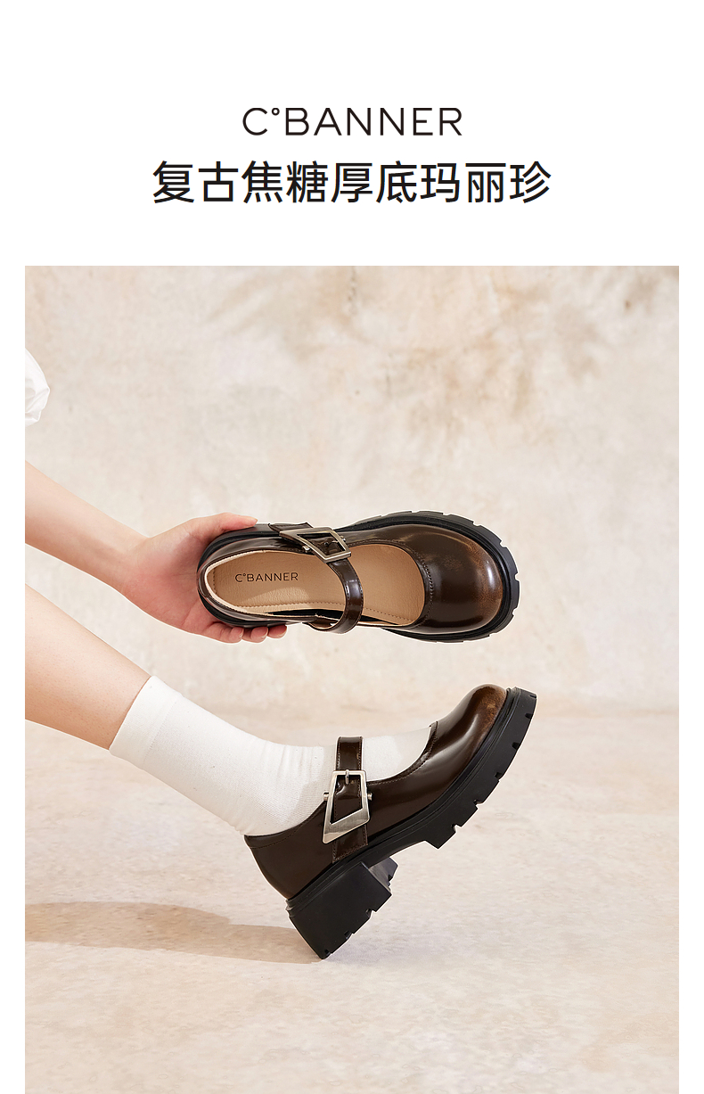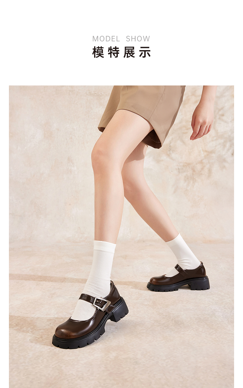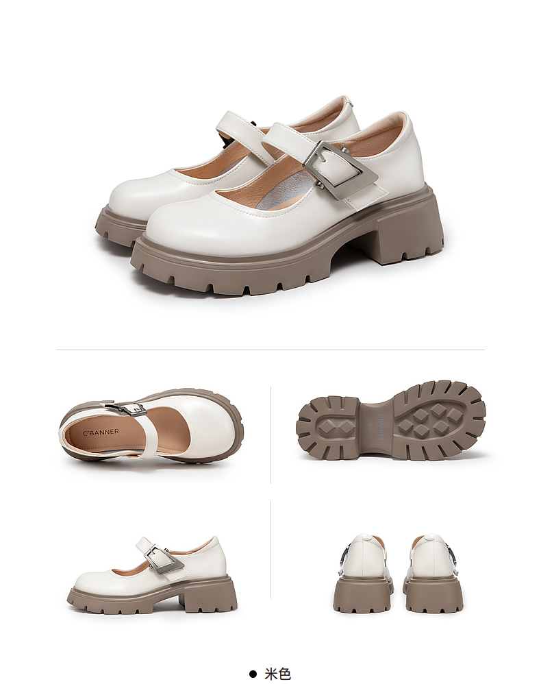 千百度厚底玛丽珍鞋女秋季粗跟小皮鞋增高透气浅口单鞋A24472212