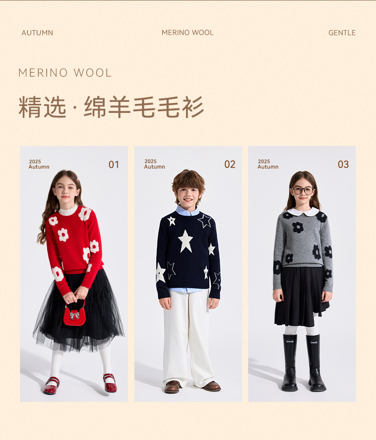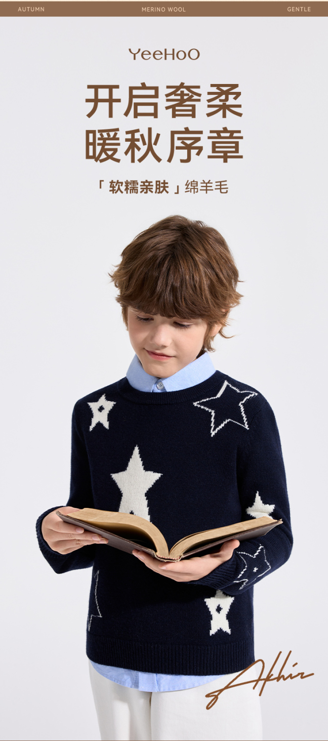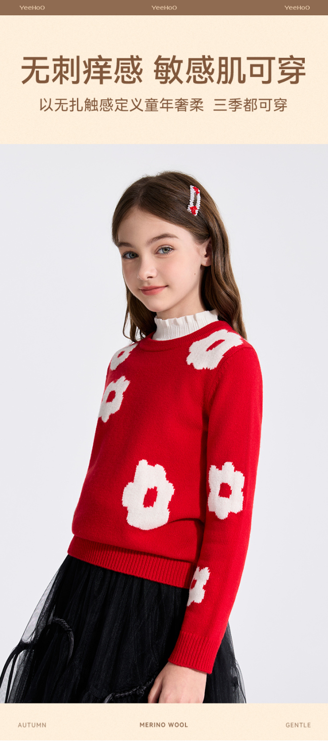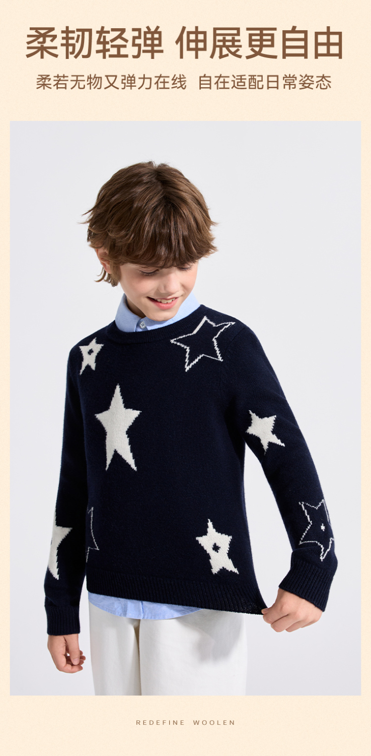 【100%绵羊毛】【英氏】【110-160】男女童冬款纯羊毛针织衫毛衣