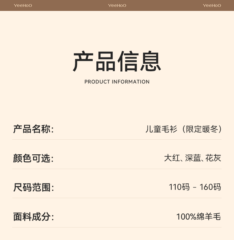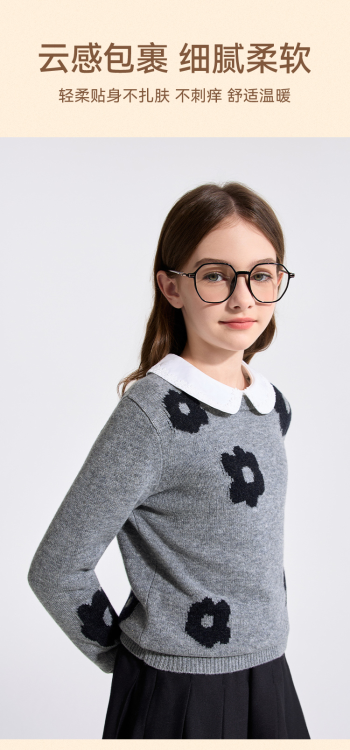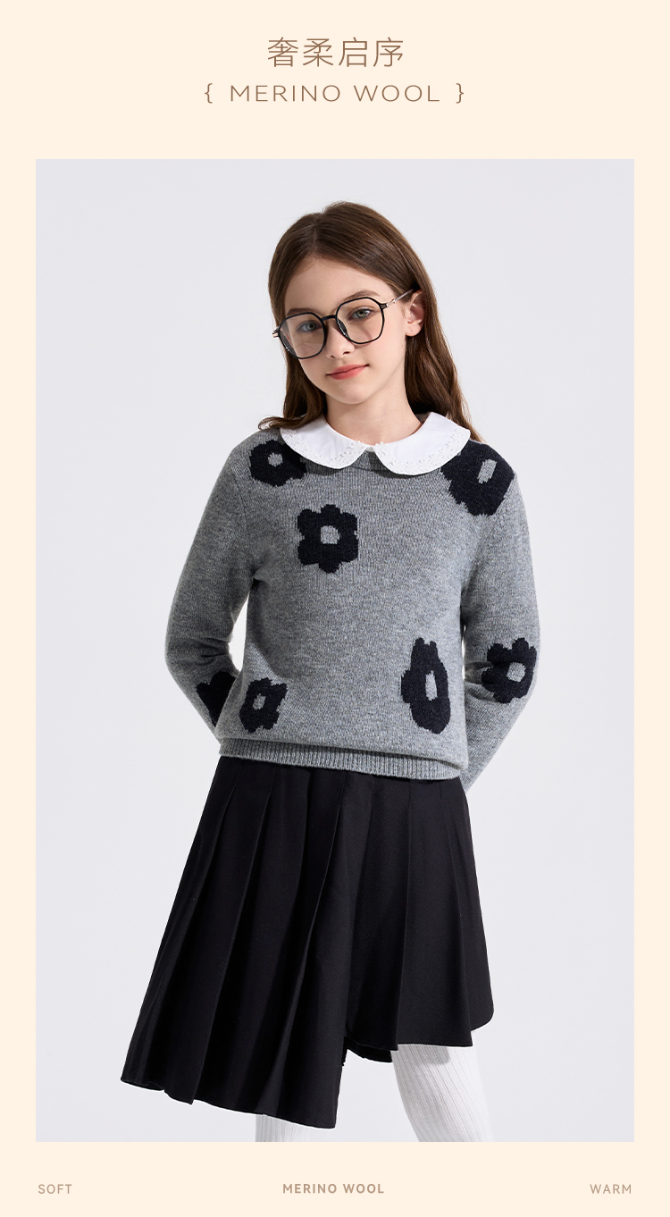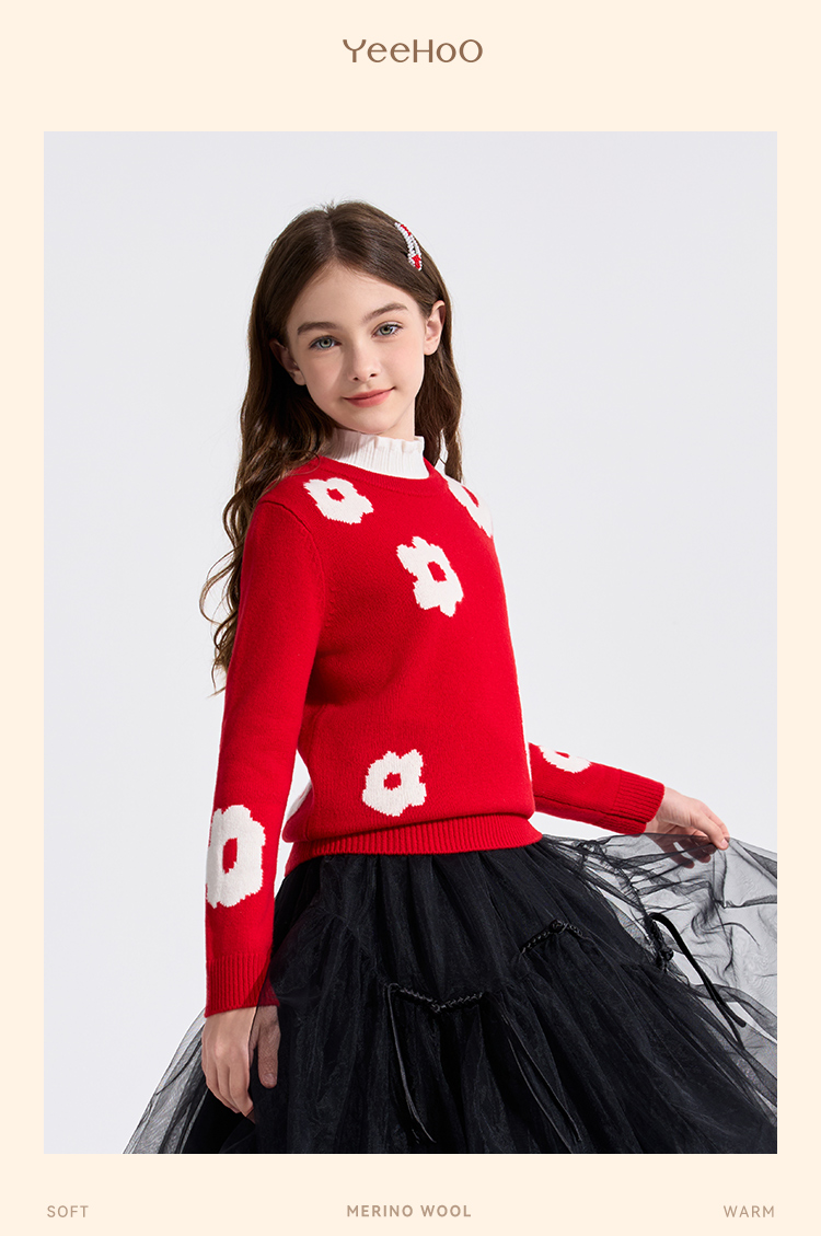 【100%绵羊毛】【英氏】【110-160】男女童冬款纯羊毛针织衫毛衣