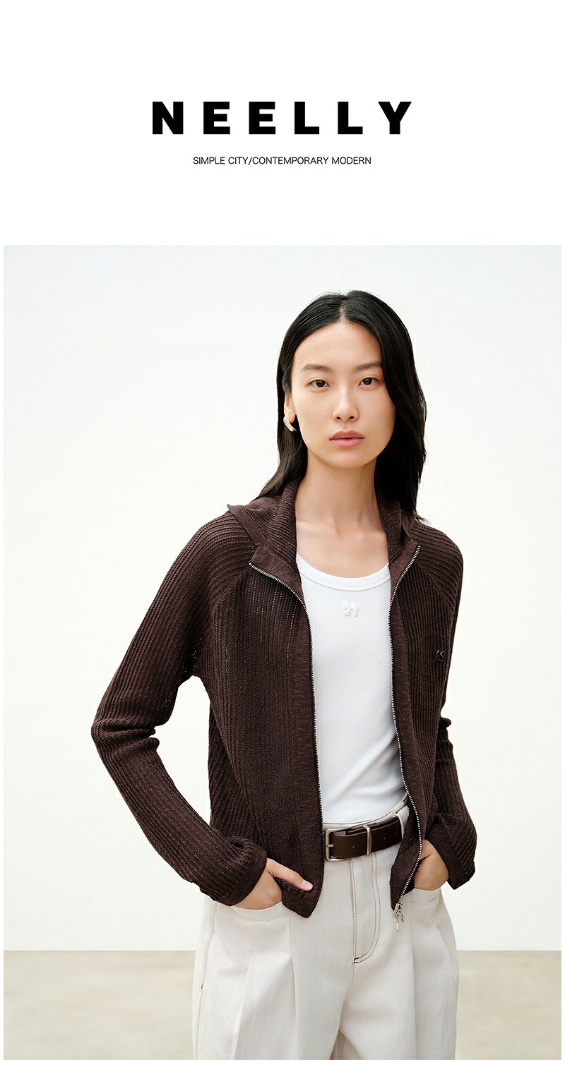 NEELLY纳俪商场同款秋季新款休闲简约针织衫女百搭舒适短款开衫N25081A01057
