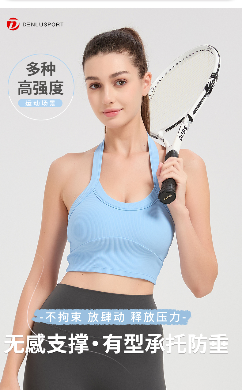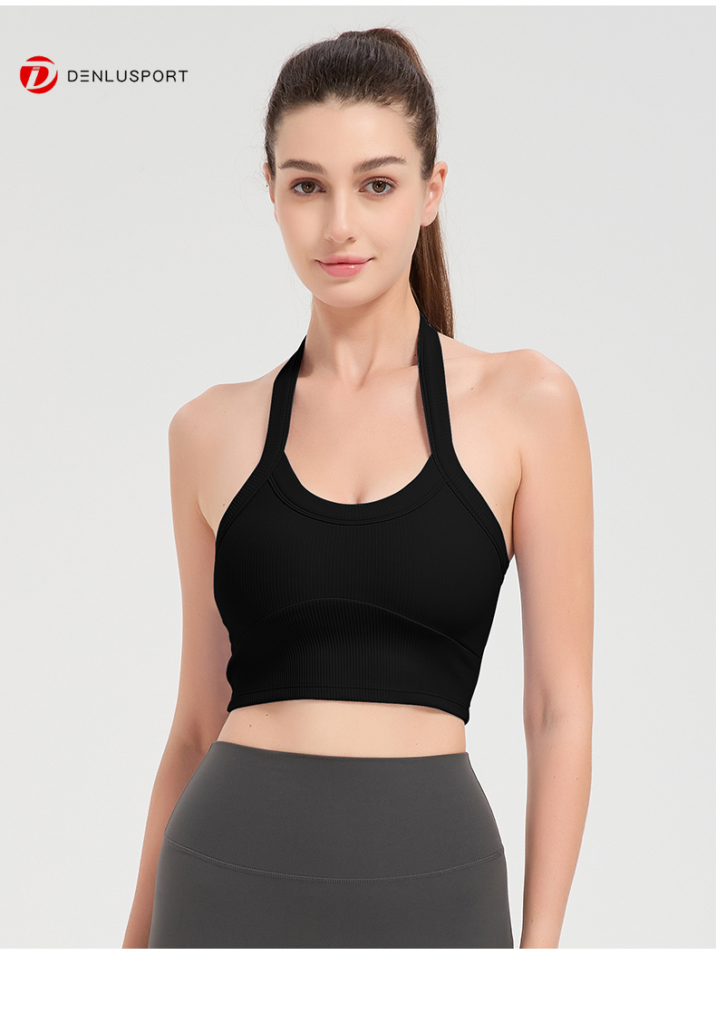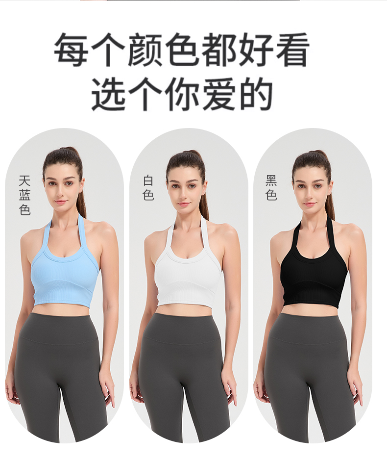 新款螺纹挂脖运动美背alo同款高弹力裸感健身文胸DY66222#