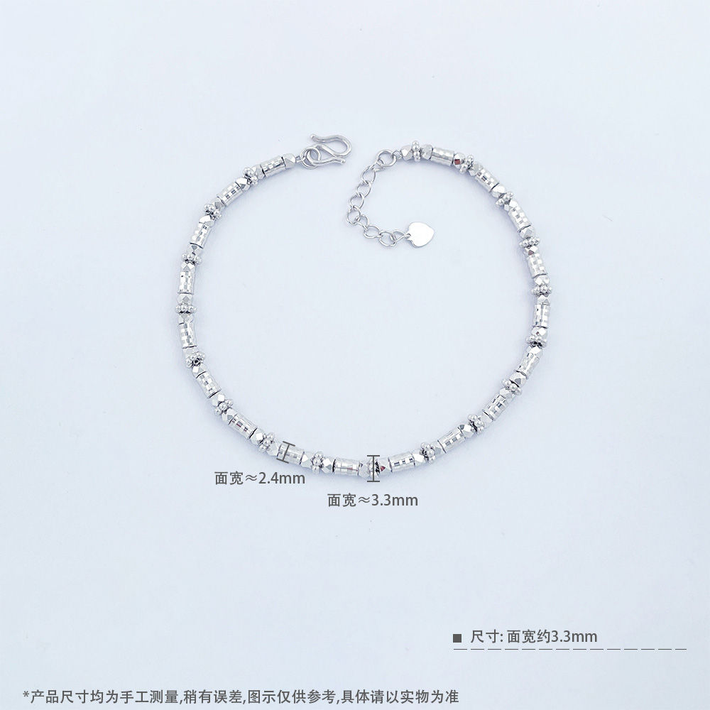 【限时8.8折】【线上铂金馆】PT950 铂金空心可调节蹦迪珠筒珠间珠手链(内为铂金链)(PTSL00005)预售产品下单后不退款不退货不换货不补差价)