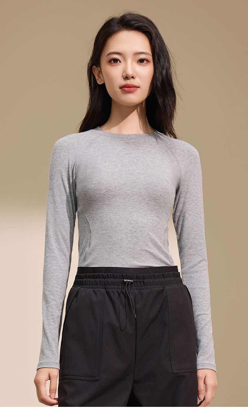 I'd爱帝女式莱赛尔羊毛圆领修身显瘦长袖打底衫