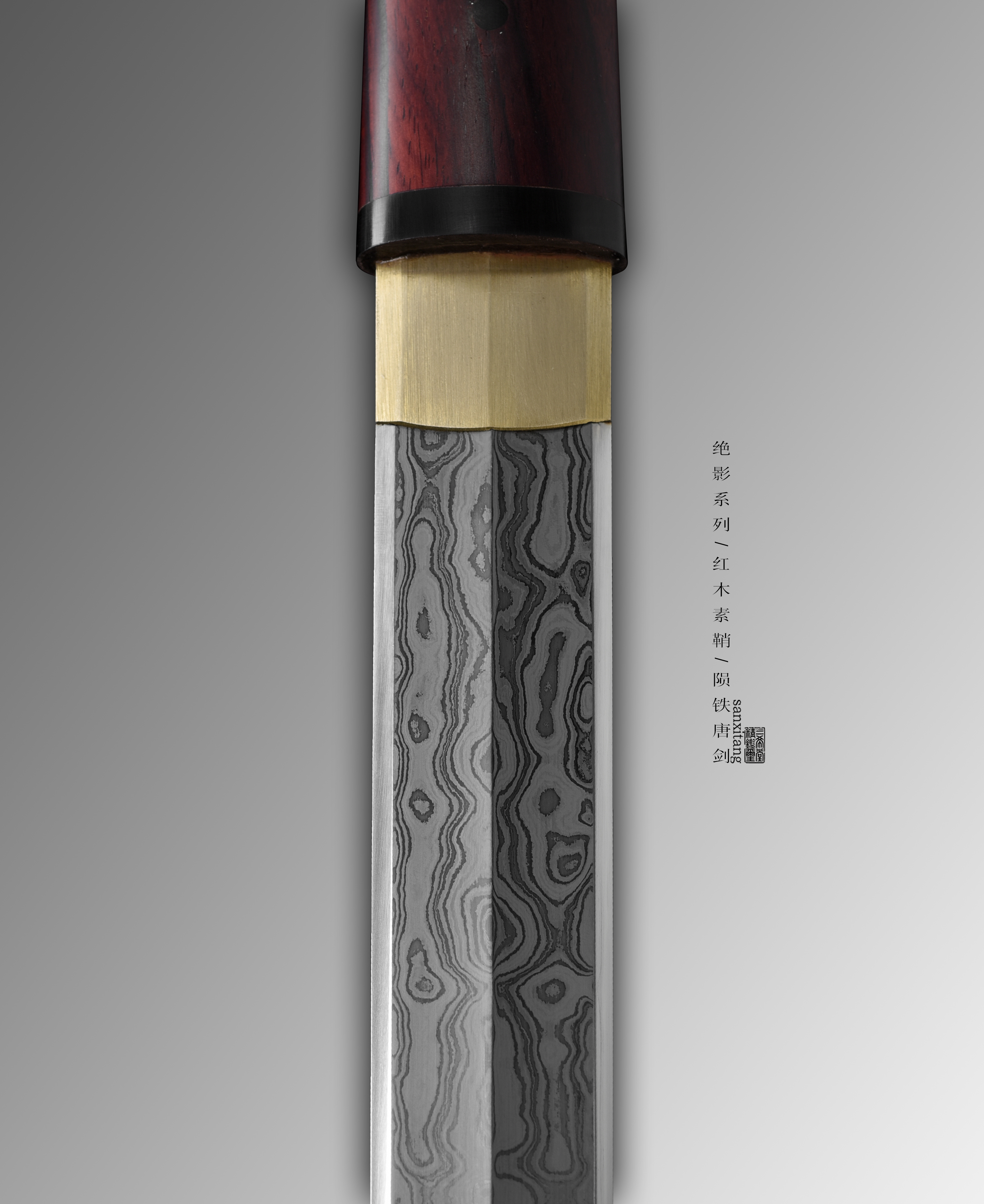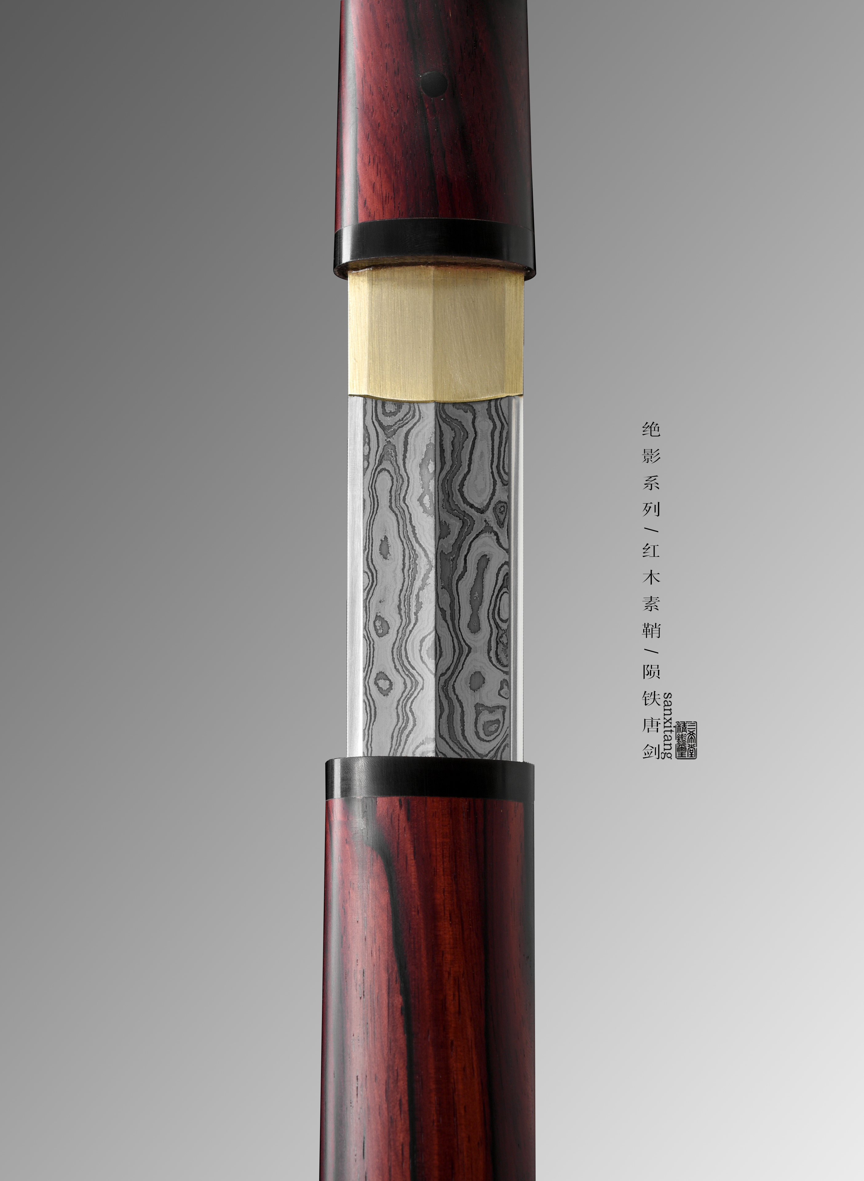 很是素雅的一只唐剑作品 全长100 一般的陨铁作品陨铁含量都在百分之50以下 这只作品陨铁含量达到了百分之70 我们买的都是瑞典的陨铁 品质很好 当然价格也会比较高 这只作品折叠锻打了32000余层 手工开瓦槽 古法研磨 用各种磨刀石一点一点研磨出来的 让陨铁的纹路表现的自然细腻 表面像清澈的湖水一样 陨铁纹一圈圈散开像墨韵一般 相当有质感 最难的就是把朴素的作品做的高档这只作品就做到了这一点 用了一整根上等紫檀木 这一根紫檀木就不少钱了 不过效果是真的好 送礼盒 实木架子 保养套装 手写书法出世纸加盖西泠印社名家篆刻印章 各位自己收藏或者送礼都相当合适!!