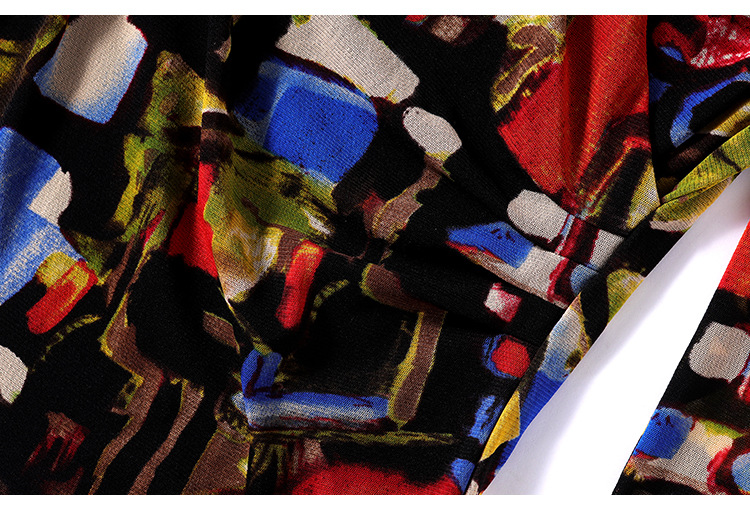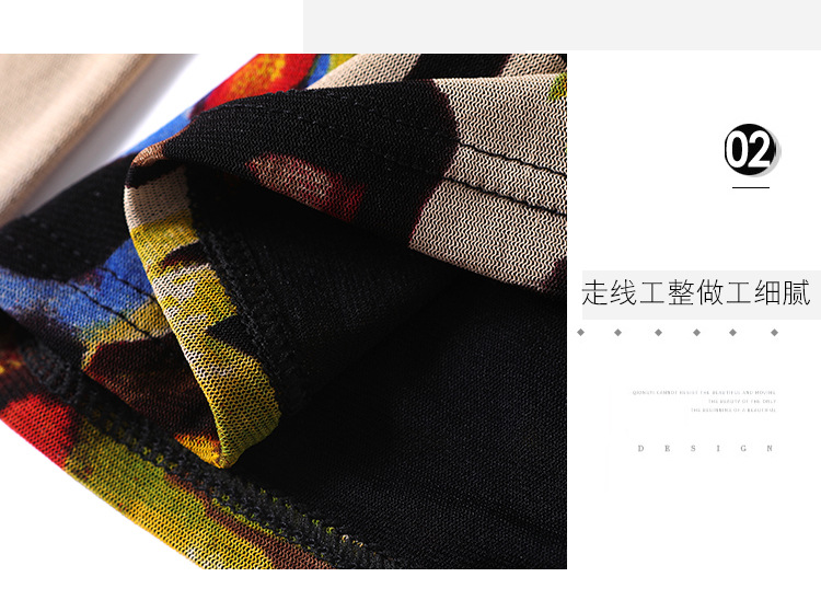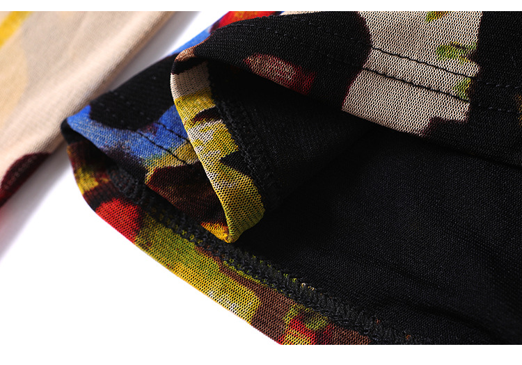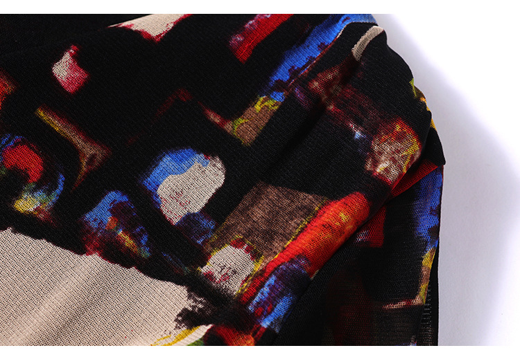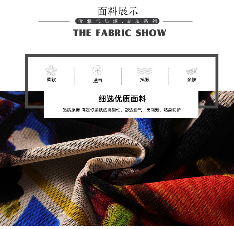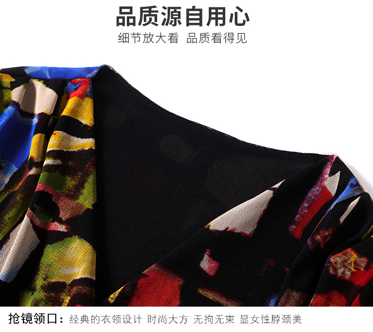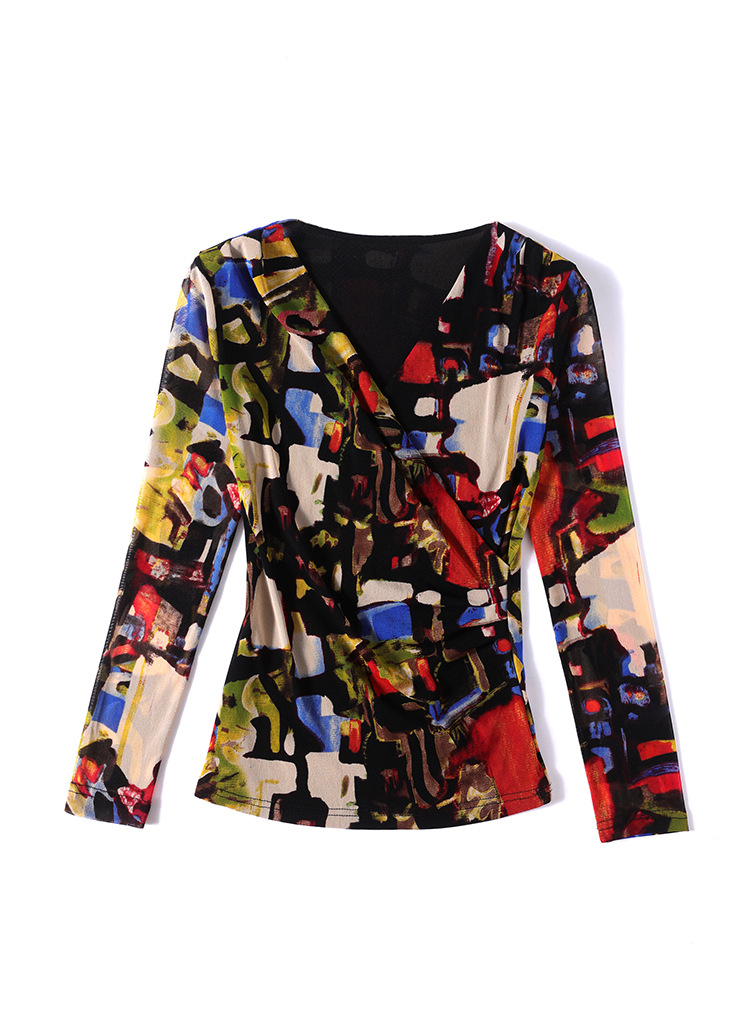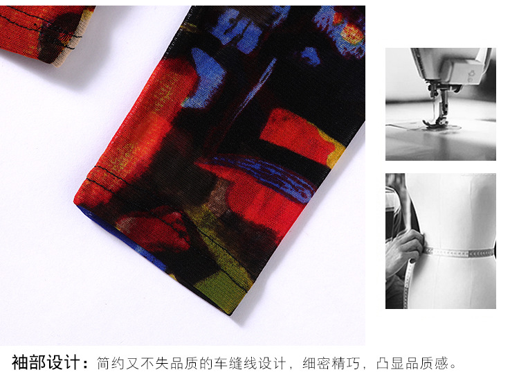 秋季新款,交叉领修身显瘦网纱T恤印花长袖打底衫大码妈妈装KQL-9952
