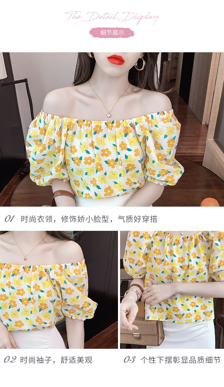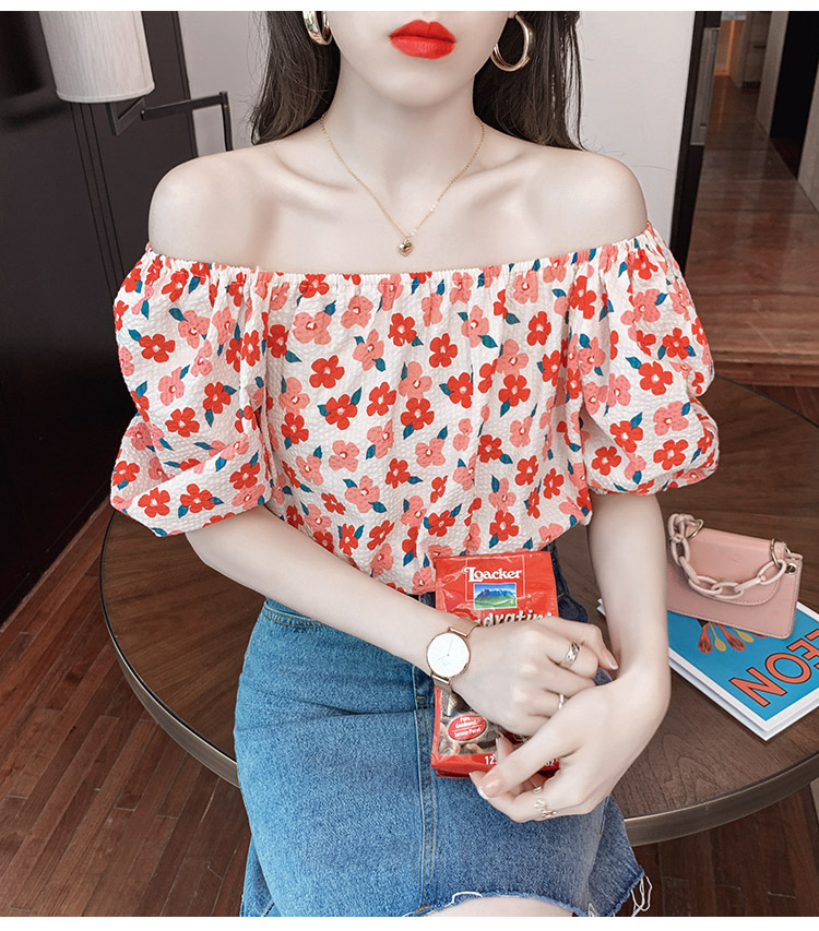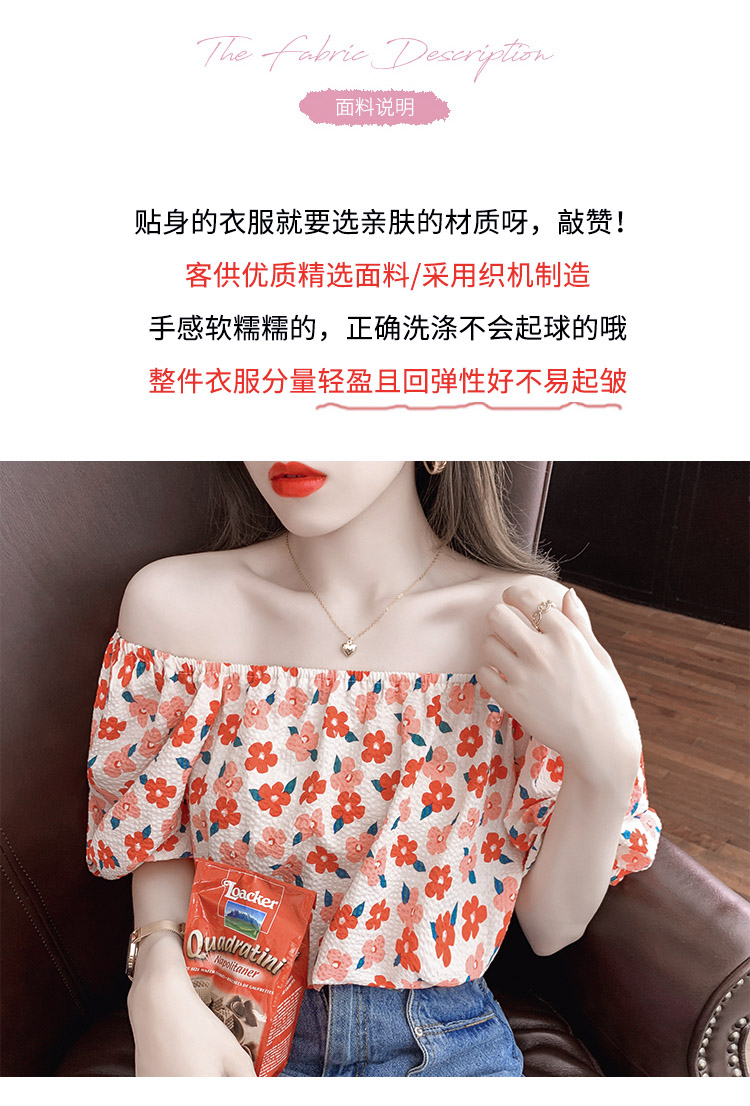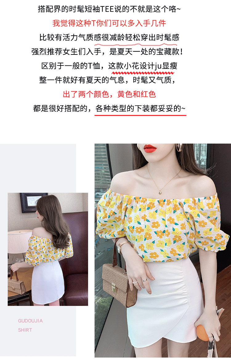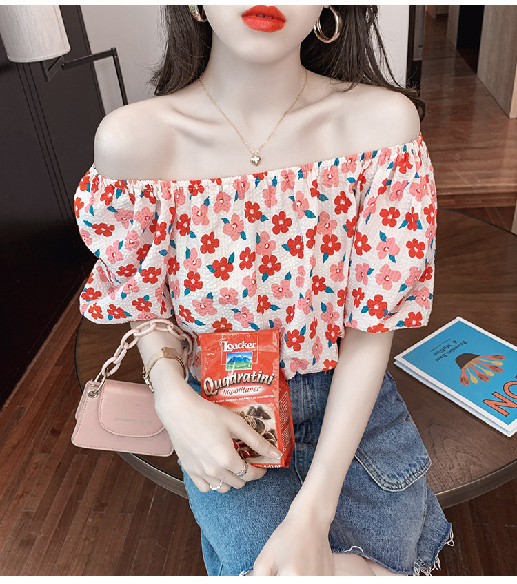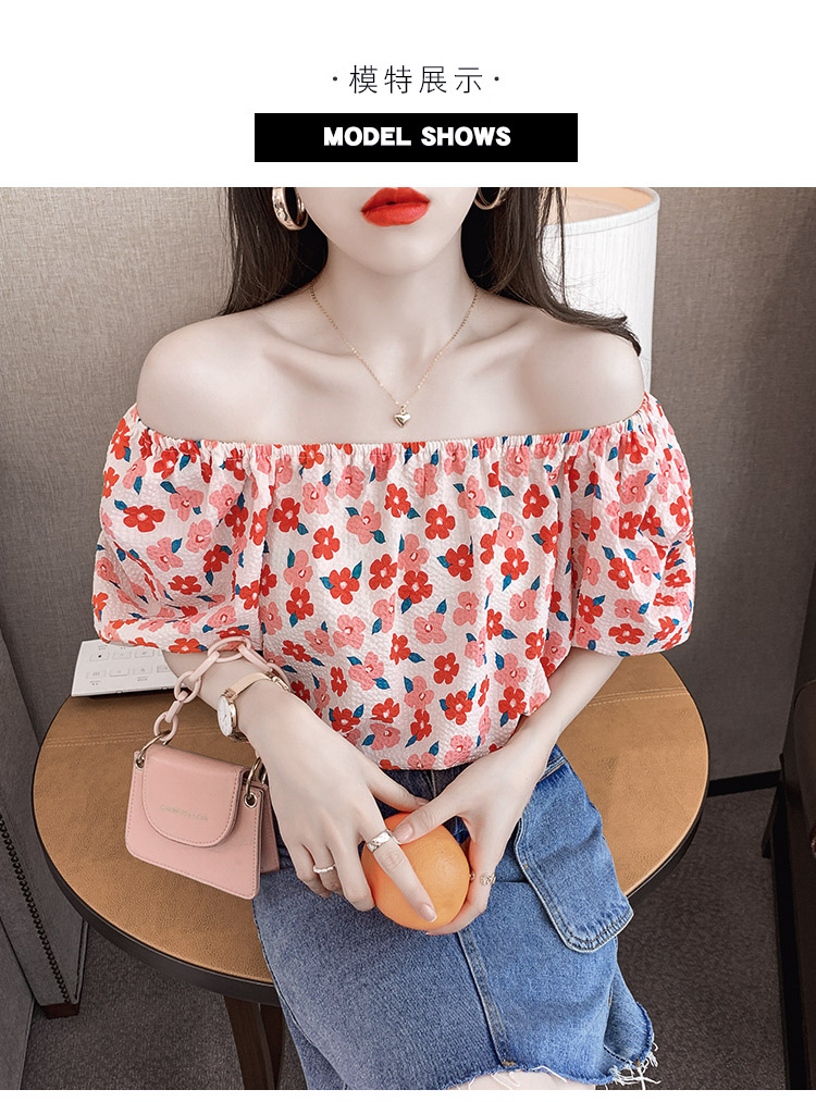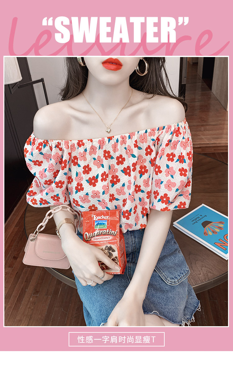 夏季气质露肩锁骨性感一字领短袖T恤女碎花百搭雪纺衫上衣小衫潮