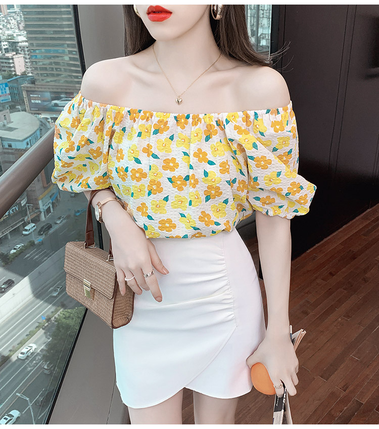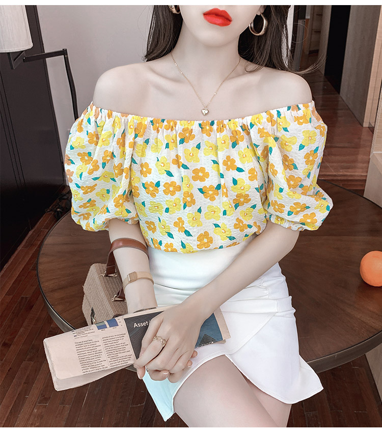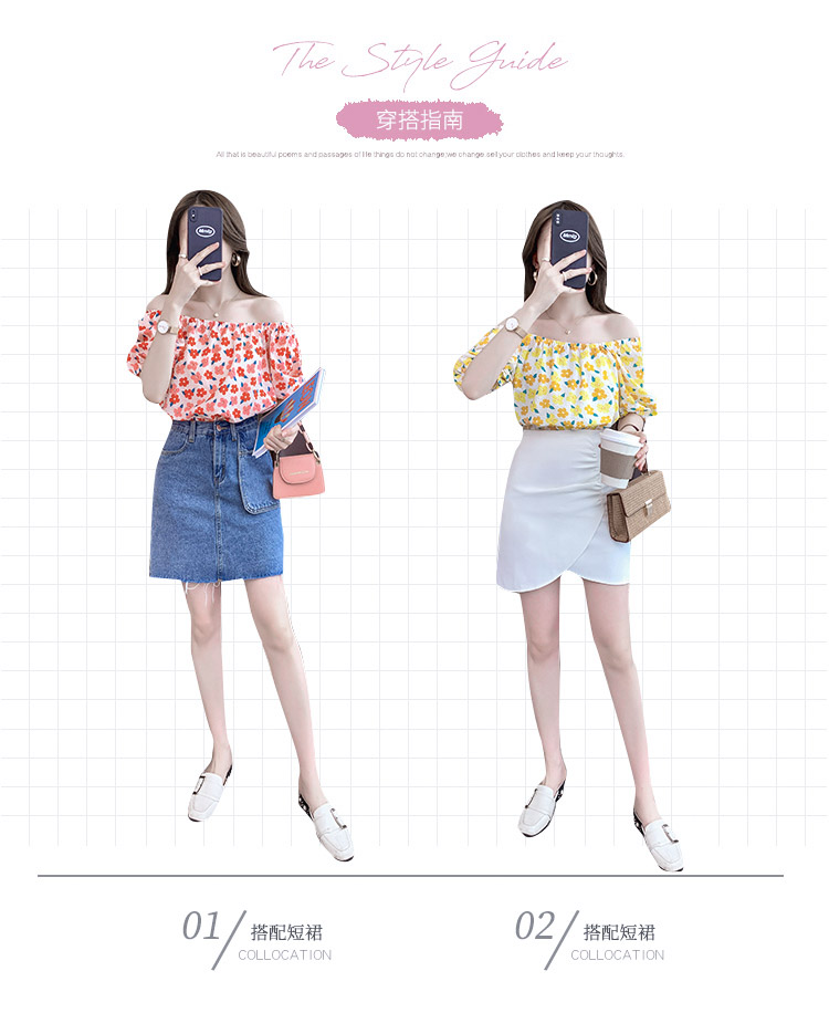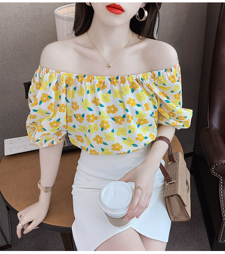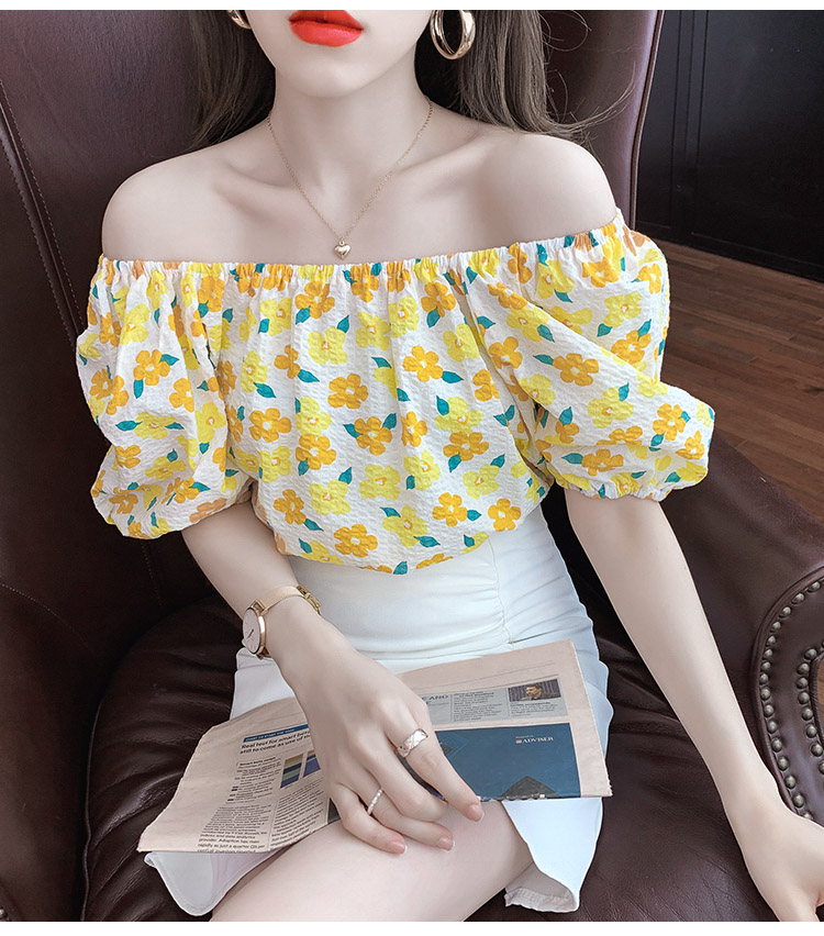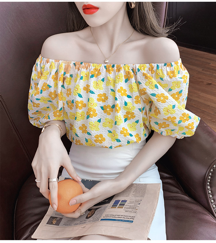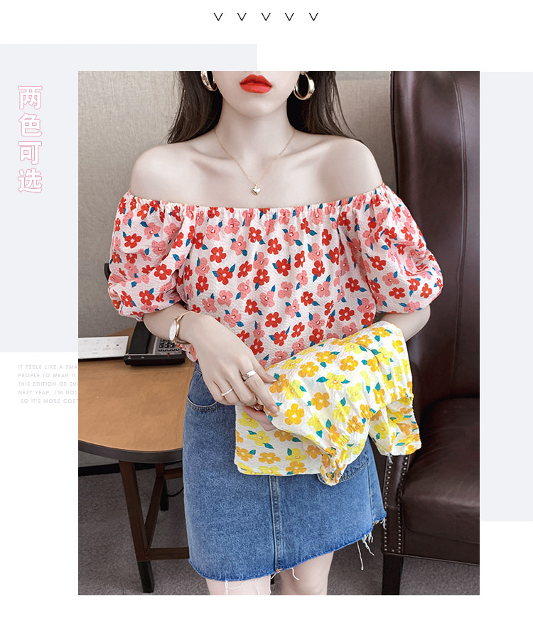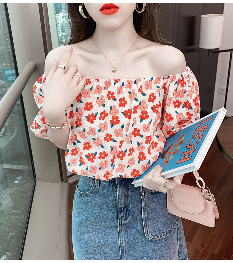 夏季气质露肩锁骨性感一字领短袖T恤女碎花百搭雪纺衫上衣小衫潮
