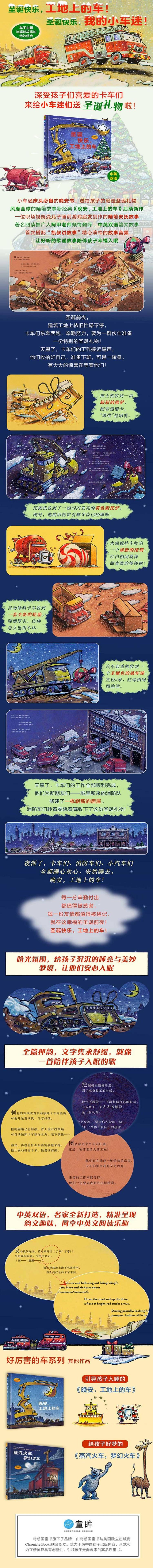 《圣诞快乐,工地上的车(中英双语)》是高踞《纽约时报》畅销书榜四年多的童书《晚安,工地上的车》的新后续作品,也是送给小车迷的节日礼物!