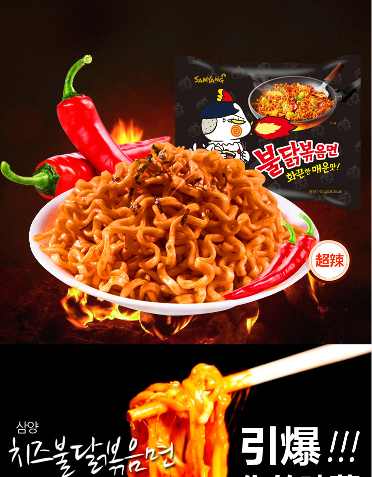 韩国三养辣鸡肉味拌面140g/032683 单包装劲辣体验让人抵挡不住的诱惑
