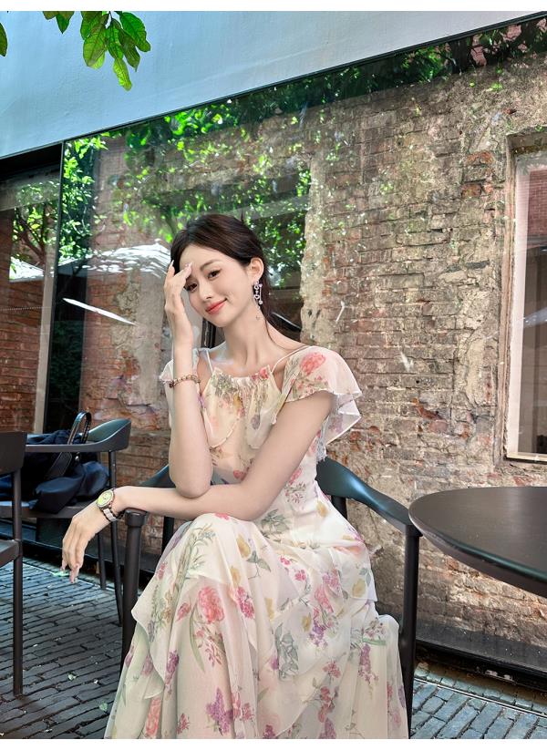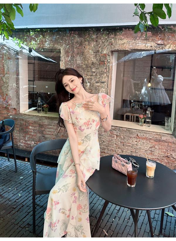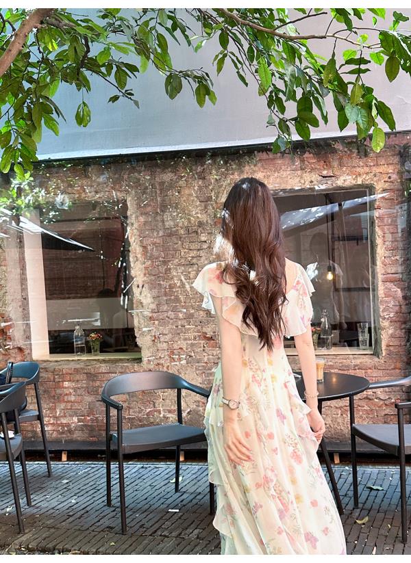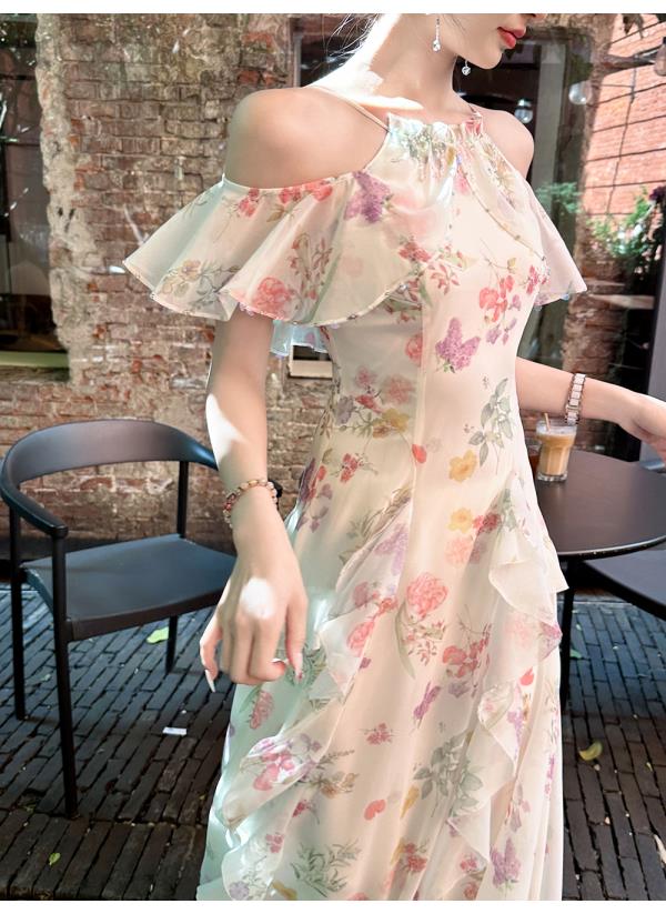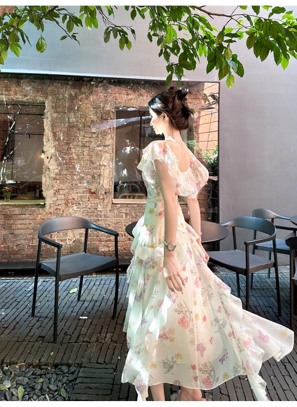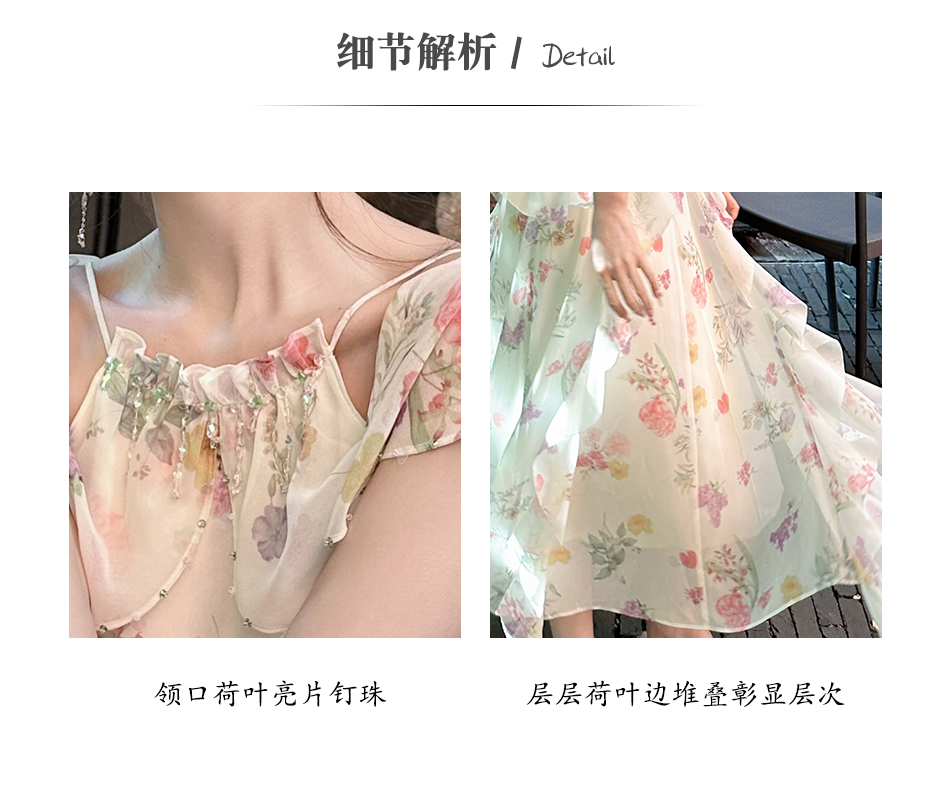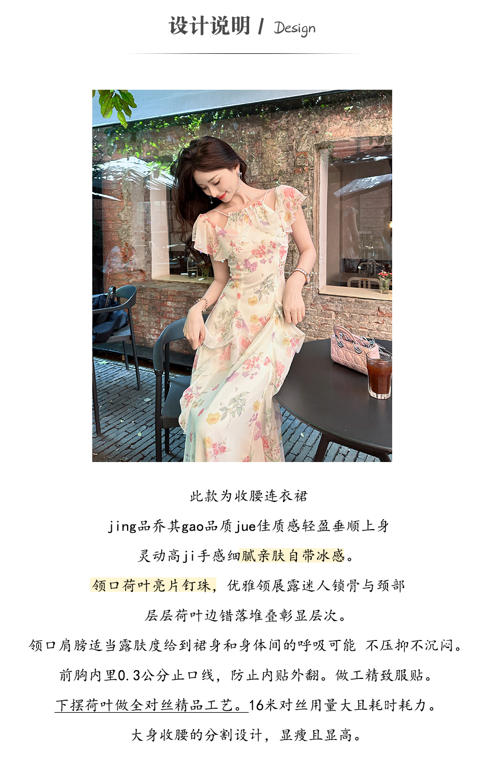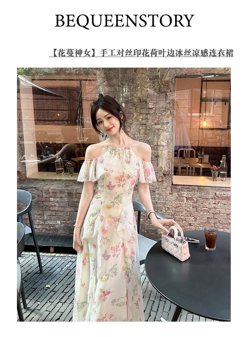 【孤品样衣,不退不换】【花蔓神女】轻奢小众高级感荷叶边冰丝显瘦连衣裙女