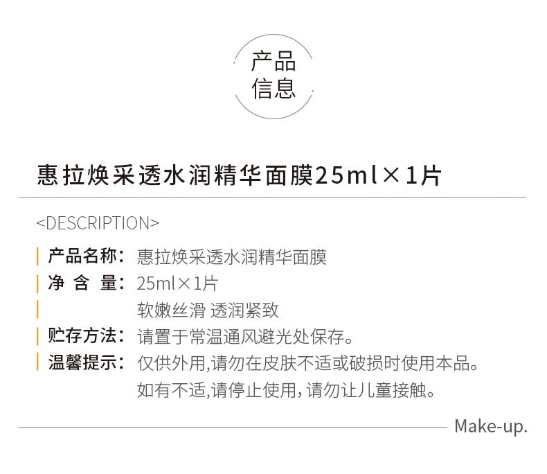 惠拉焕采滢透水润精华面膜25ml(241239)