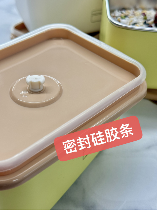 再看看细节,密封硅胶圈 一按保温缩鲜,一提平衡气压,轻松打开盖子