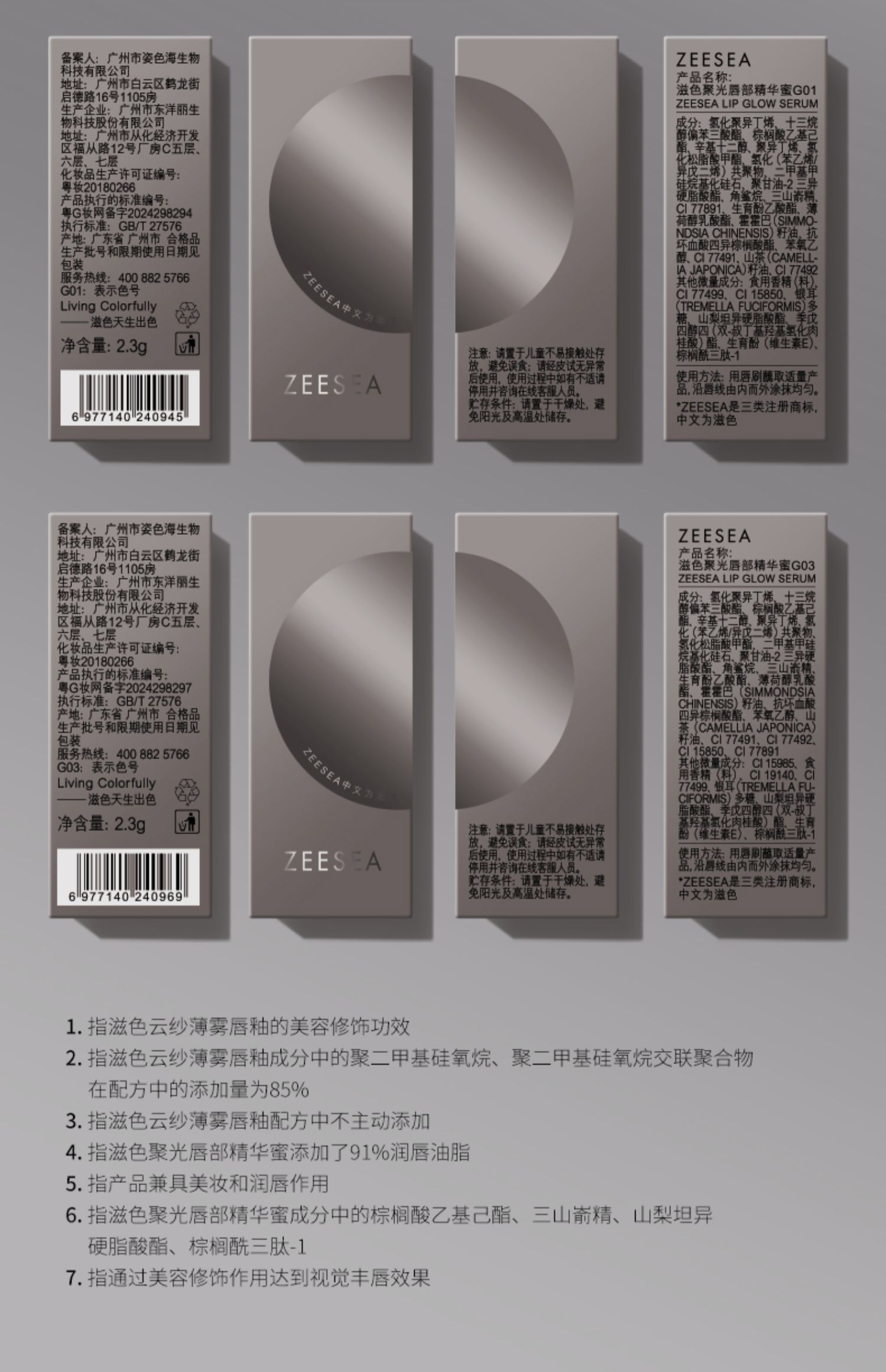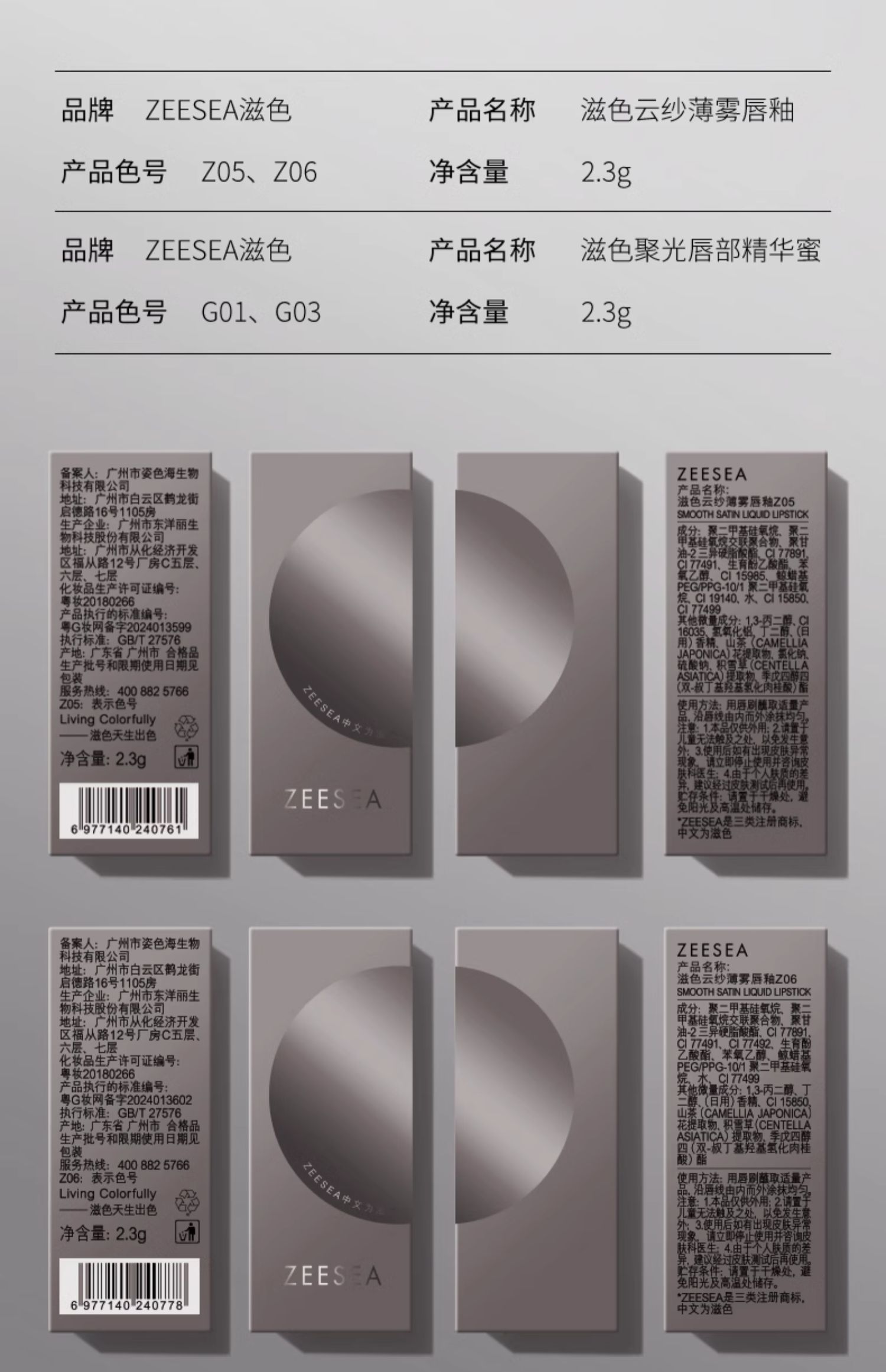 [唇部精华蜜/唇釉]【2件5折 | 满3件送水桶包】ZEESEA滋色聚光唇部精华蜜 [小冰块] 2.3g/滋色云纱薄雾唇釉 [小冰块]