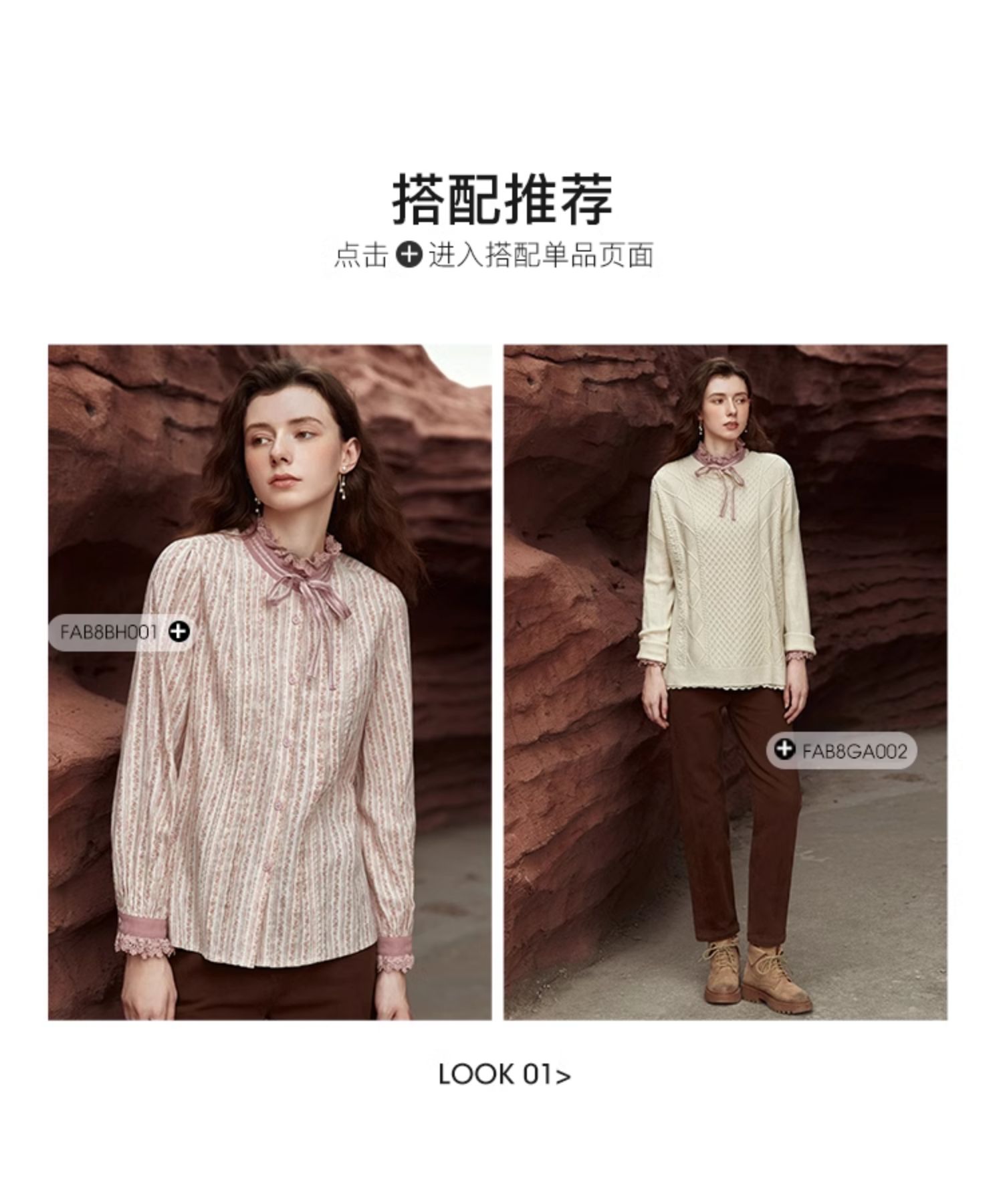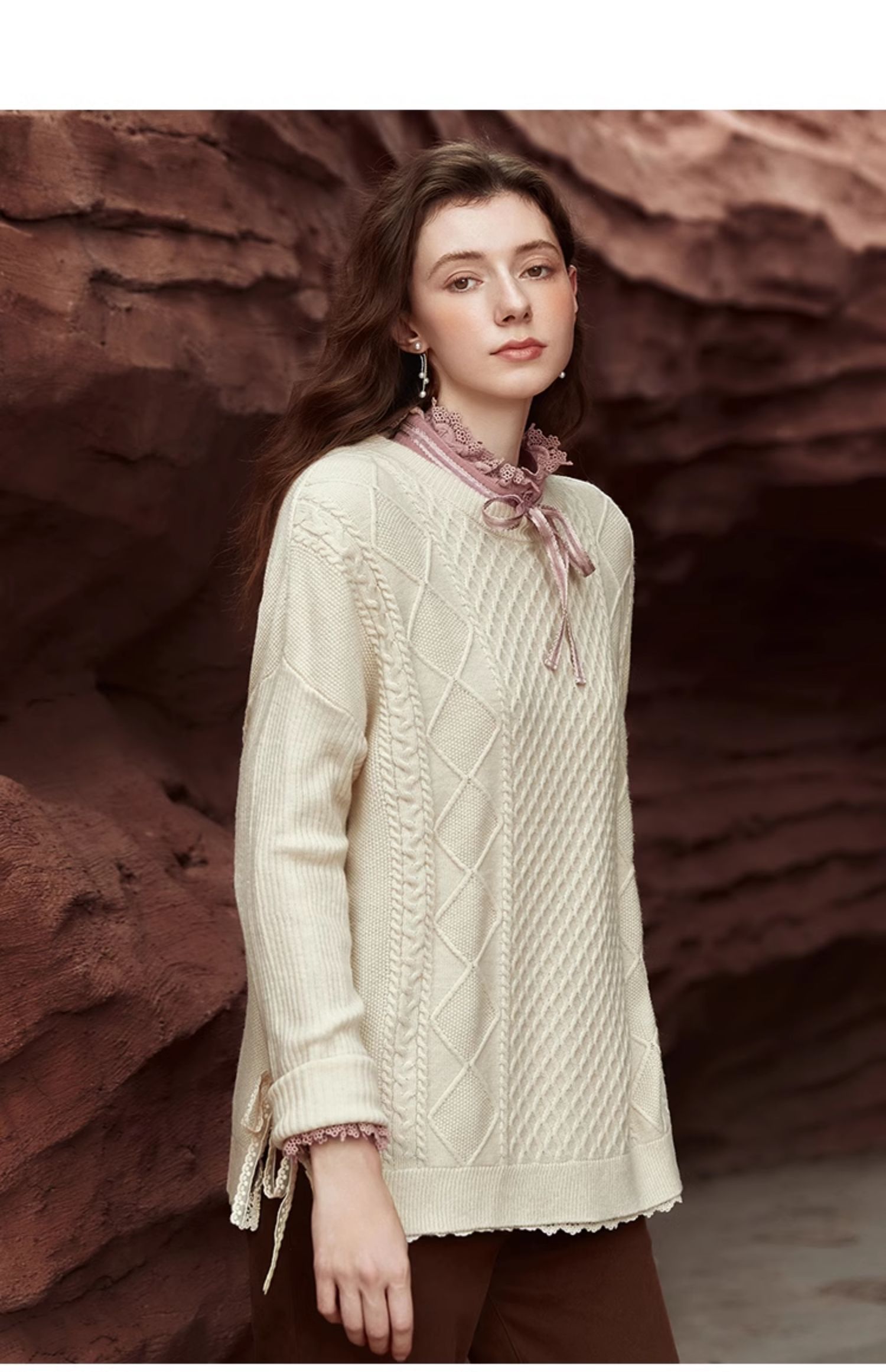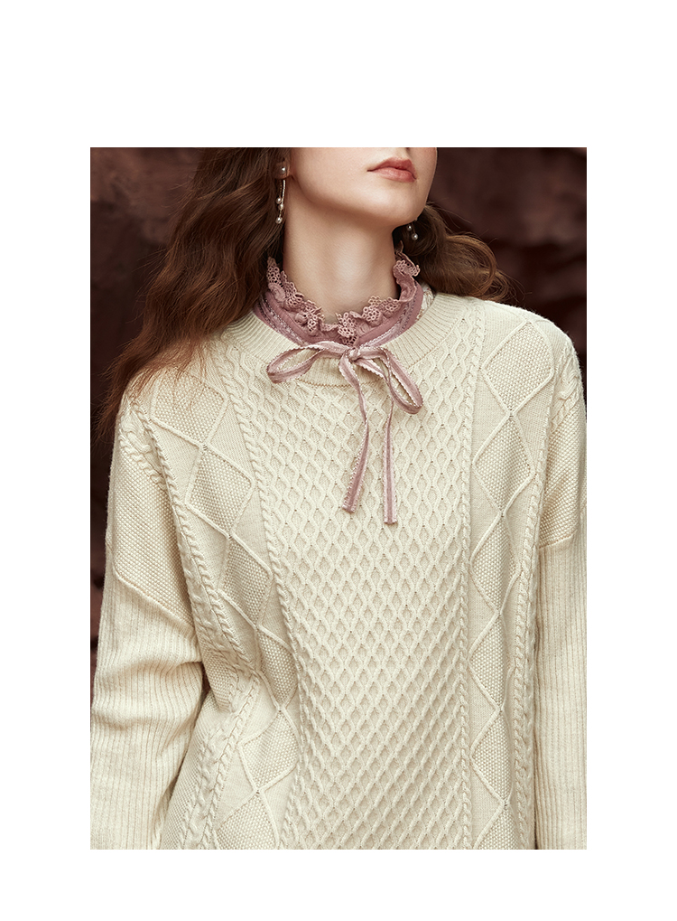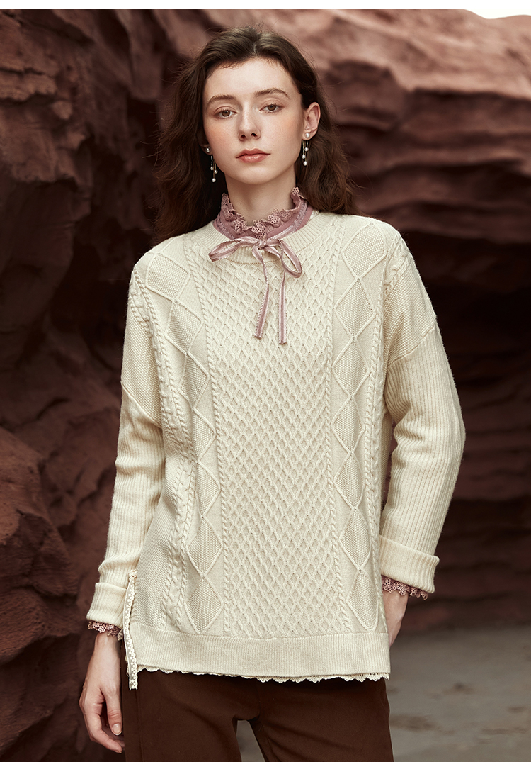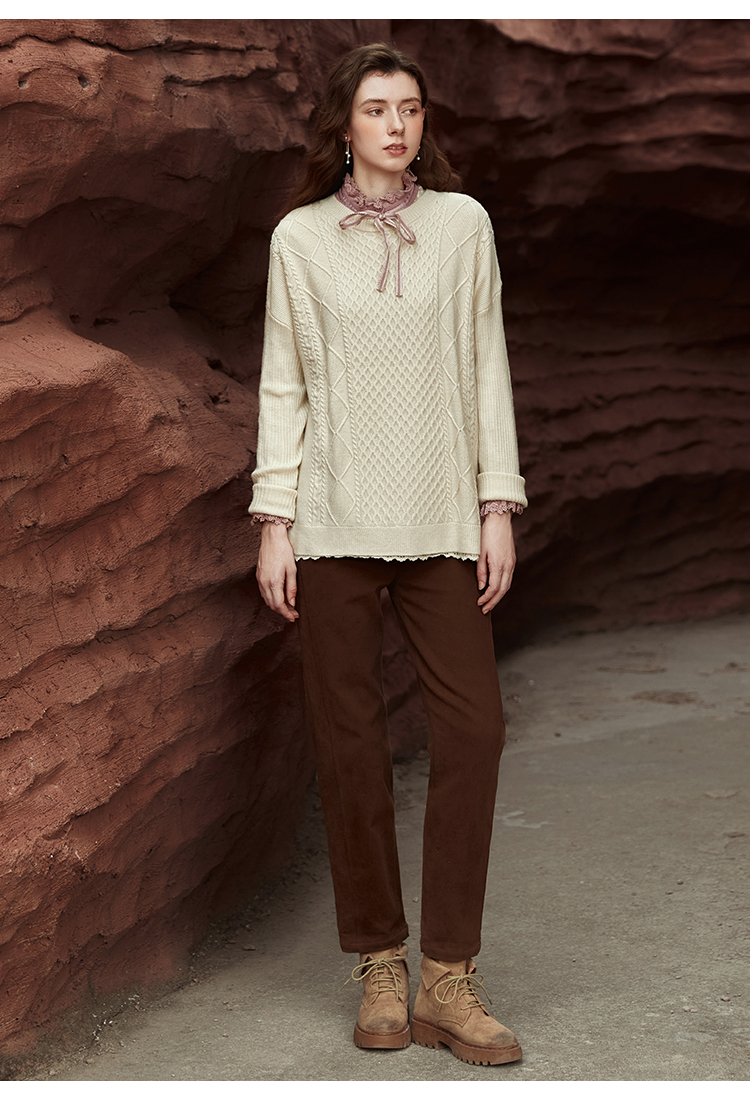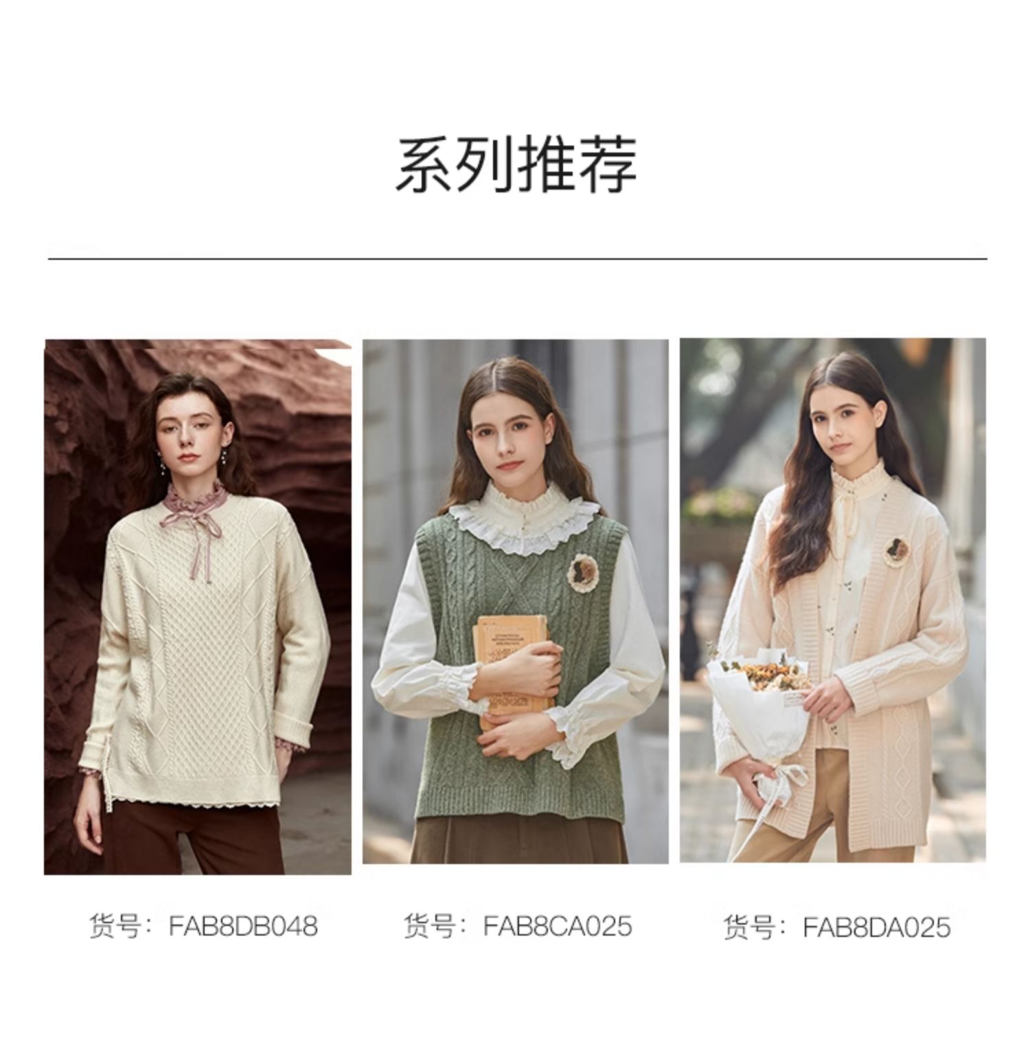 Famecoco范可儿女士绞花套头针织毛衣冬FAB8DB048