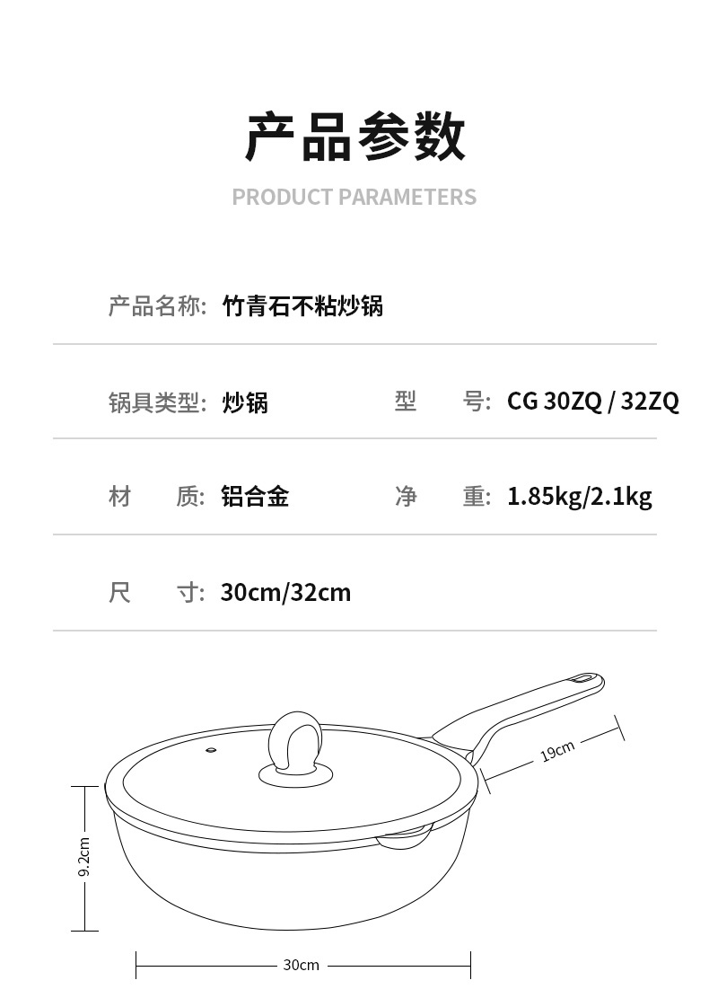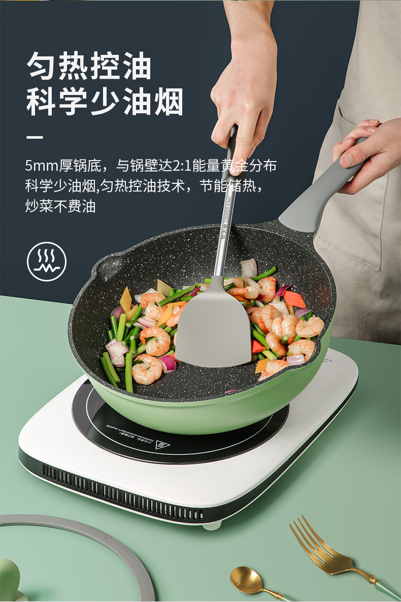炊大皇麦饭石不粘锅炒锅家用不沾炒菜锅平底锅锅具燃气电磁炉通用