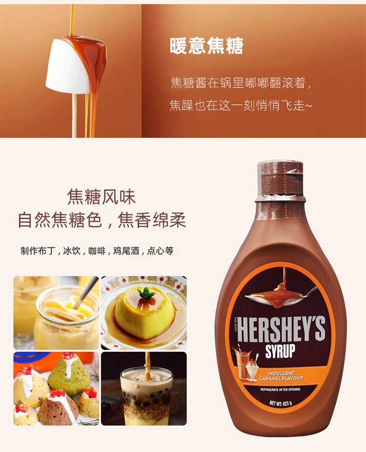 【中欧班列精选】HersheyS好时焦糖糖浆623g 甜品咖啡伴侣烘焙调味酱 原装