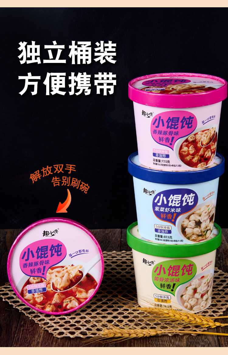 【69.9到手12桶❗️冻干小馄饨】甄选品质原料制作,多种口味可选,简骨浓汤/紫菜虾米/香辣豚骨,方便速食云吞混沌,免煮冲泡桶装整箱,宿舍早晚餐夜宵L