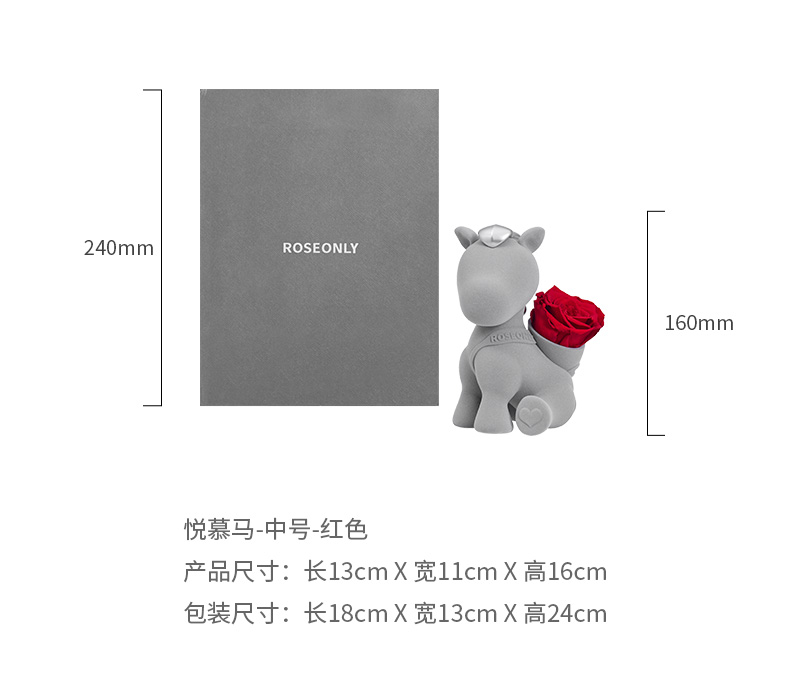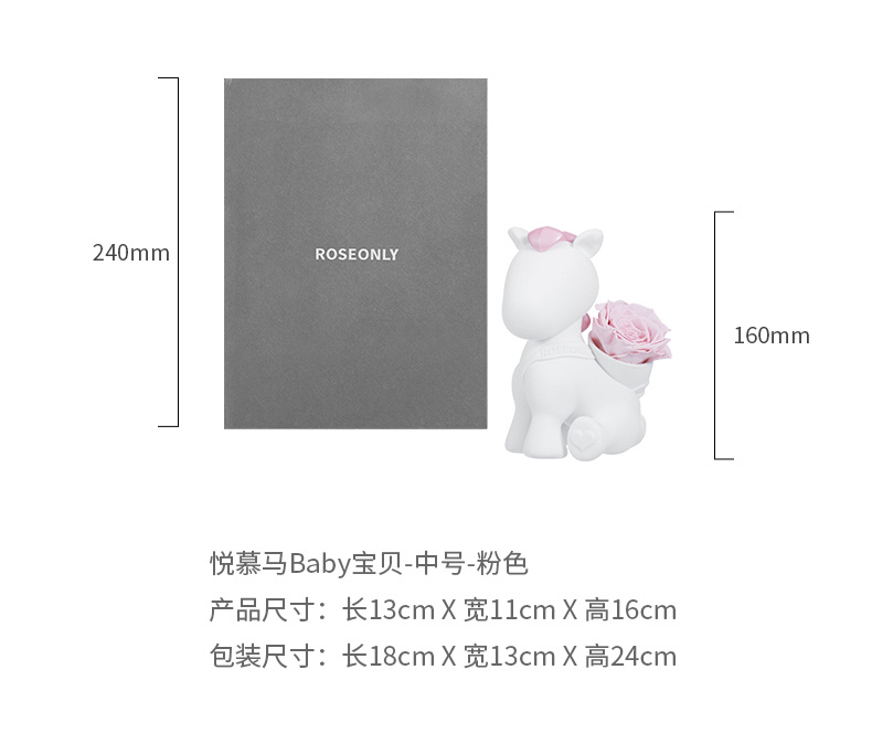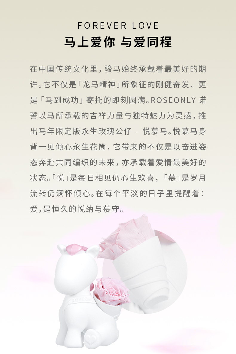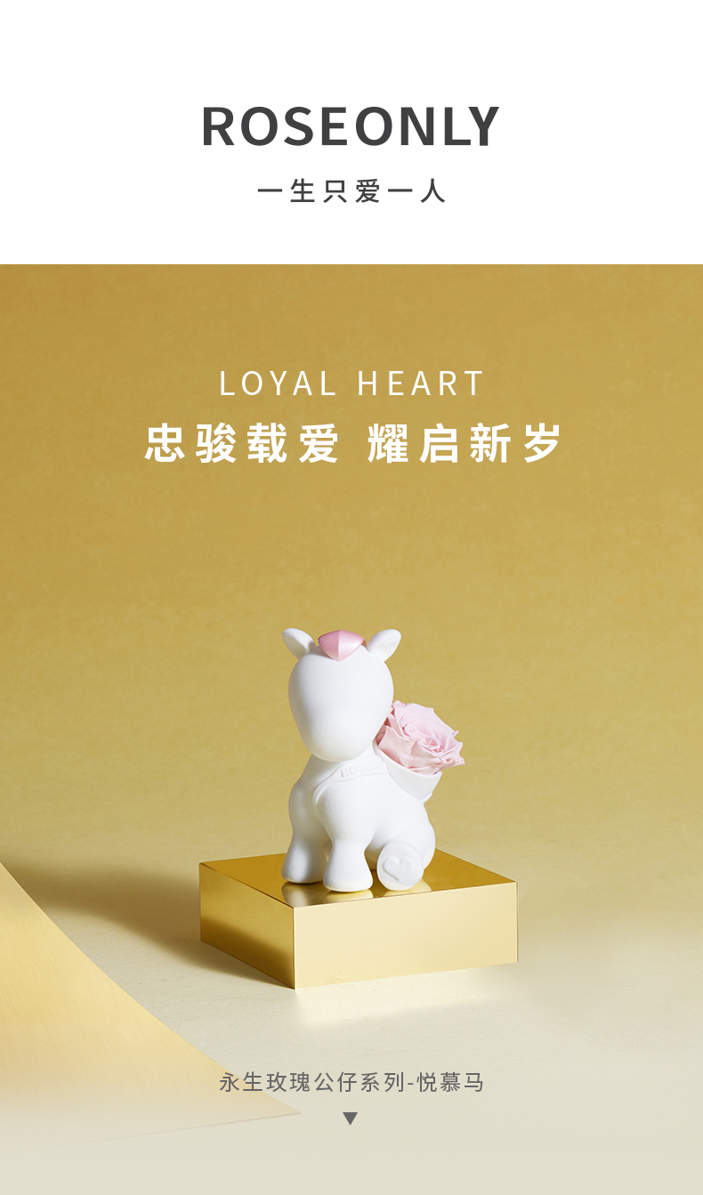 【马年爱礼】ROSEONLY诺誓 永生玫瑰 公仔系列 生肖特别款 悦慕马 粉色 金色 送朋友 送闺蜜