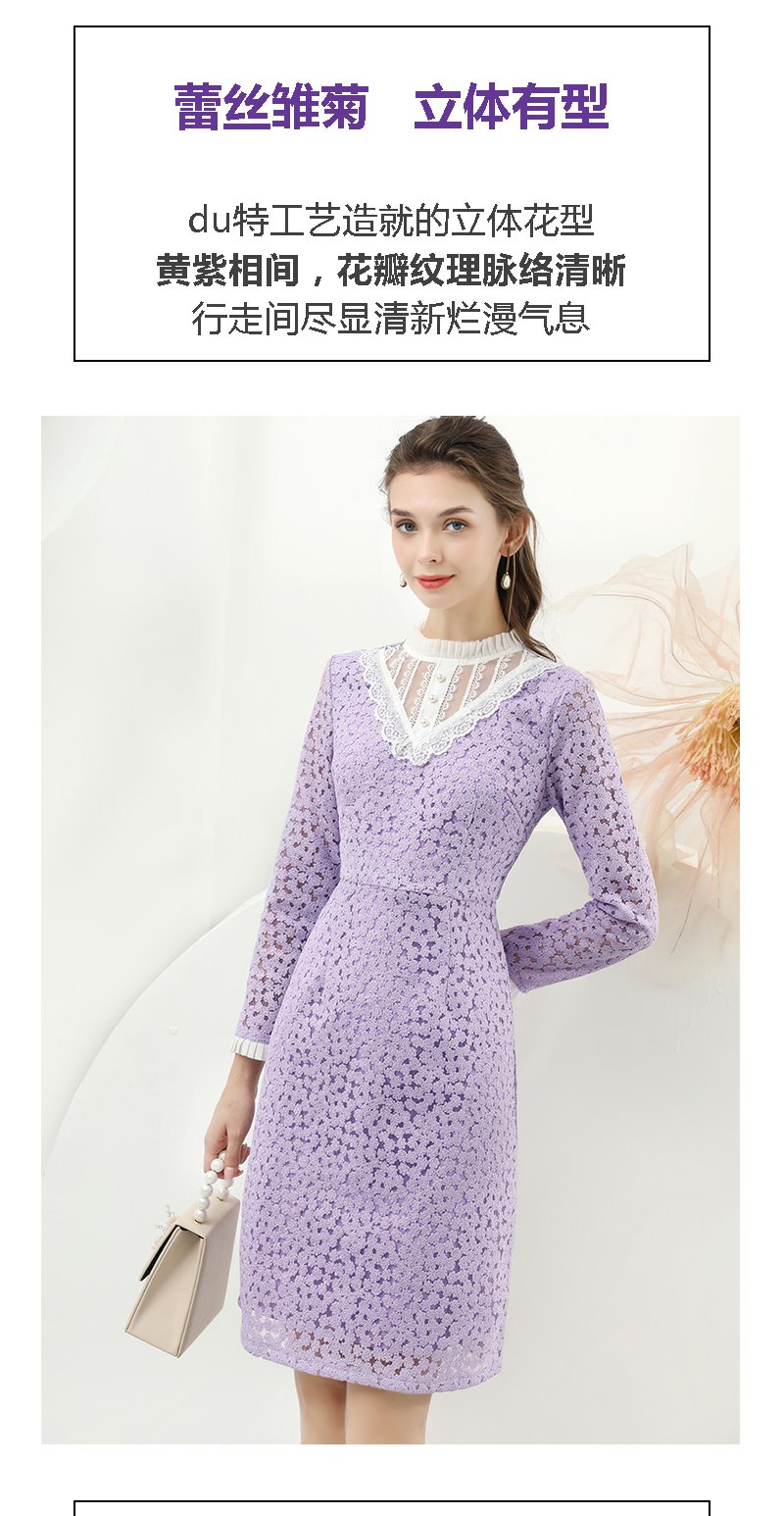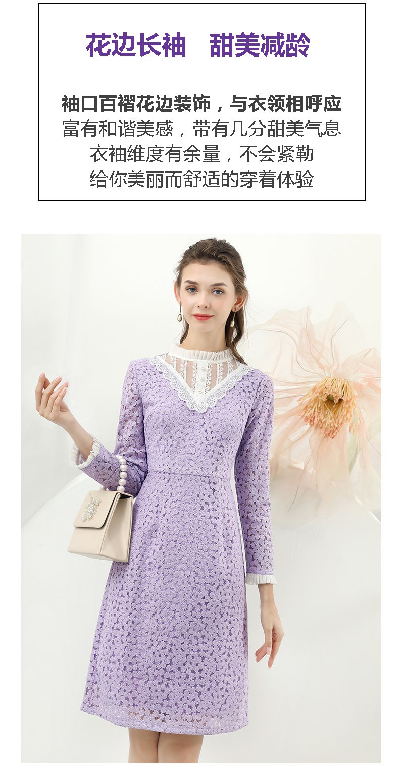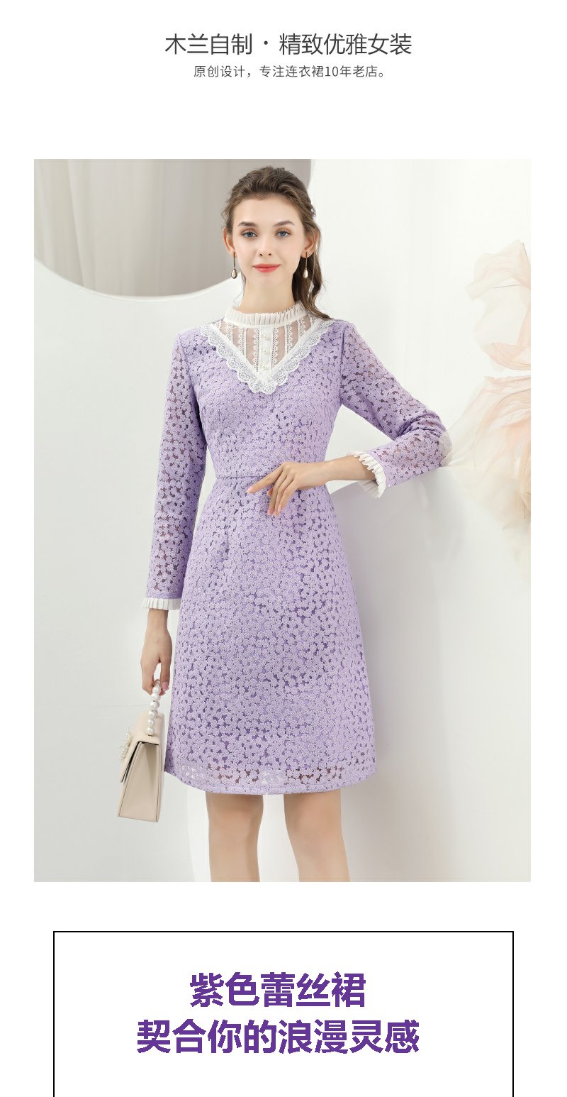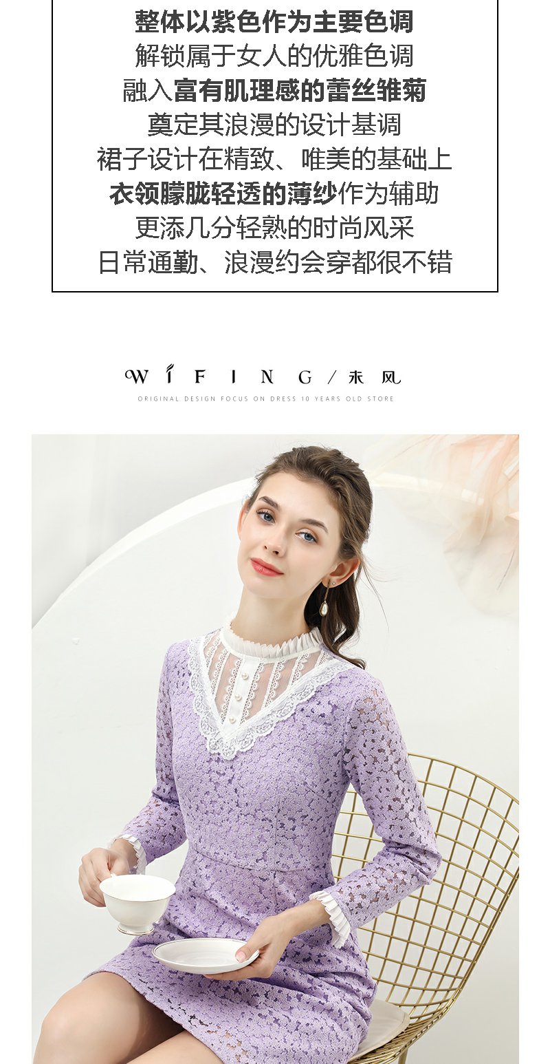 未风紫色蕾丝连衣裙女秋2024年秋季新款女装气质显瘦长袖减龄裙子