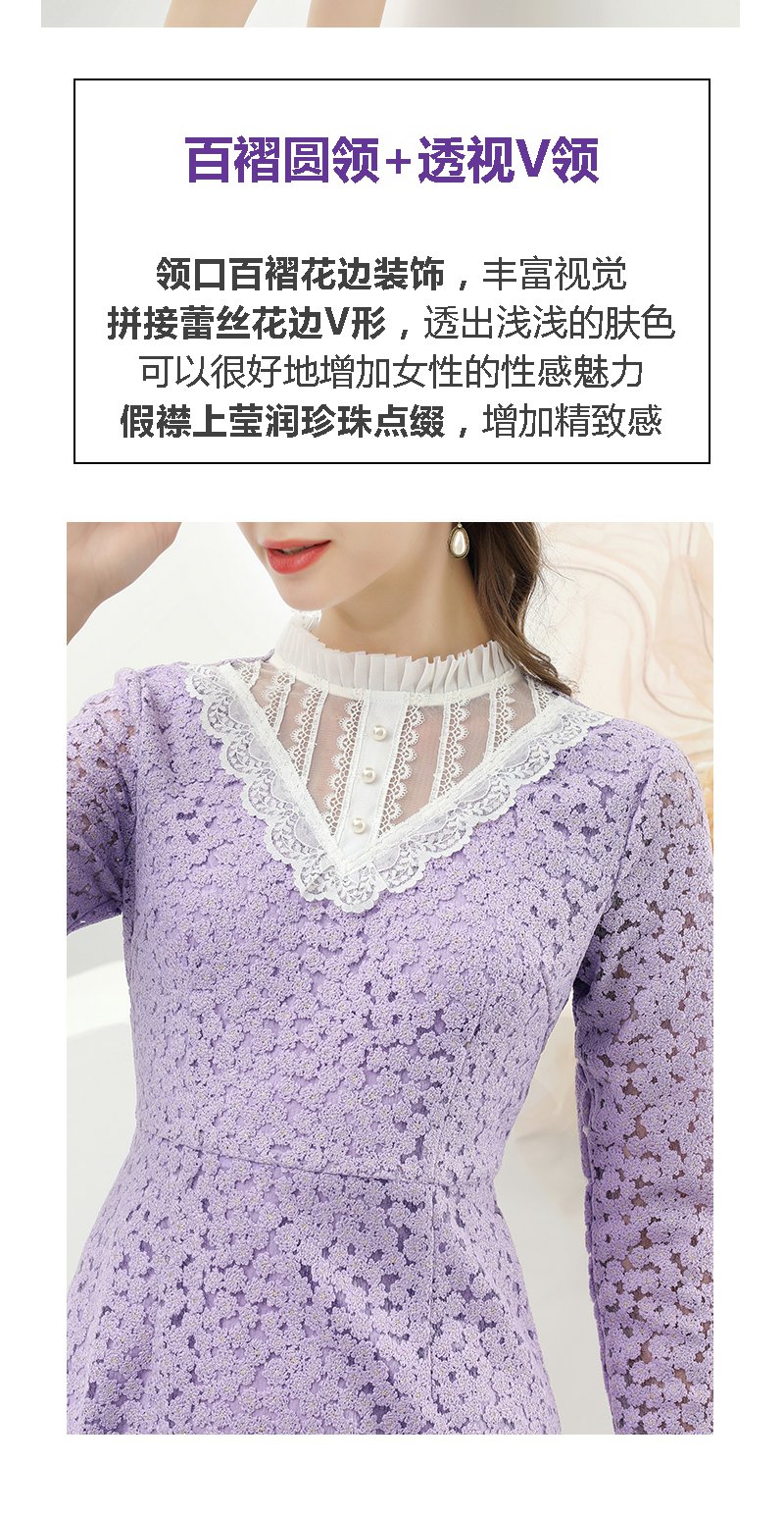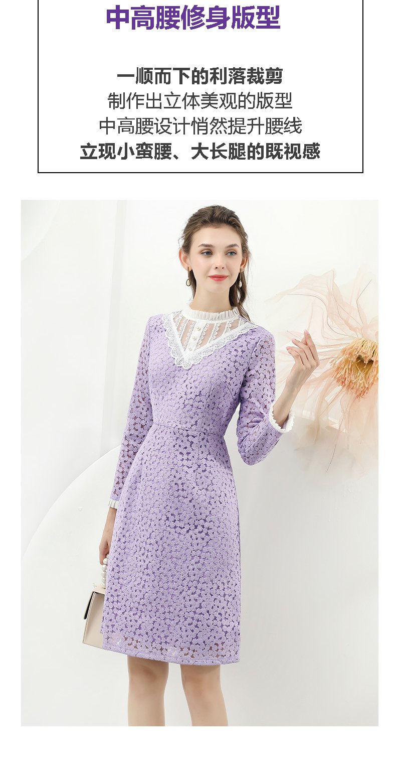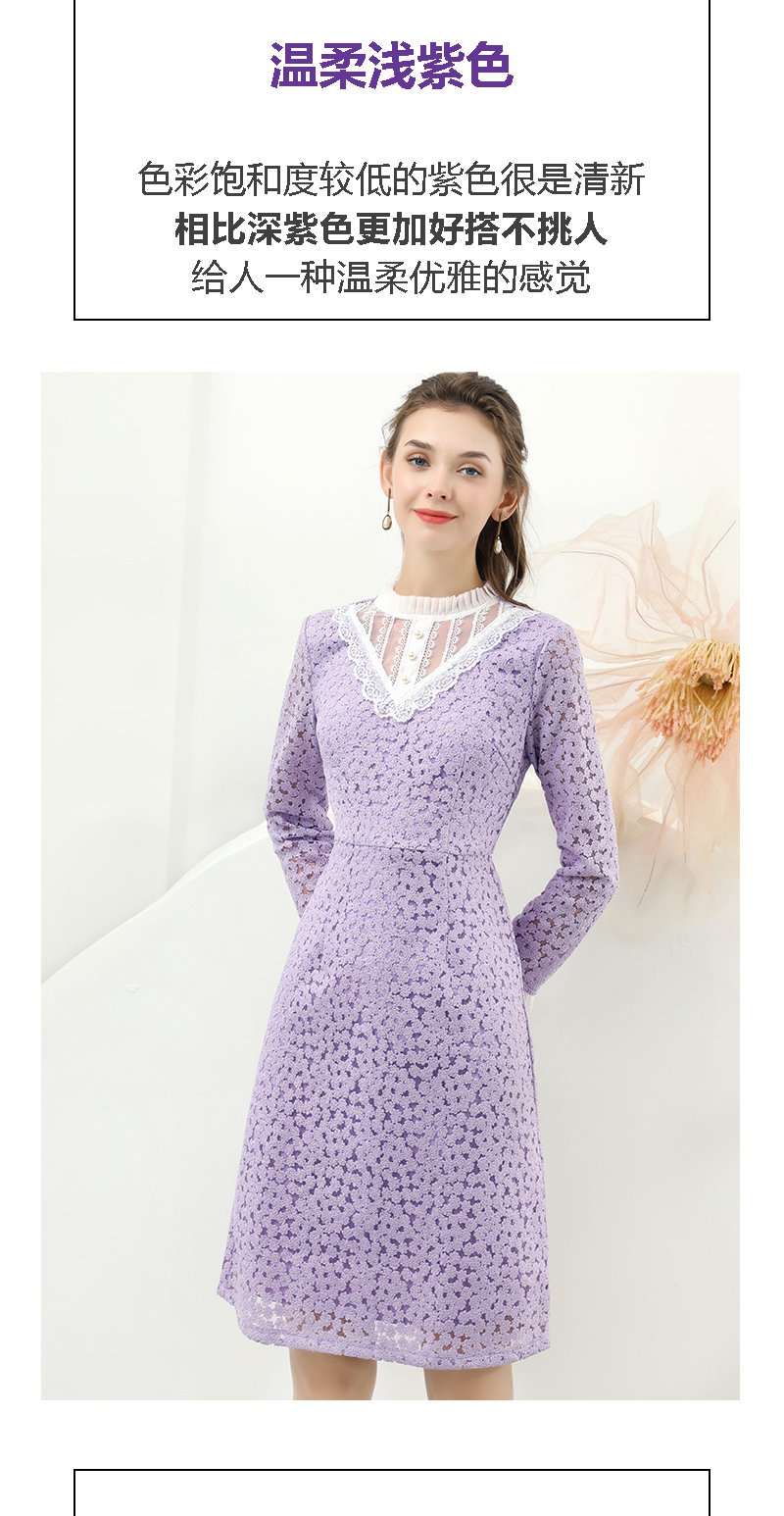 未风紫色蕾丝连衣裙女秋2024年秋季新款女装气质显瘦长袖减龄裙子
