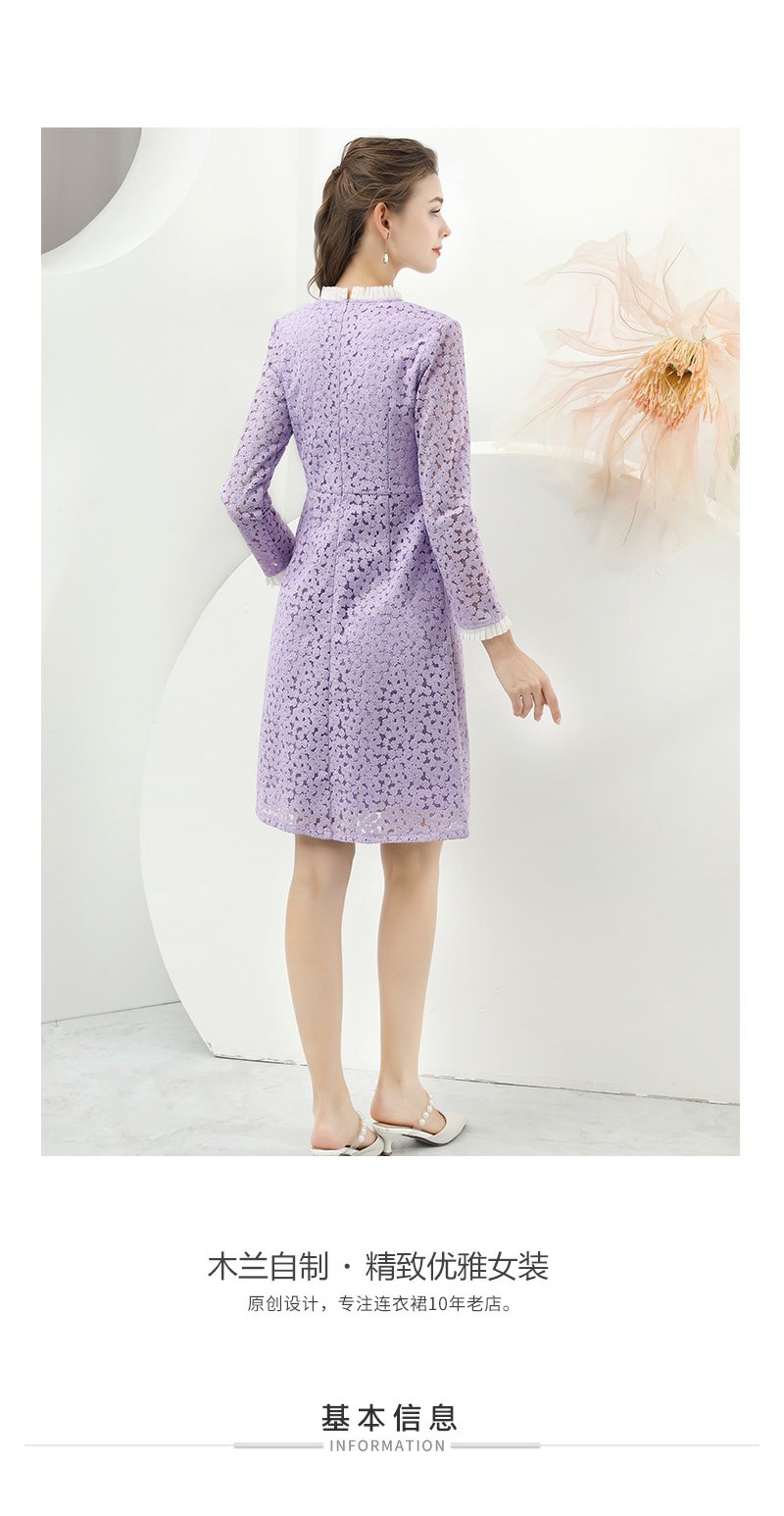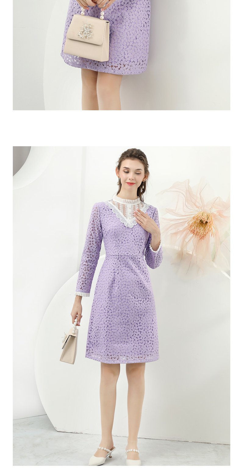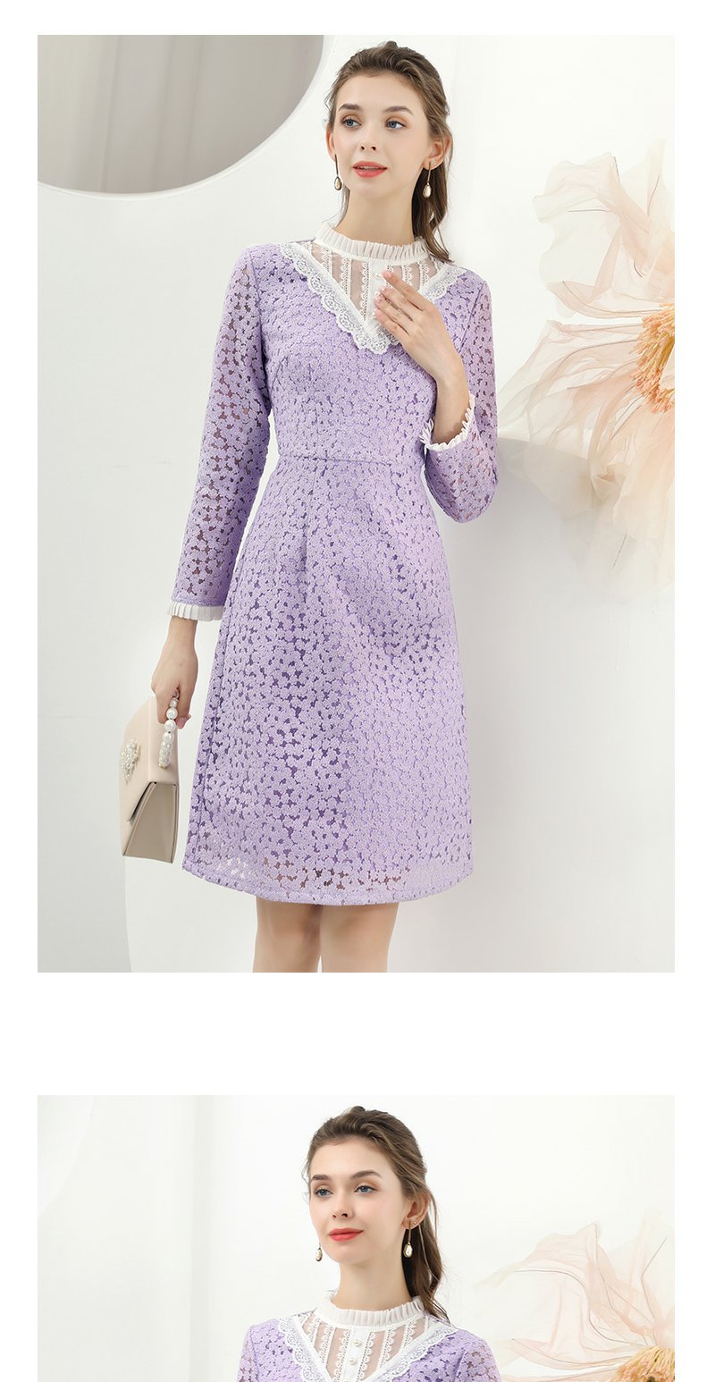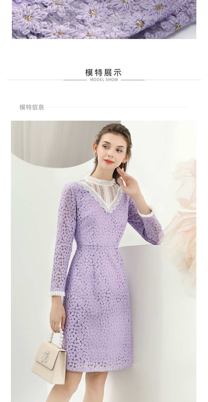 未风紫色蕾丝连衣裙女秋2024年秋季新款女装气质显瘦长袖减龄裙子