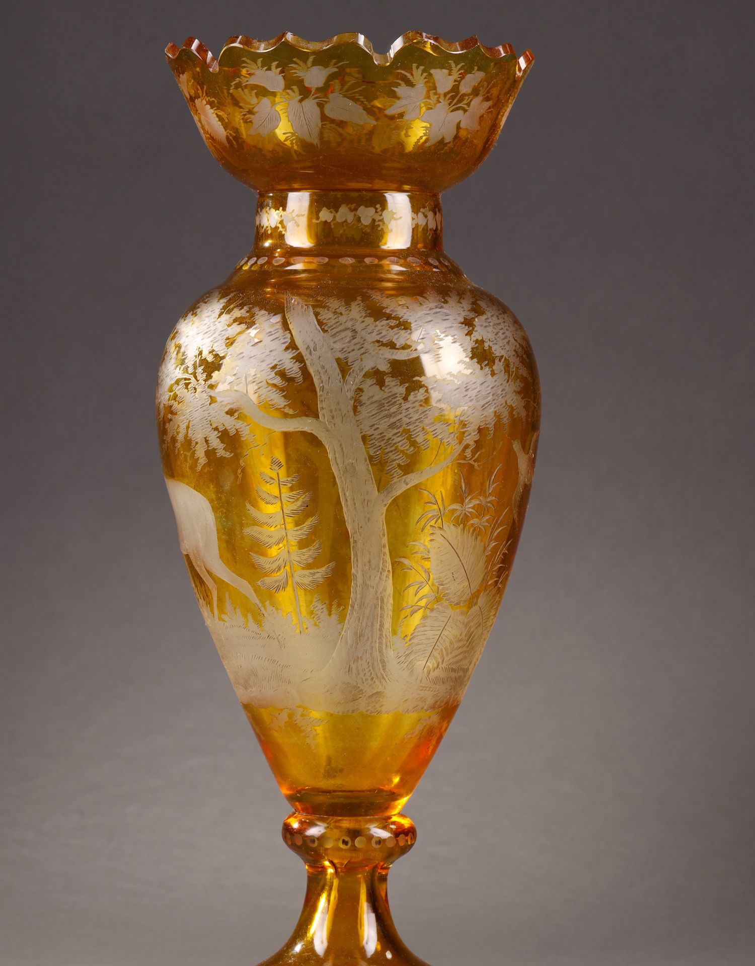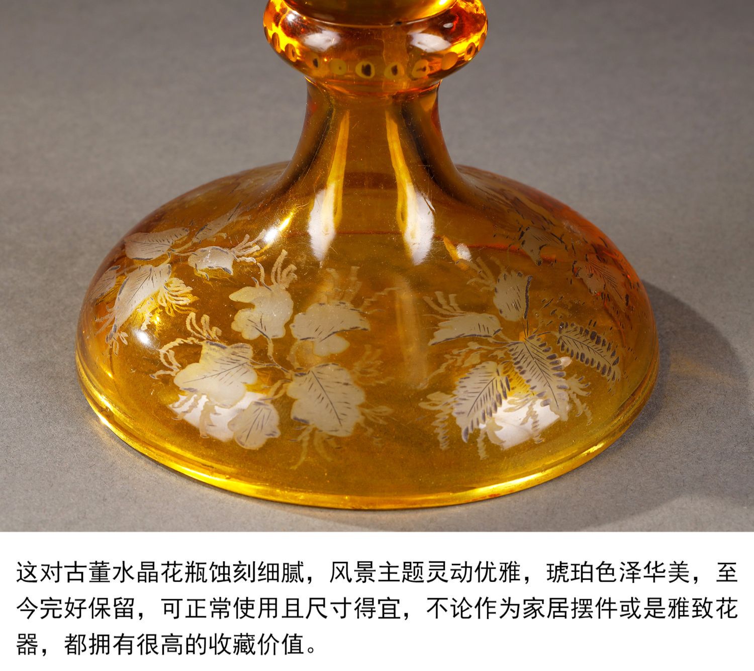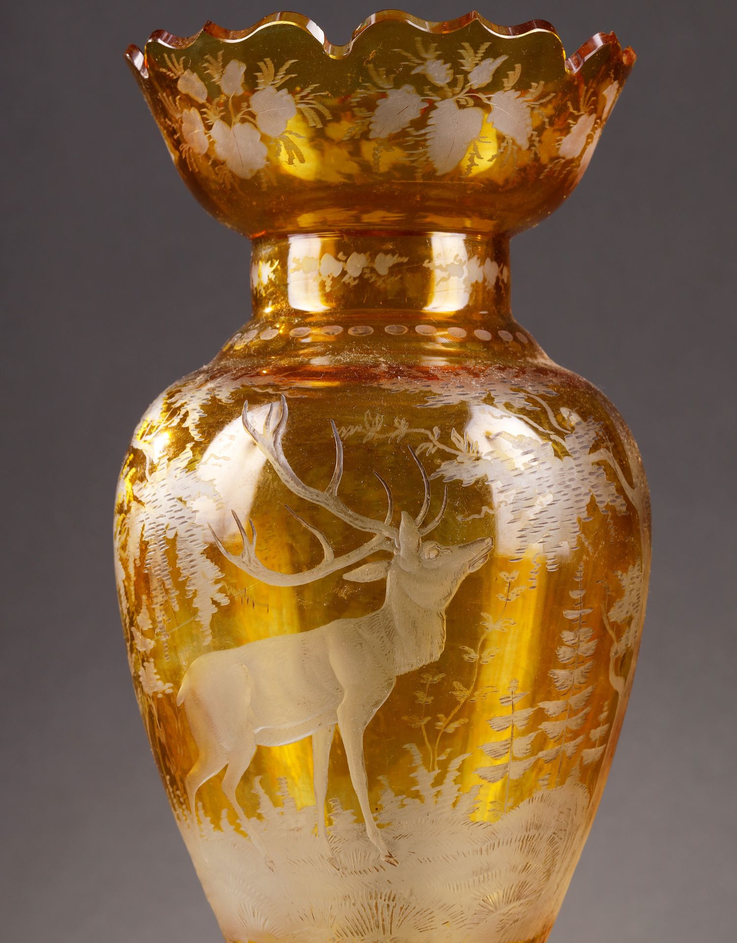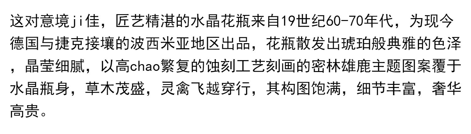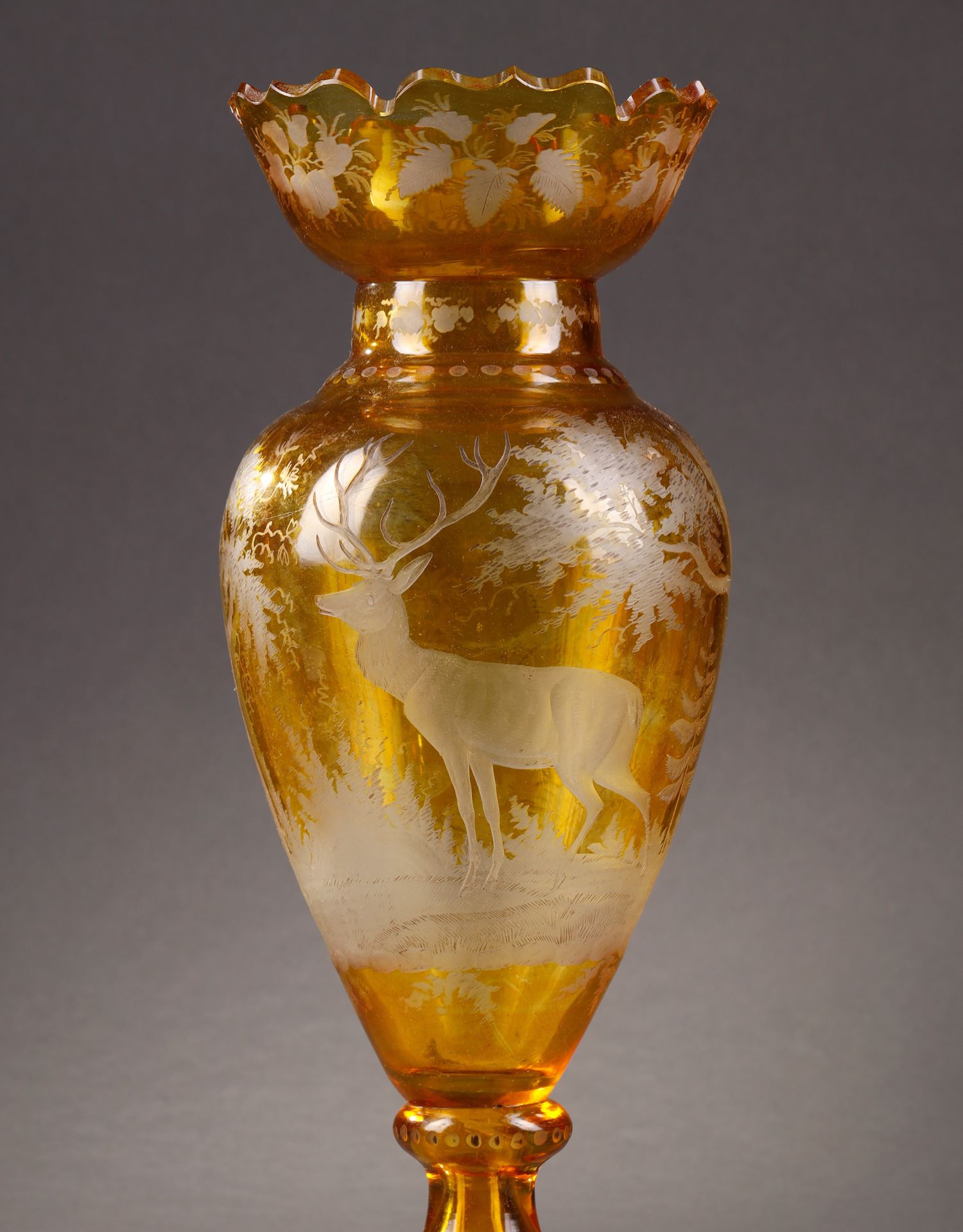 独角鹿西洋古董波西米亚地区林中鹿主题琥珀色波西米亚水晶花瓶
