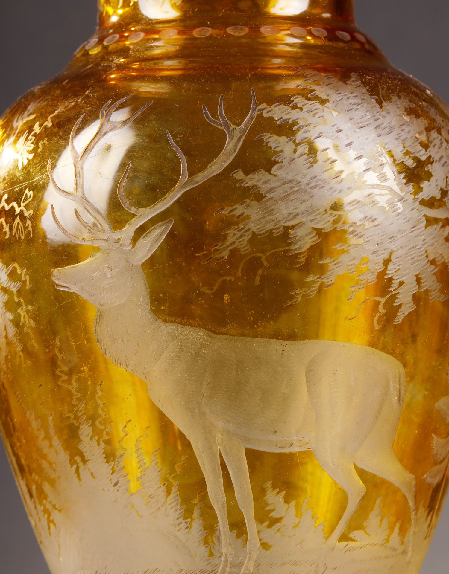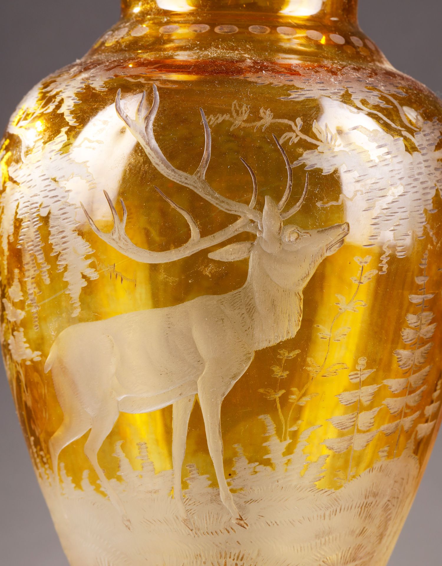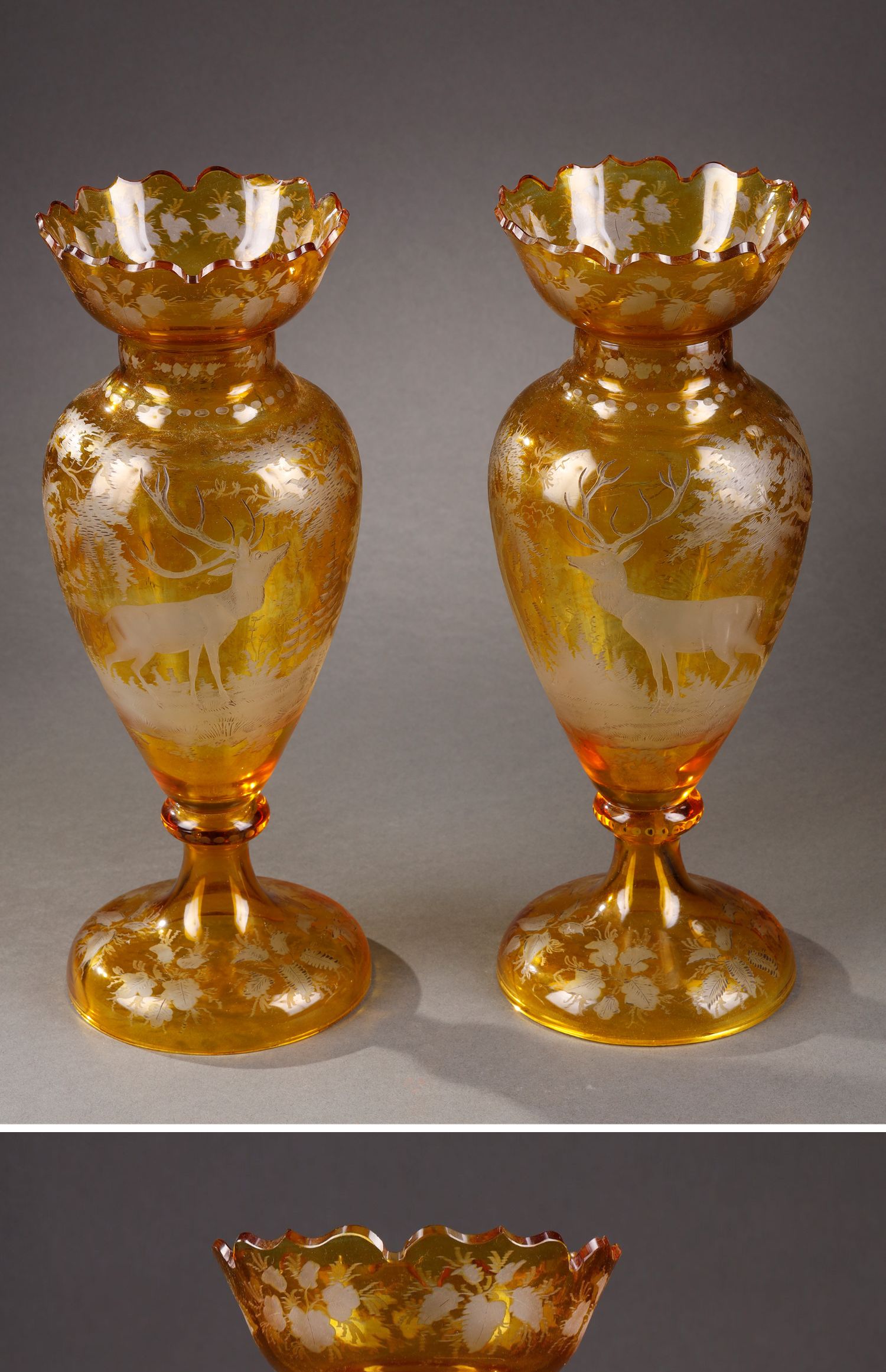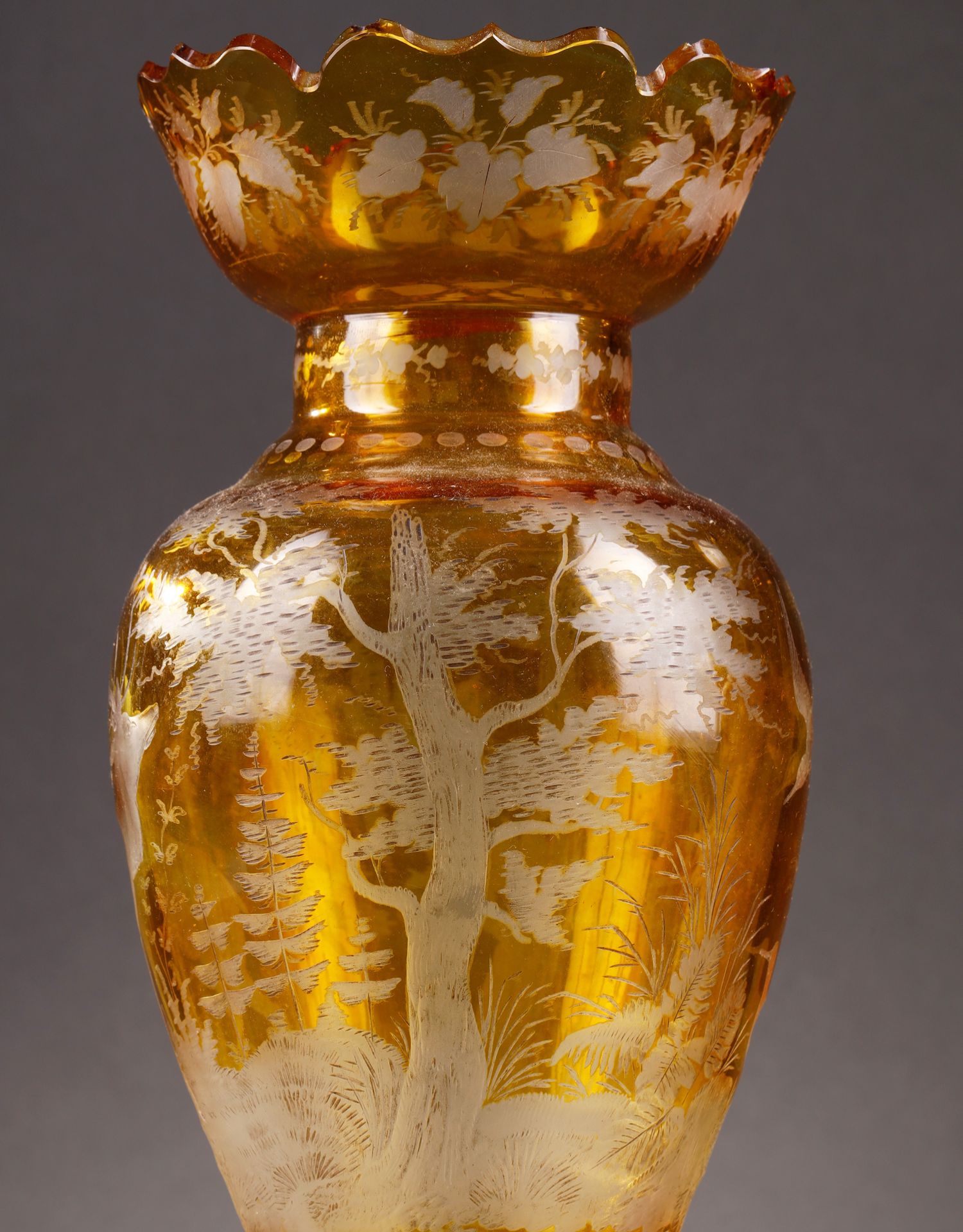 独角鹿西洋古董波西米亚地区林中鹿主题琥珀色波西米亚水晶花瓶