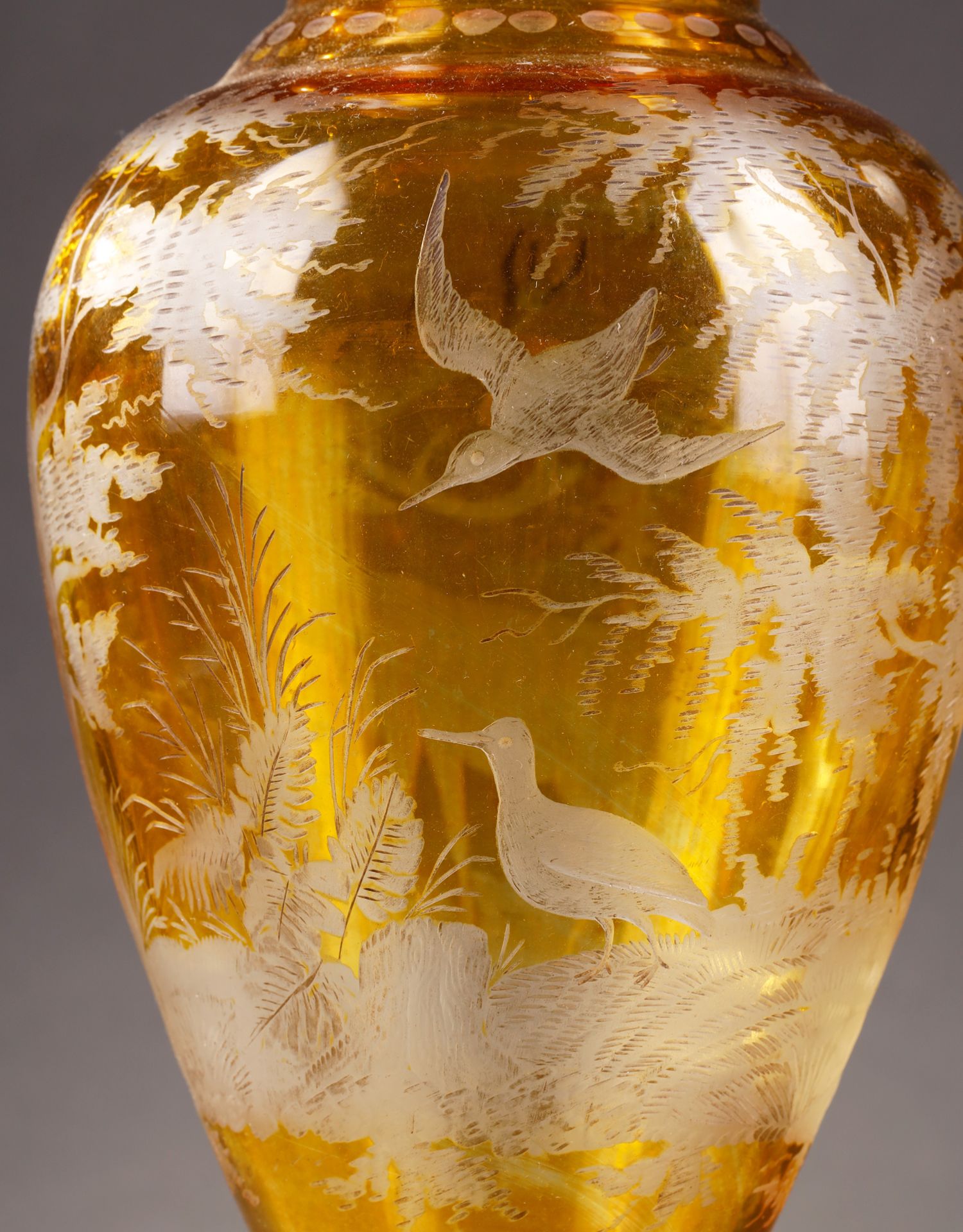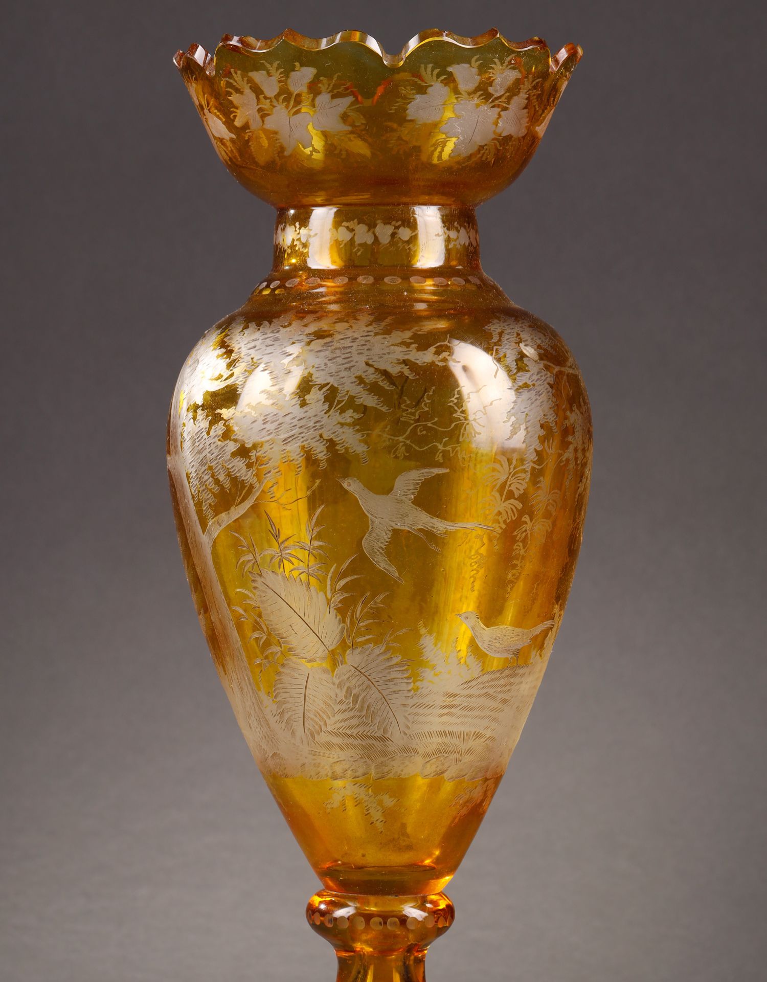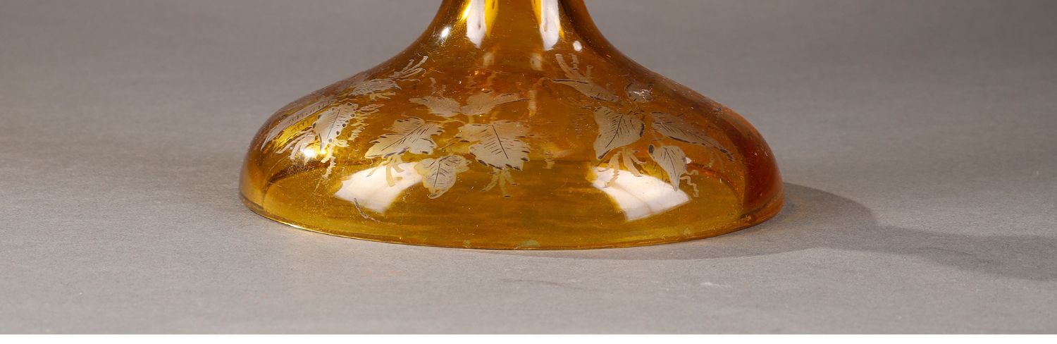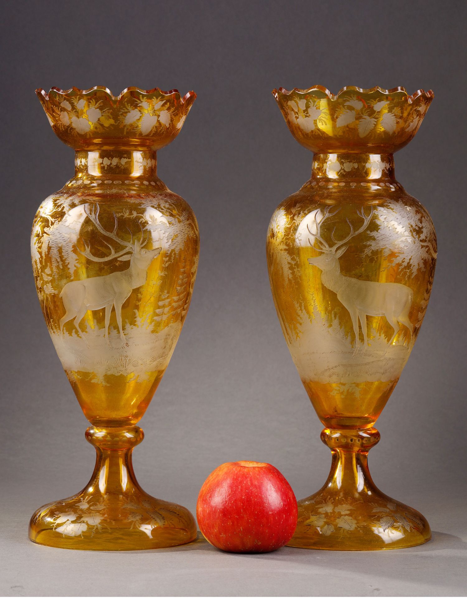 独角鹿西洋古董波西米亚地区林中鹿主题琥珀色波西米亚水晶花瓶
