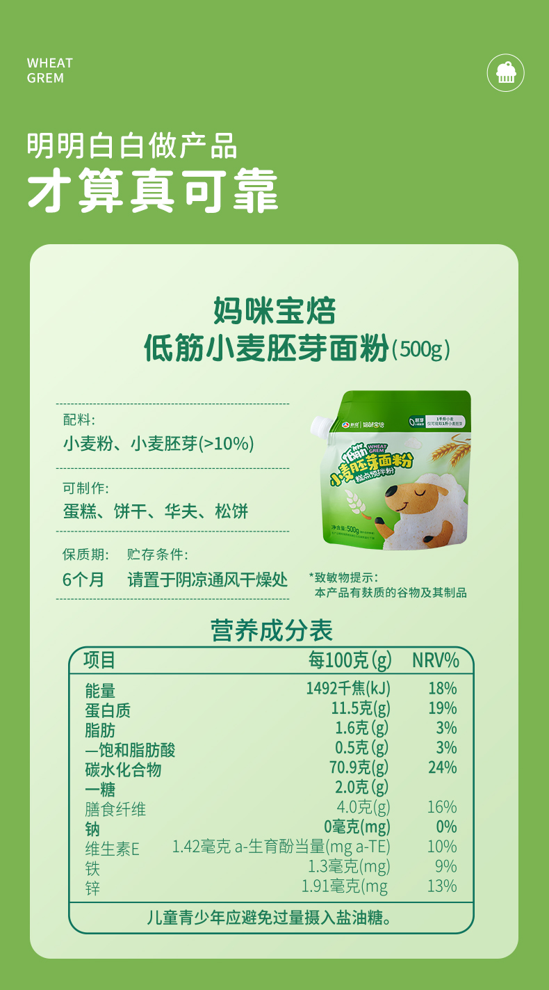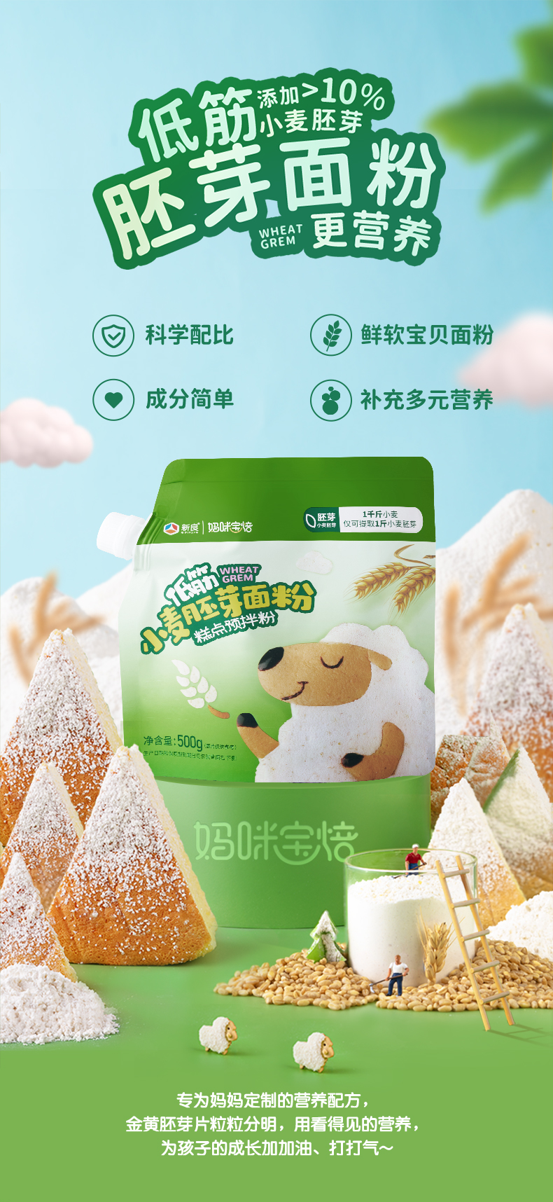 新良妈咪宝焙胚芽自发粉500g/1kg紫薯味婴儿胚芽面粉宝宝多口味果蔬自发面粉