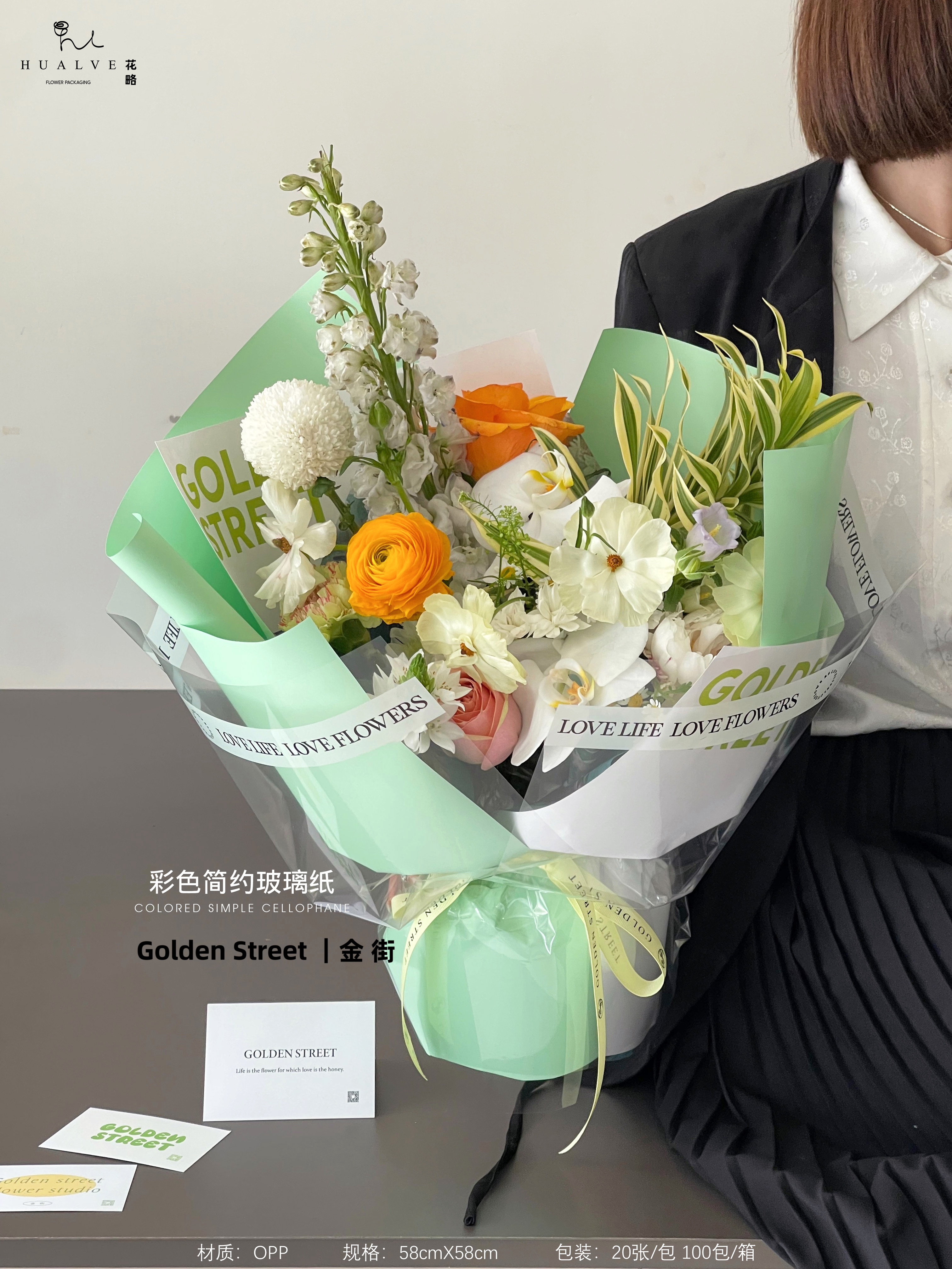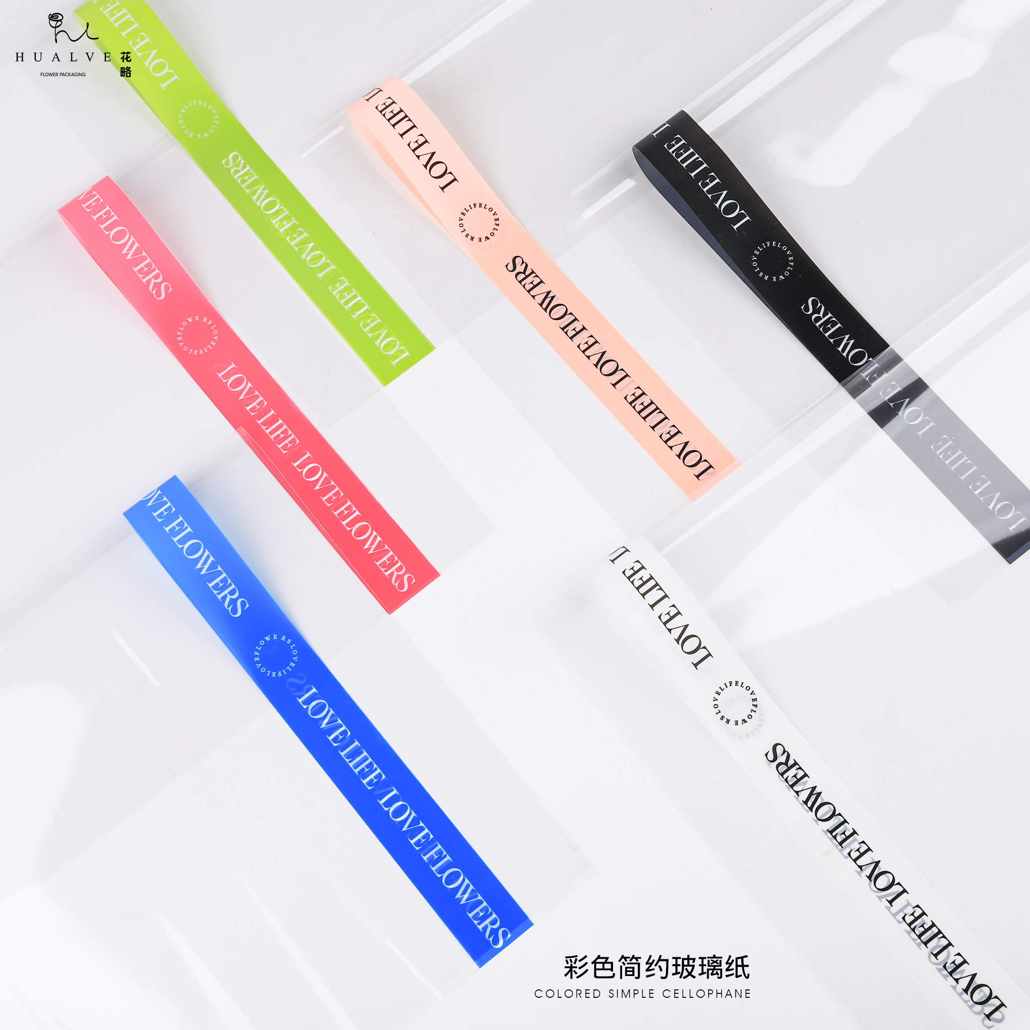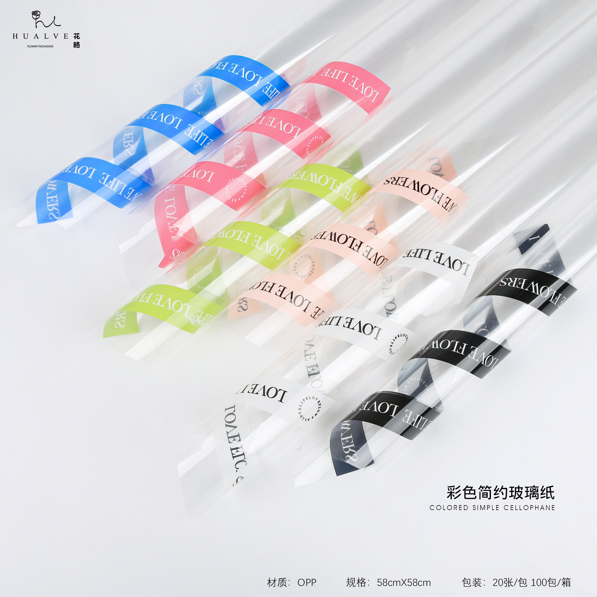 B1【白边英文玻璃纸】彩色简约英文玻璃纸(10码/卷)