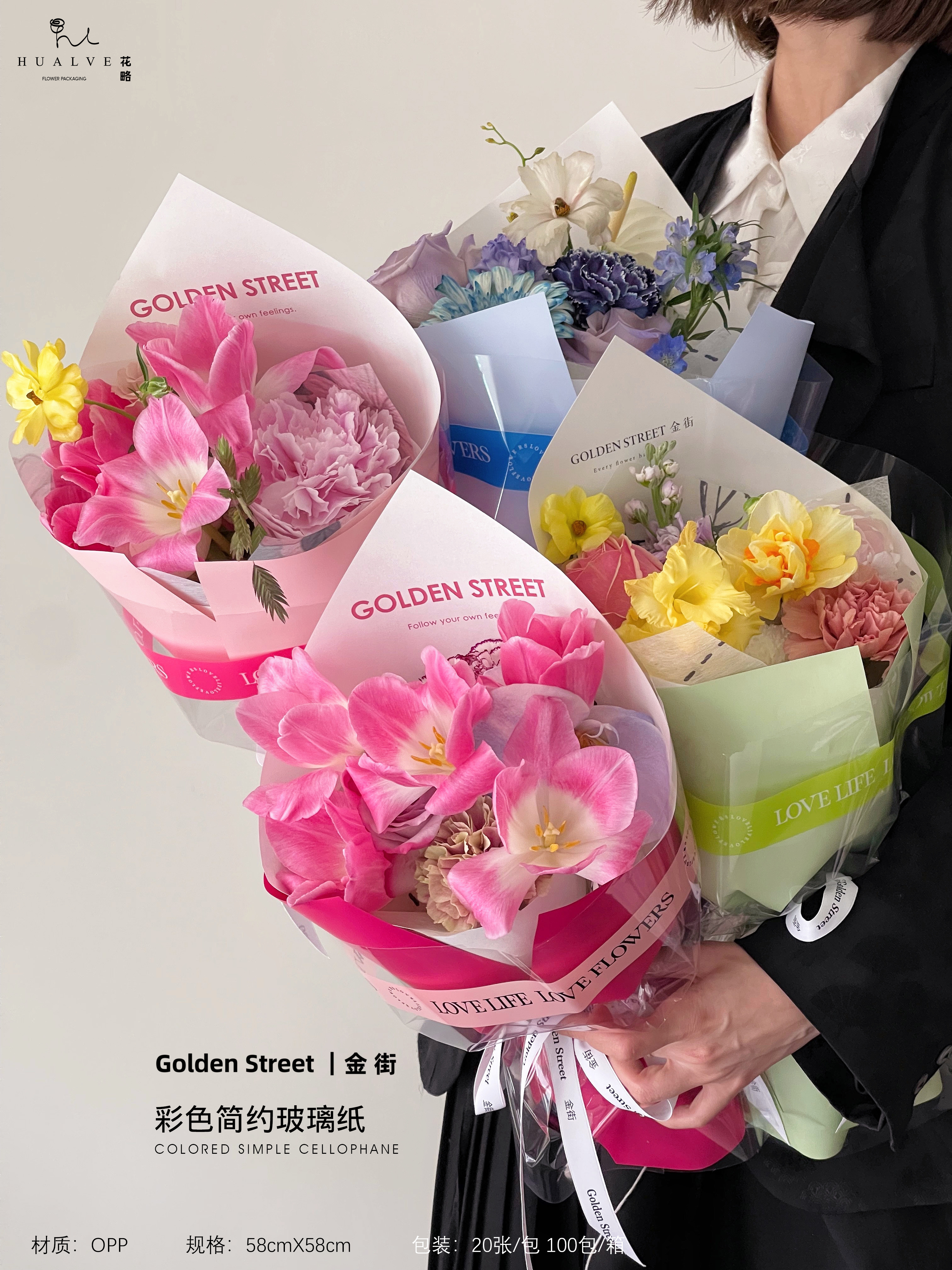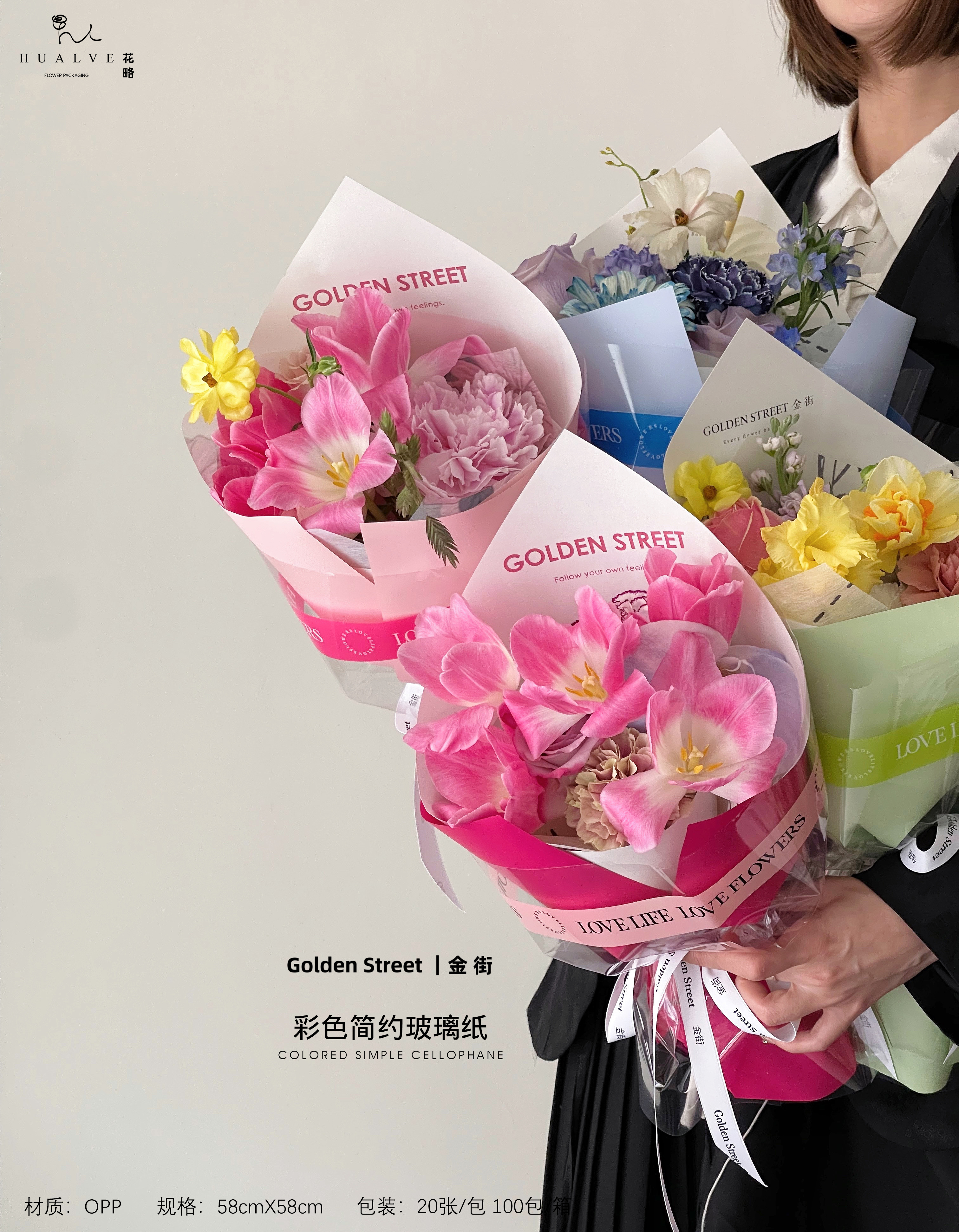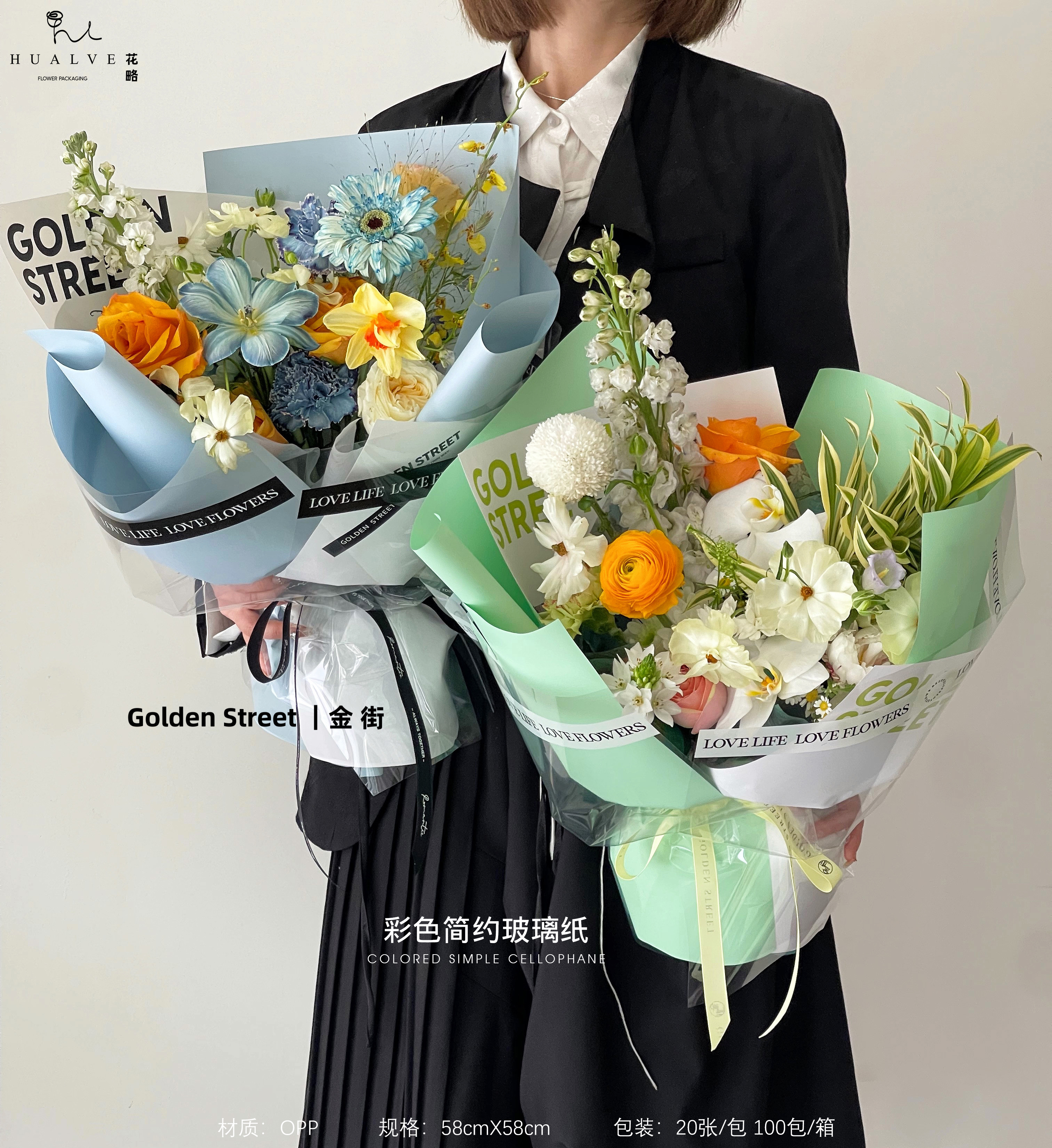 B1【白边英文玻璃纸】彩色简约英文玻璃纸(10码/卷)