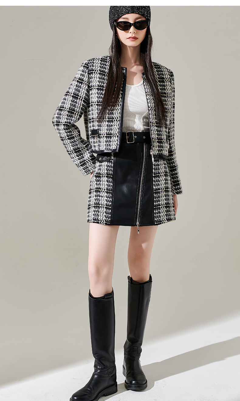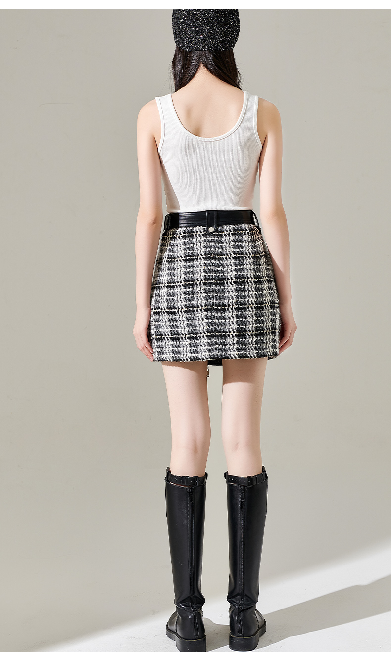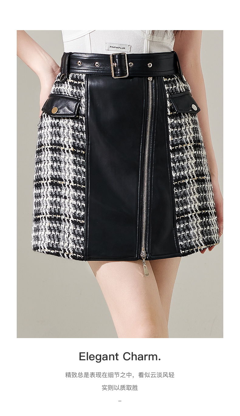 芳外新款设计感甜酷辣妹拼接腰带格纹A字裙半身短裙8I23DI1582