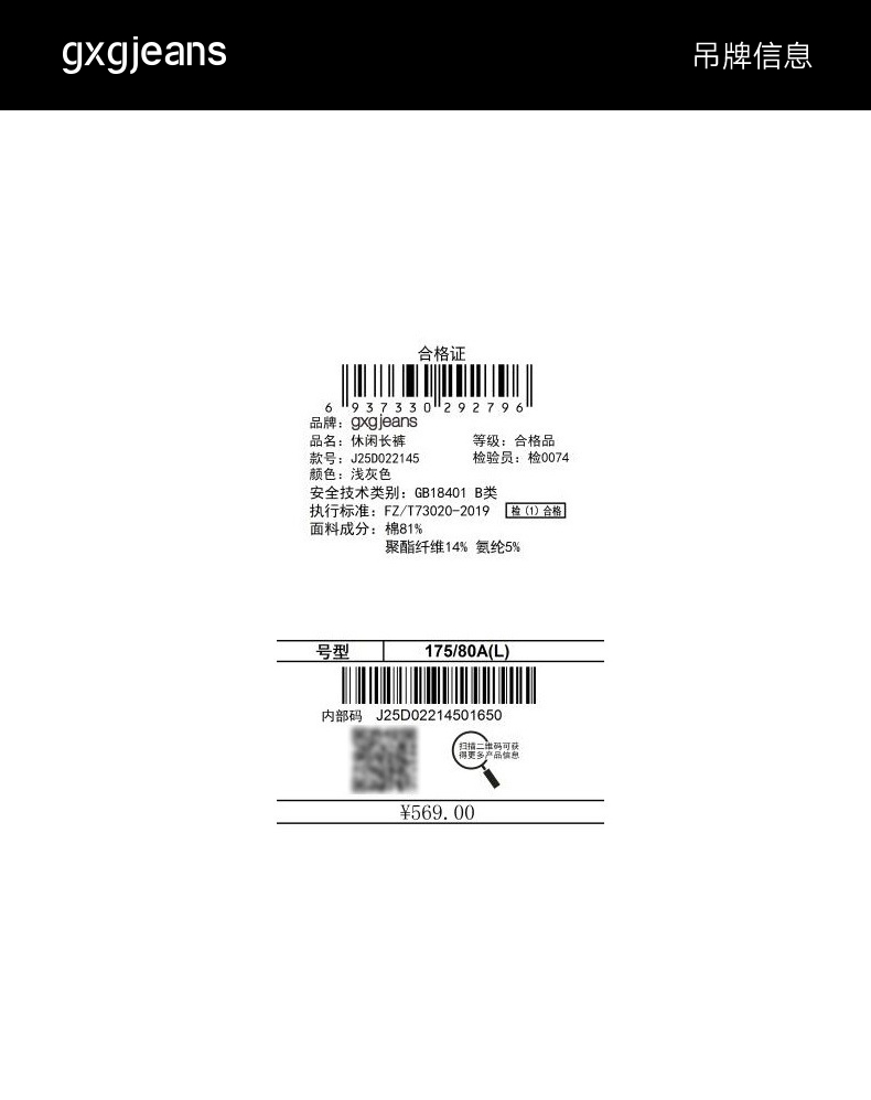 gxg.jeans男装 多色分割设计休闲基础宽松休闲长裤男士 25夏热卖