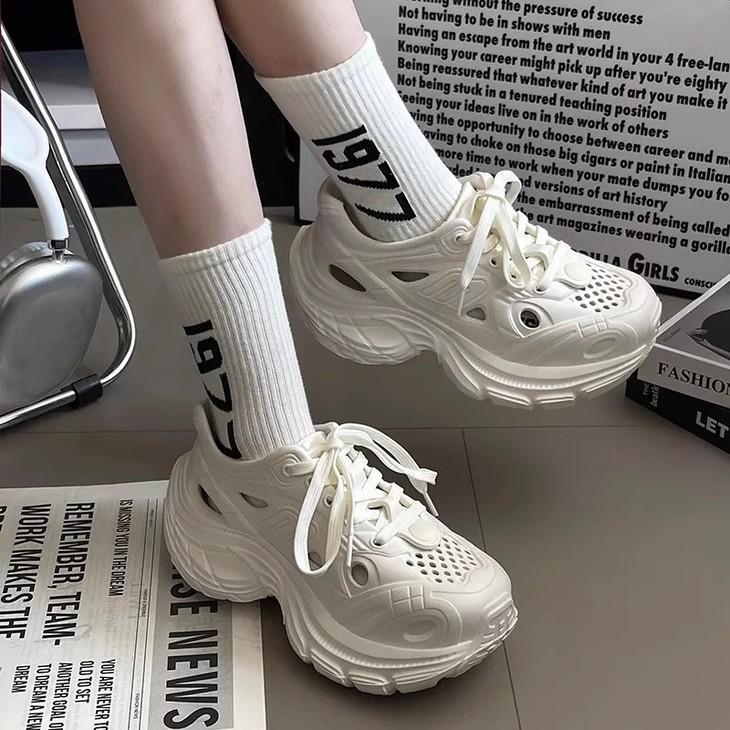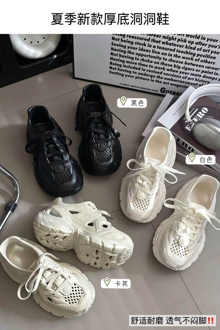 夏日必备👣厚底洞洞鞋👟