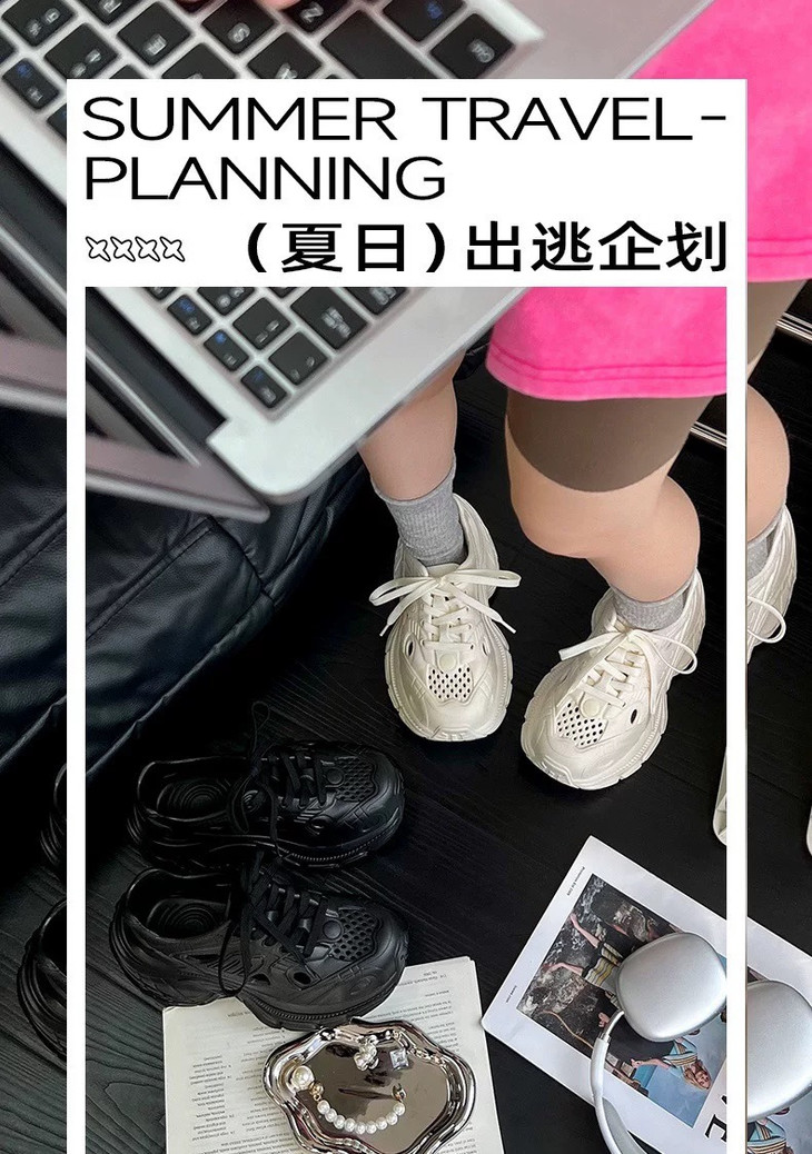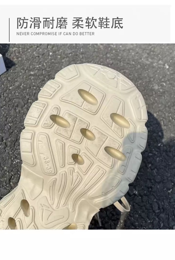 👟包头设计安全感拉满,脚趾再也不怕磕磕碰碰,贴心呵护你的每一步。同时还巧妙提升了时尚感,让它告别普通拖鞋的单调,兼具颜值与实用性。厚底老爹鞋设计,瞬间拉长腿部线条,秒变大长腿。小个子姐妹闭眼冲,视觉上增高显瘦,轻松拥有超模同款比例🦵