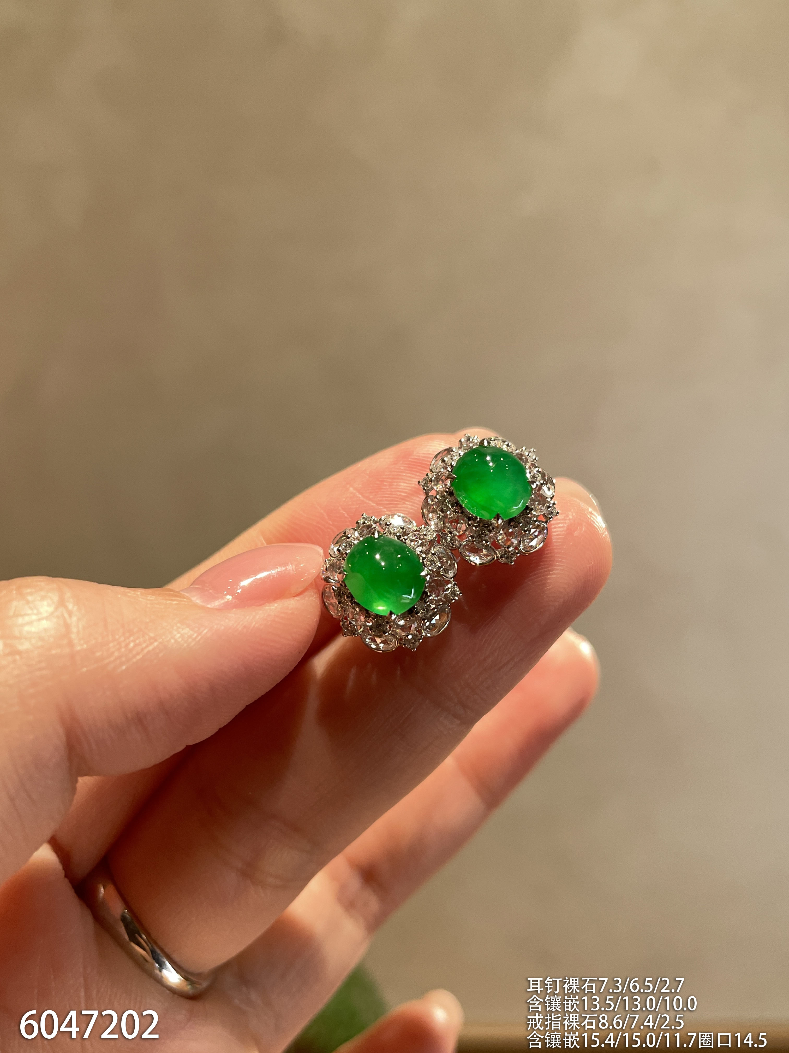 高冰种浓艳绿蛋面耳坠【6025704】具体价格微信咨询