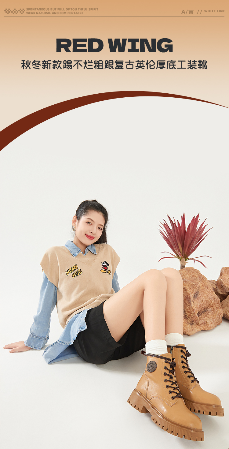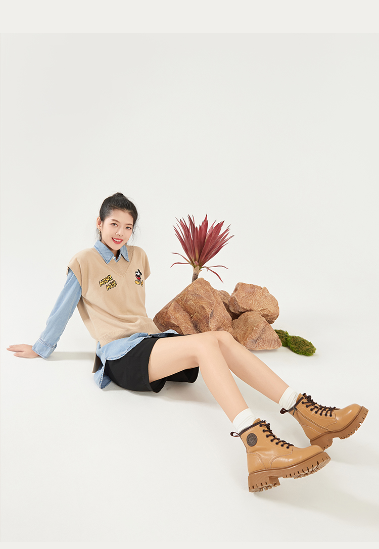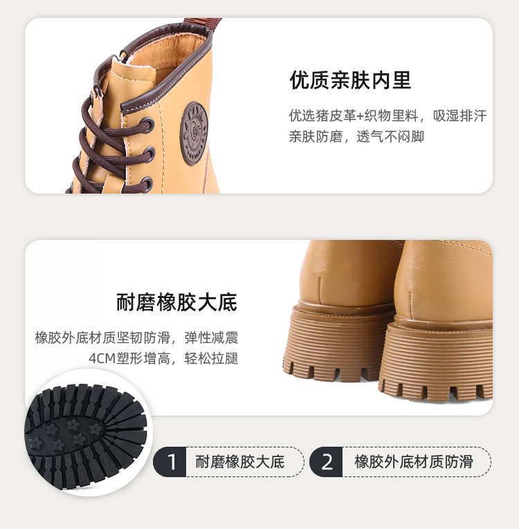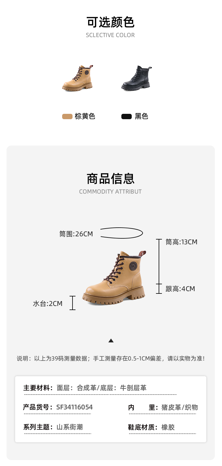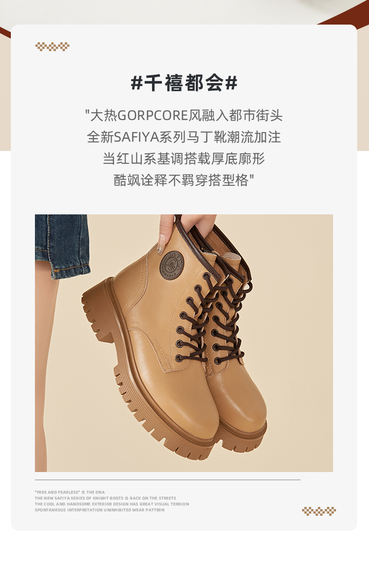 Safiya/索菲娅2023秋冬新款 踢不烂粗跟复古英伦厚底工装靴 SF34116054