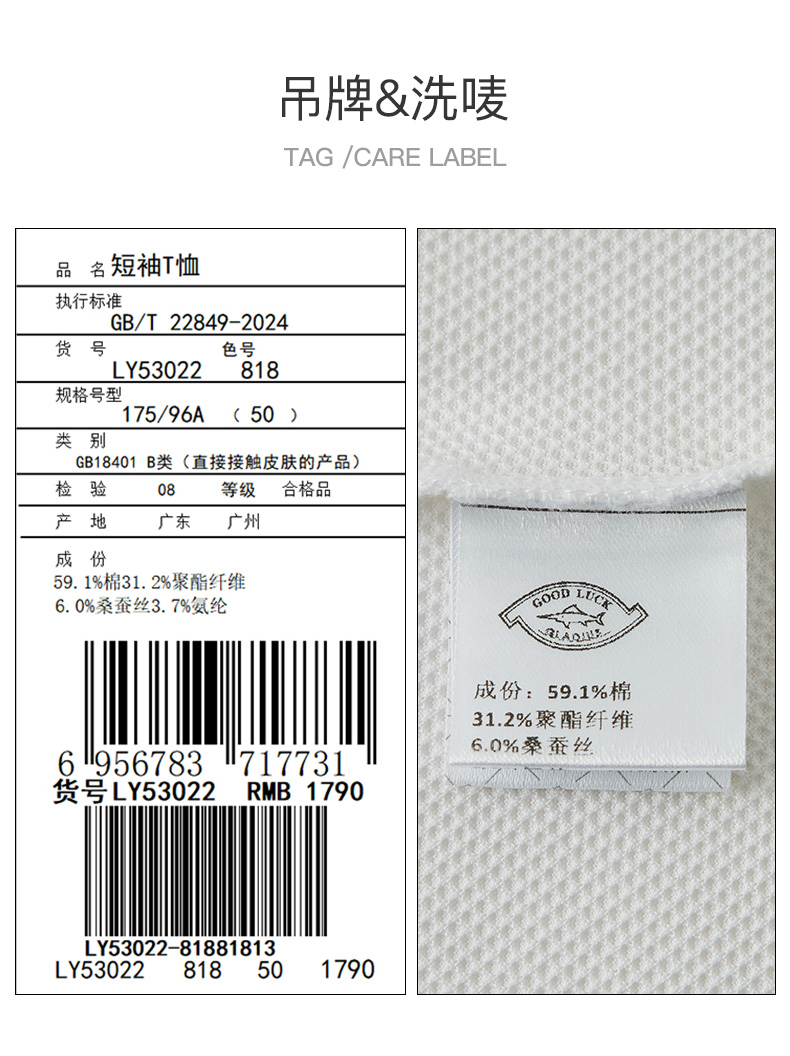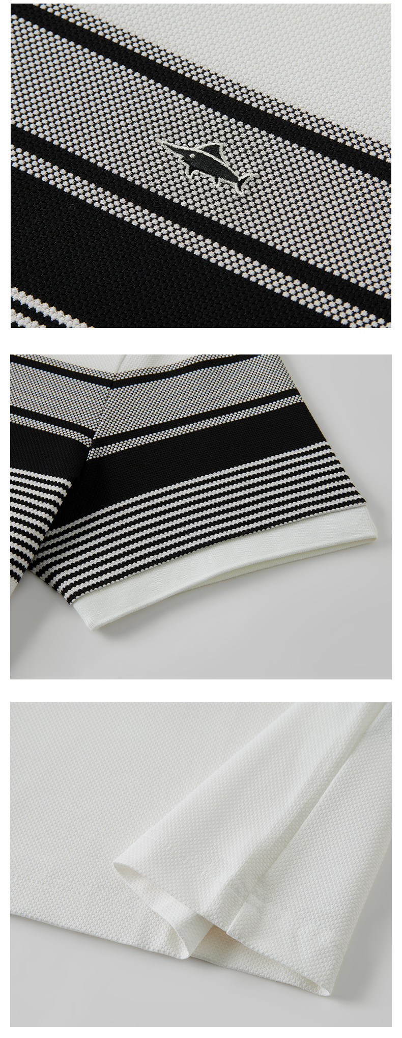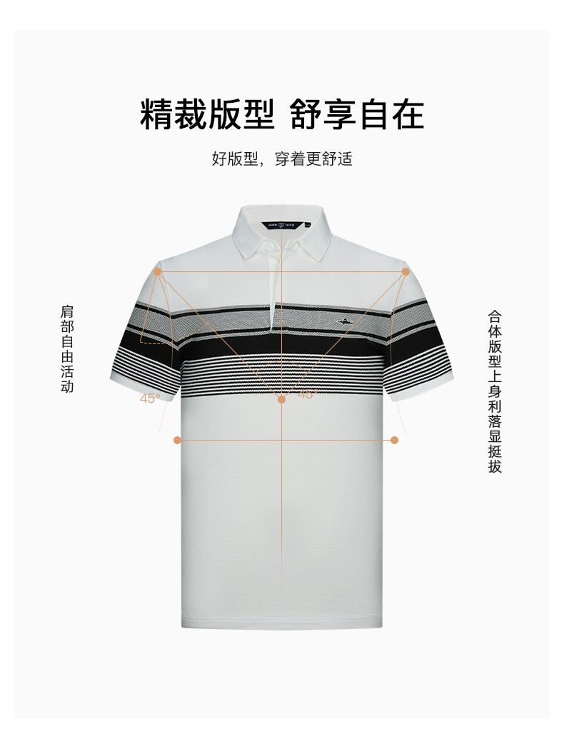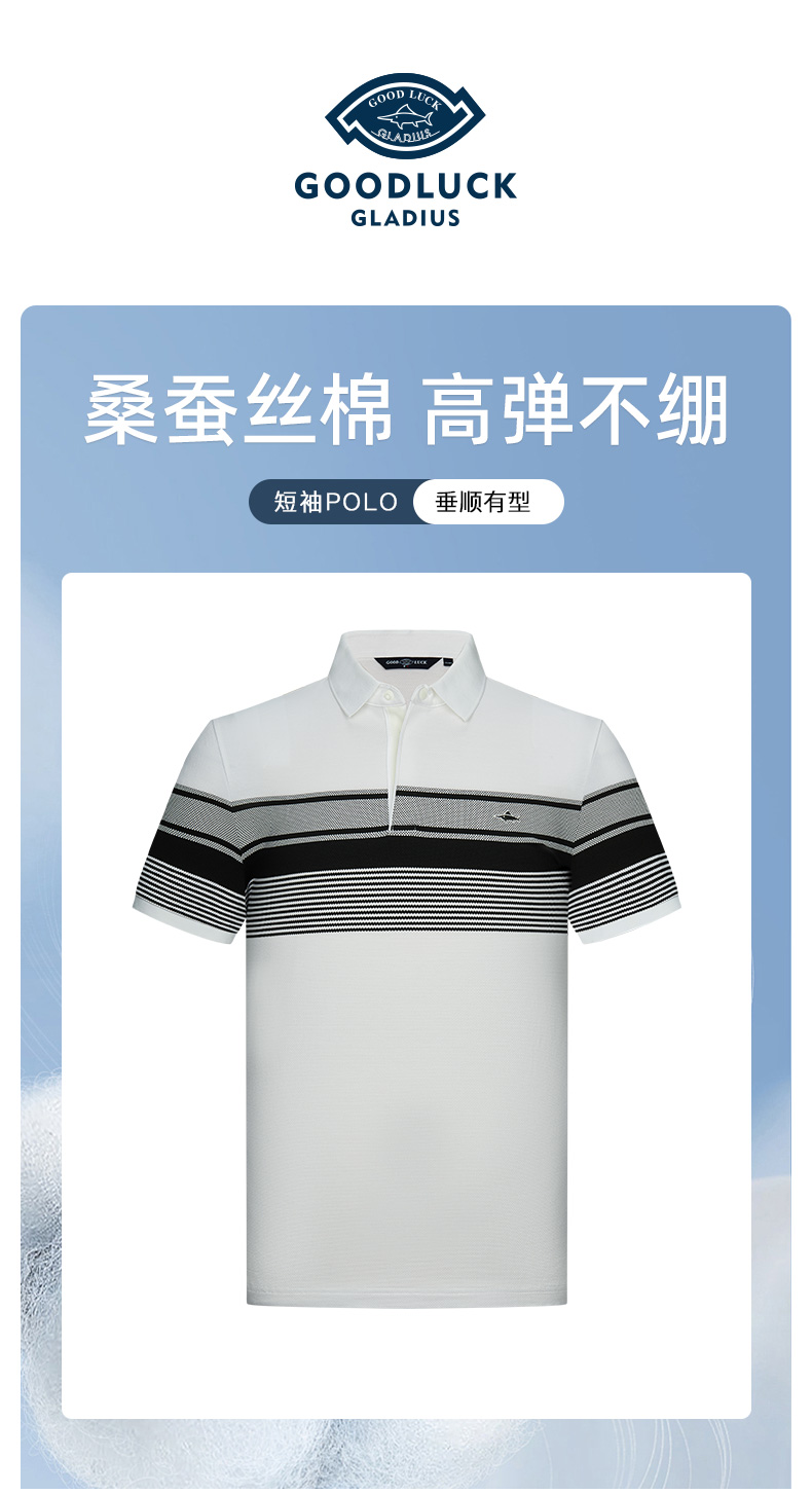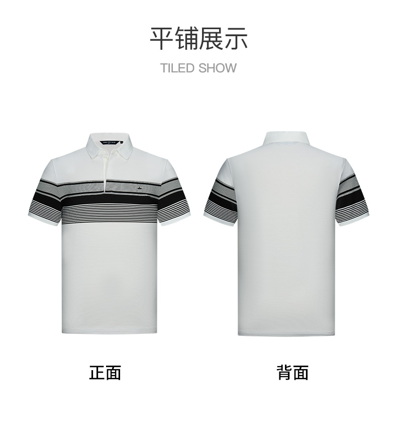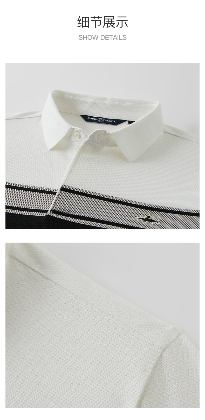 【桑蚕丝】德鲨白色短袖翻领T恤男2026夏新款弹力上衣条纹POLO衫