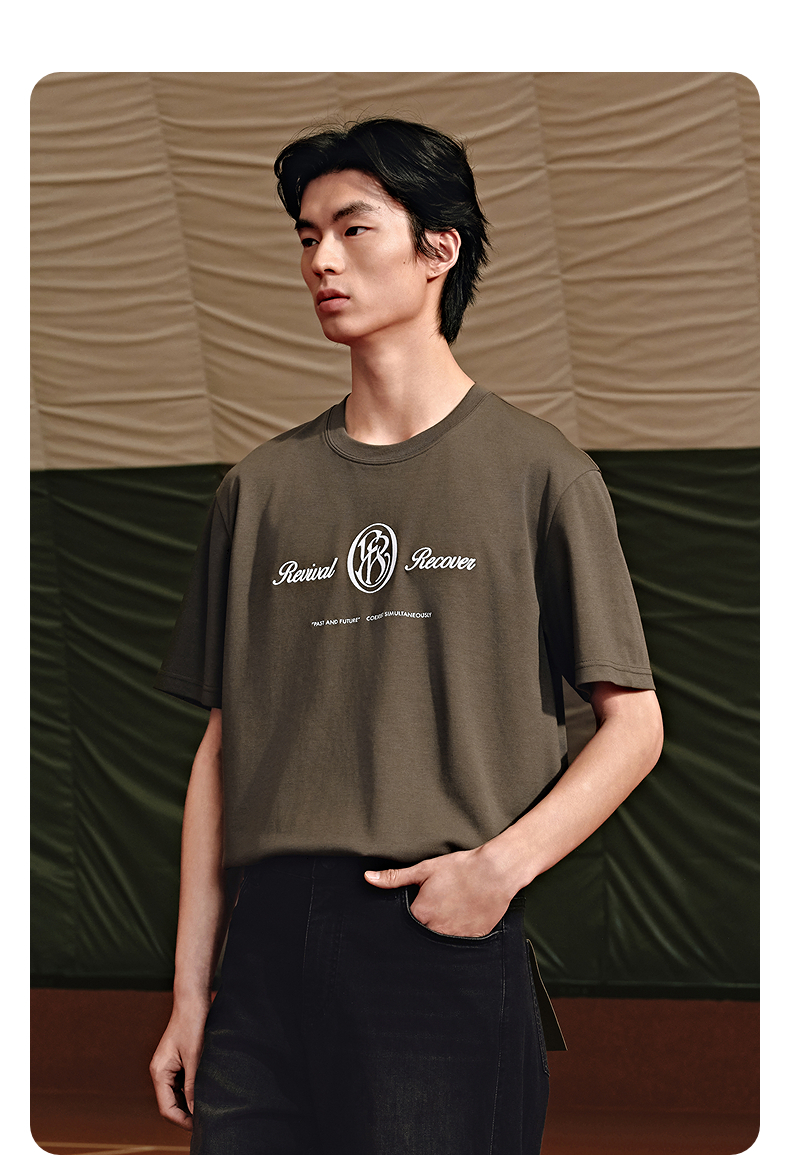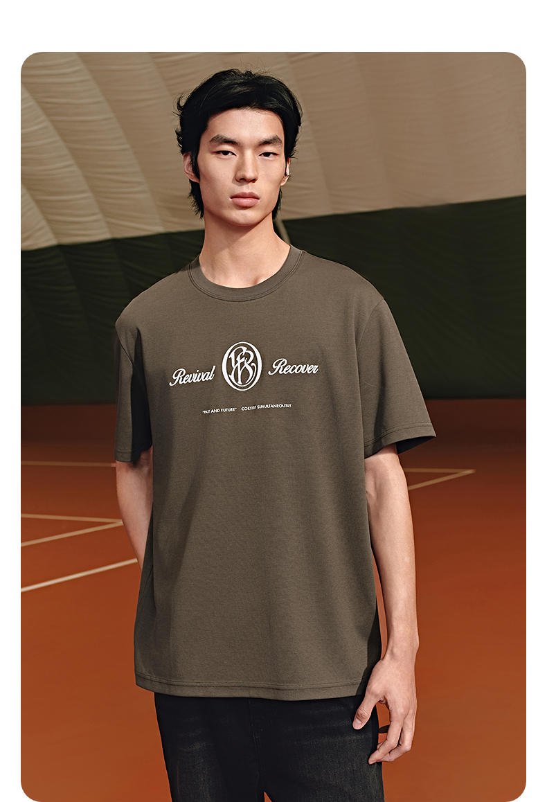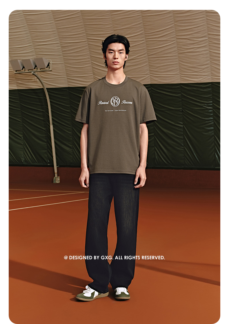 GXG男装 圆领T恤字母印花短袖针织 2025年夏季热卖G25X442089